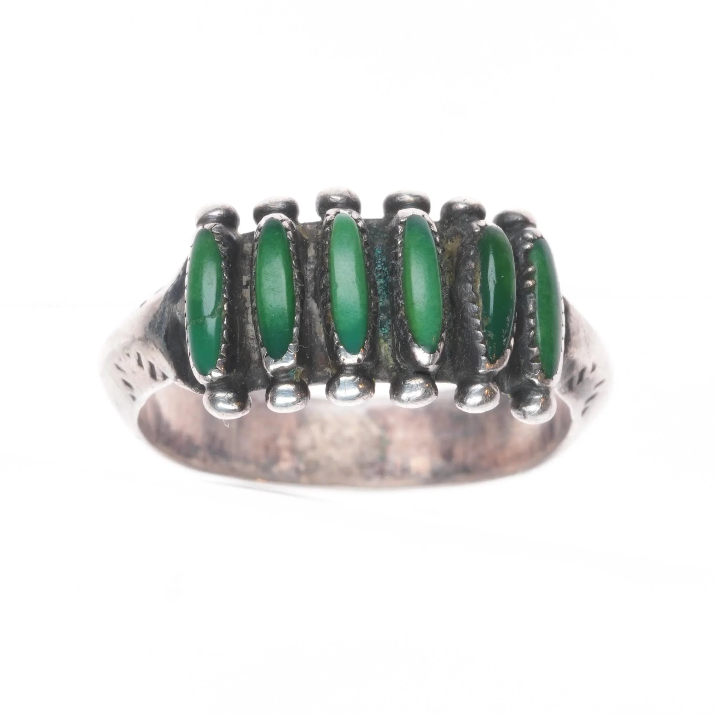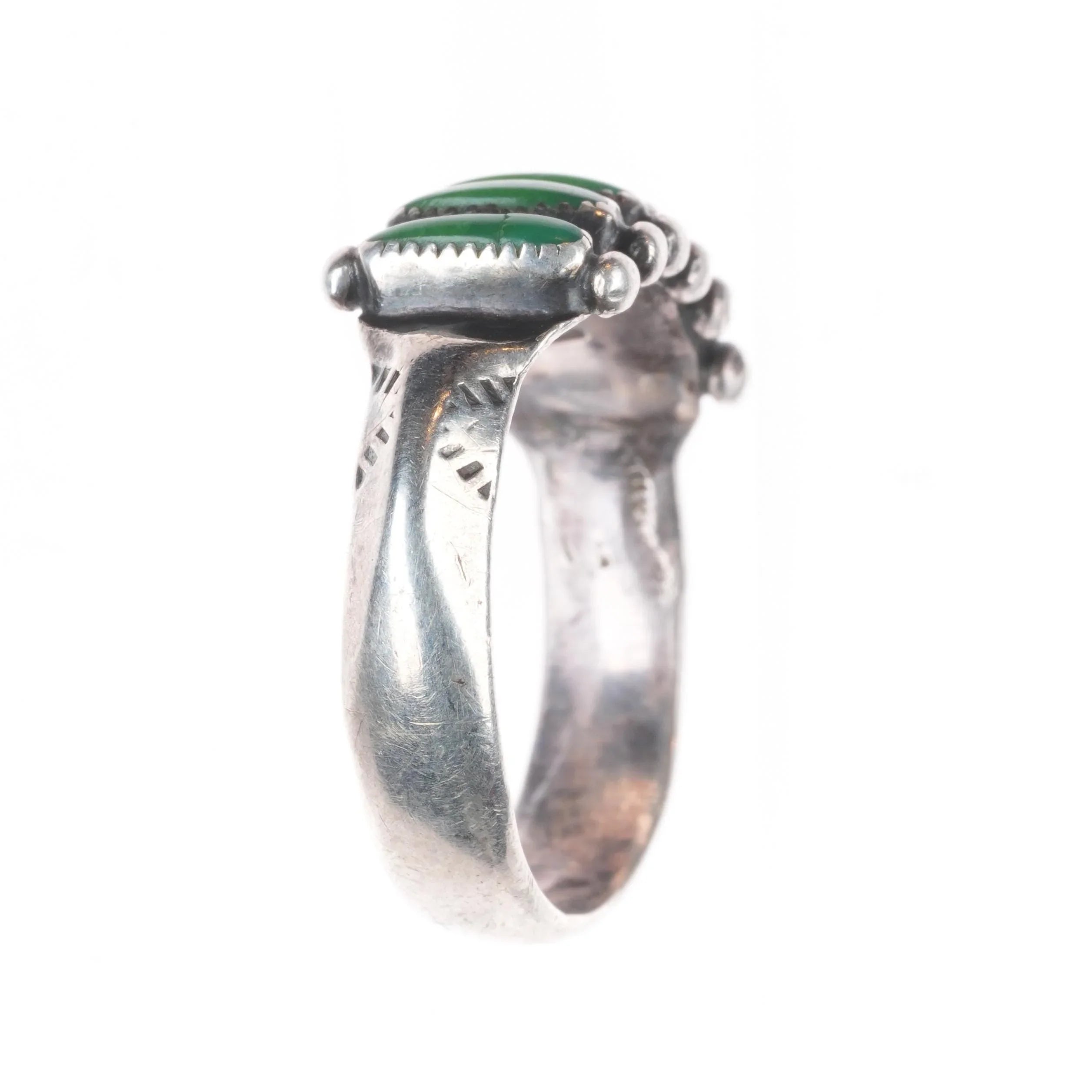 sz8.5 Janice Paloma Zuni Vintage sterling silver green turquoise row ring