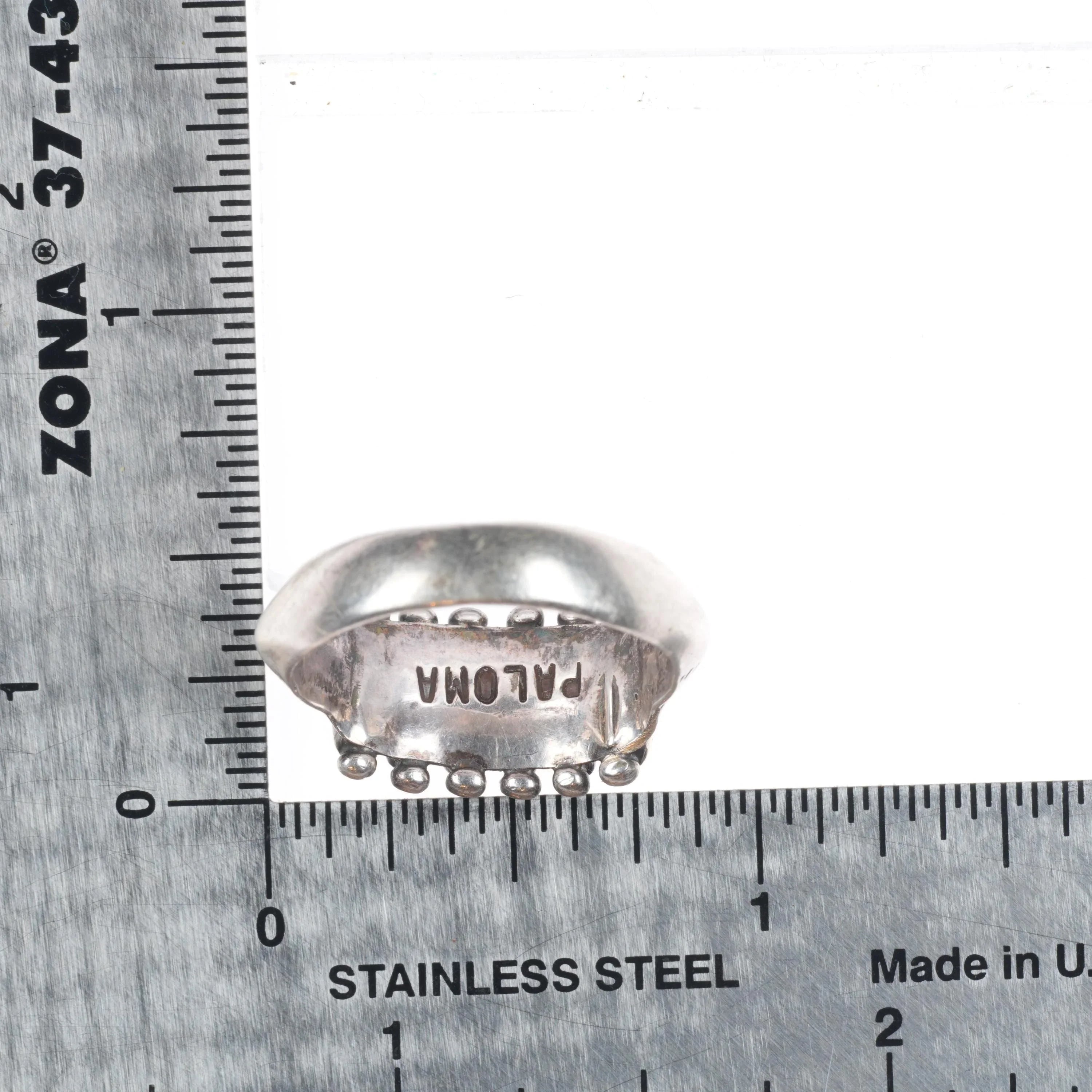 sz8.5 Janice Paloma Zuni Vintage sterling silver green turquoise row ring. Tested and guaranteed solid sterling silver. Nice ring from the third quarter of the 20th century.