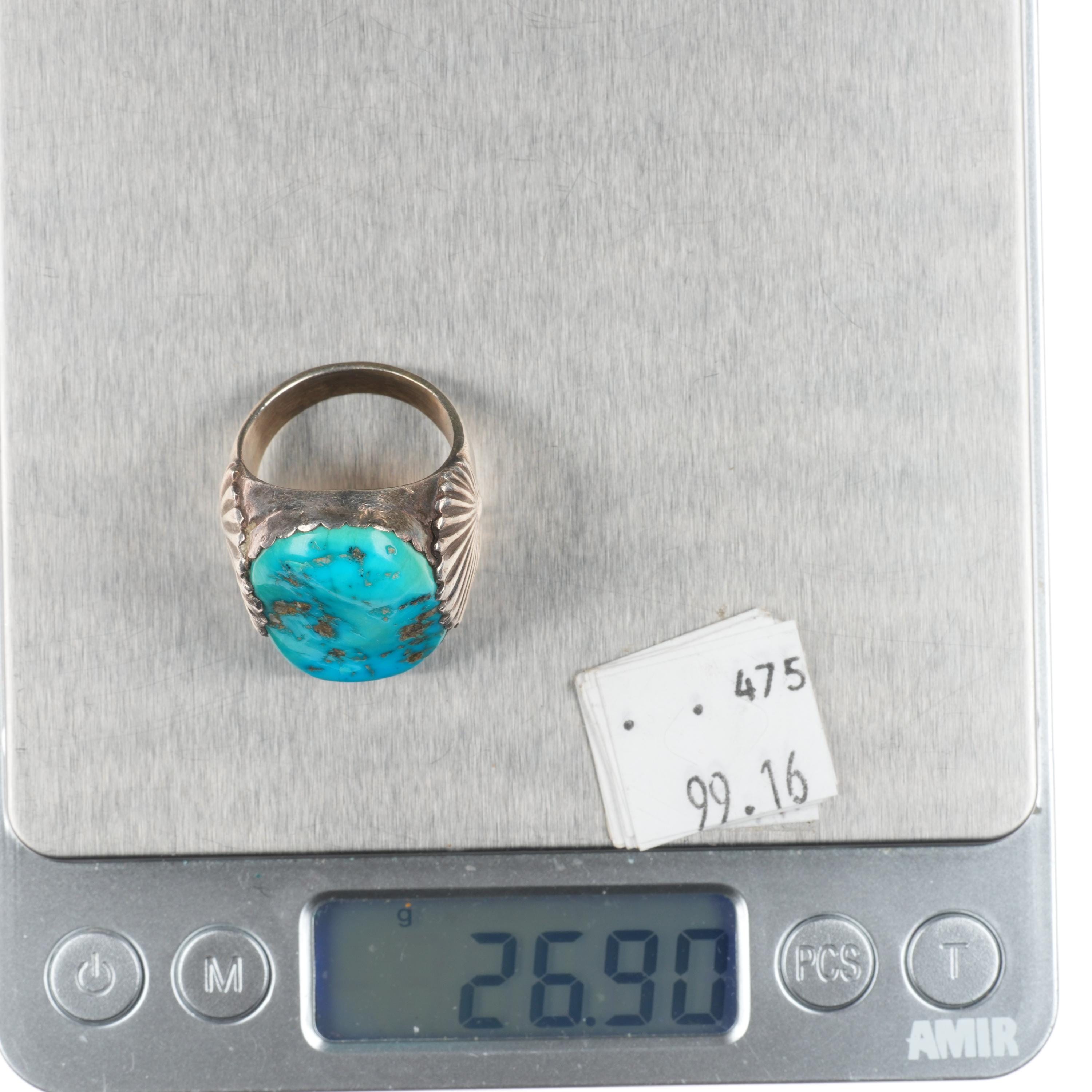 sz9.5 Big Vintage Simplicio Zuni sterling silver Big stone turquoise ring. Tested and guaranteed solid sterling silver. Selling the ring shown with age appropriate wear.