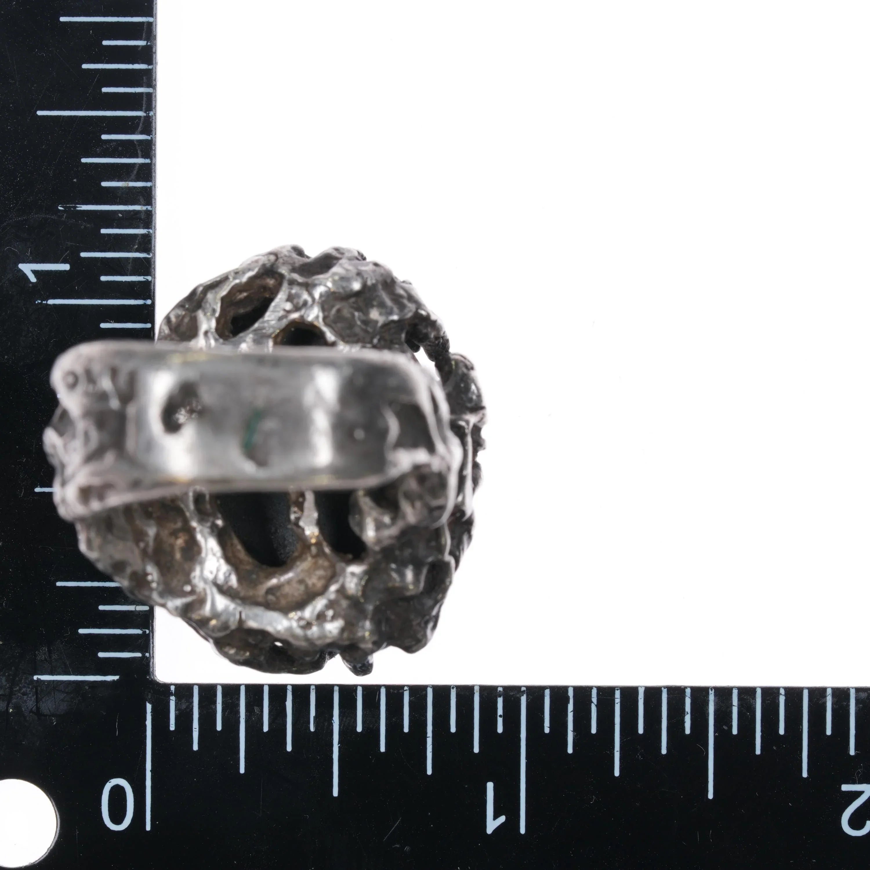 sz9.75 c1970's Huge Black Web Kingman turquoise brutalist sterling silver ring