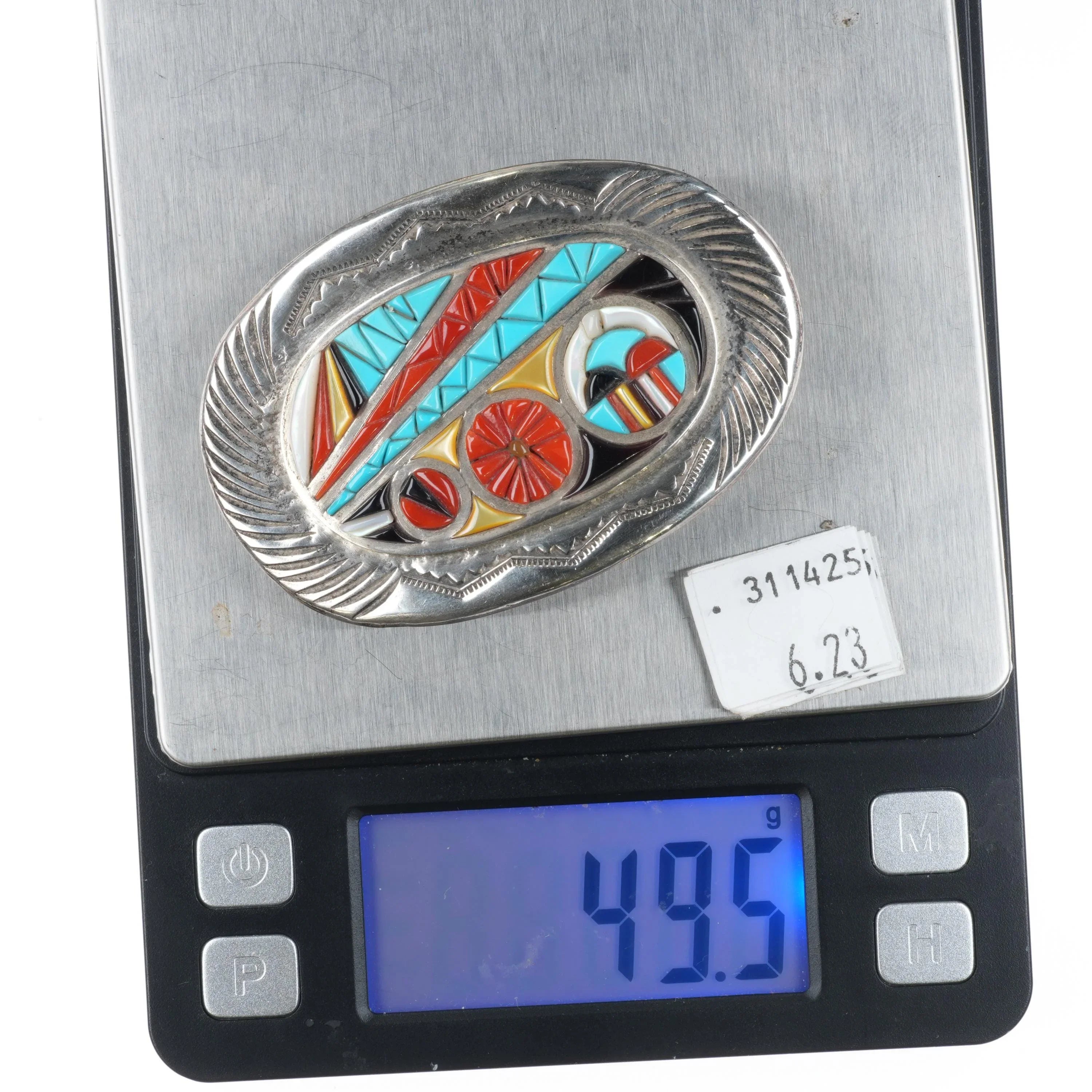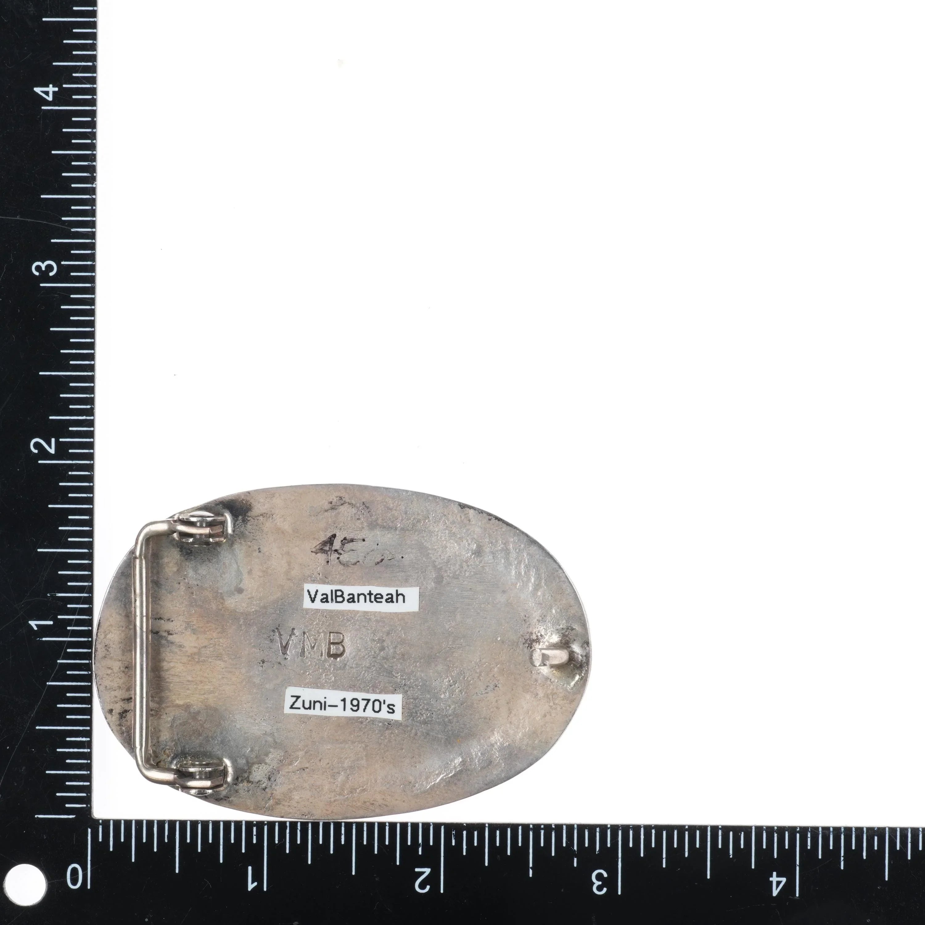 Valentino & Matilda Banteah Zuni sterling silver cobblestone inlay belt buckle. Tested and guaranteed solid sterling silver, fits a 1.5" wide belt. No issues, some expected wear. Circa 1970‘s. Weight and measurements in pictures.
