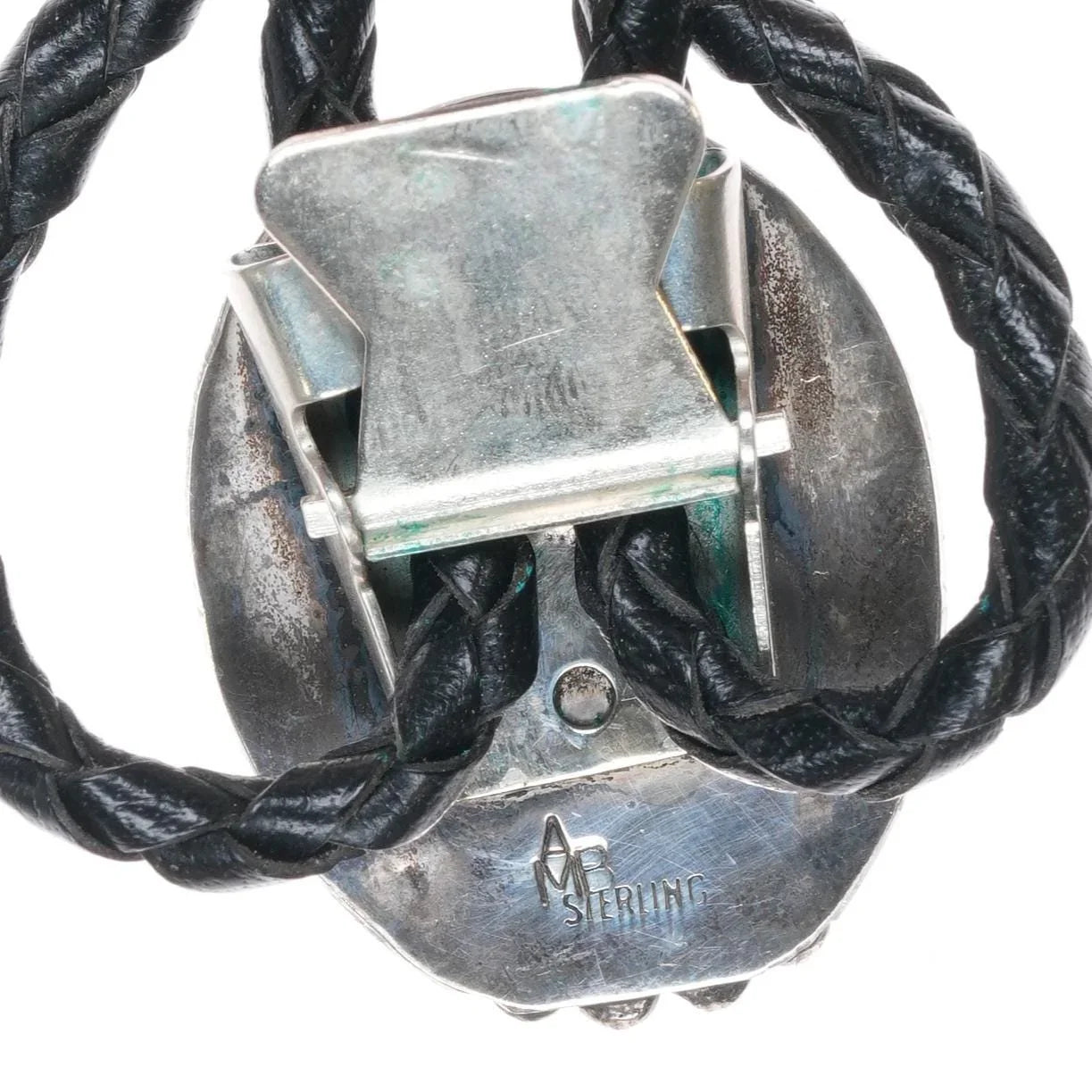 Vintage Azurite Malachite AMB Navajo sterling silver bolo tie
