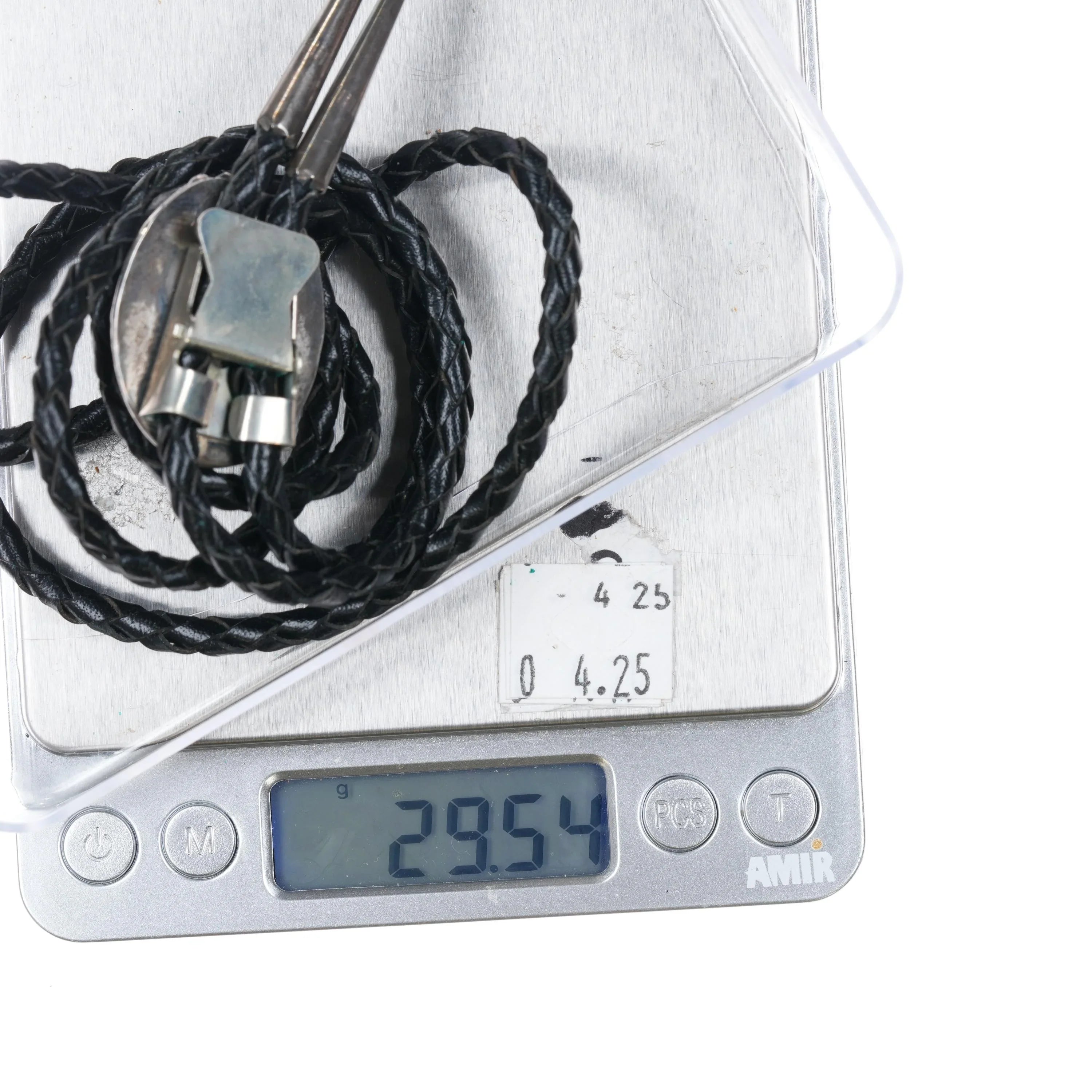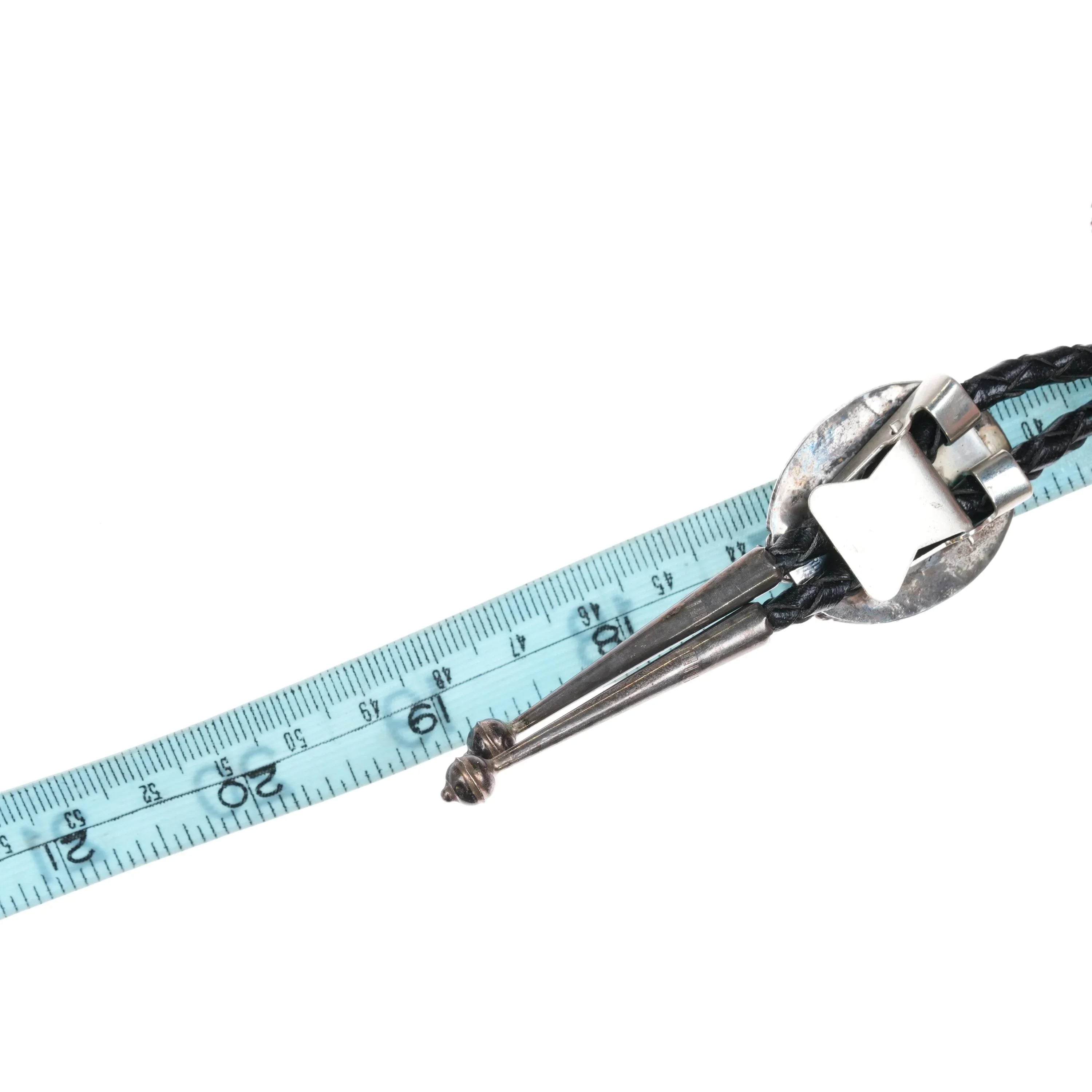 Vintage Azurite Malachite AMB Navajo sterling silver bolo tie. Solid sterling silver slide and tips. Weight and measurements in pics. 38" long. Expected wear with no apparent damage. Weight shown is just the entire bolo, if there is a tray pictured it will be tared out of course.