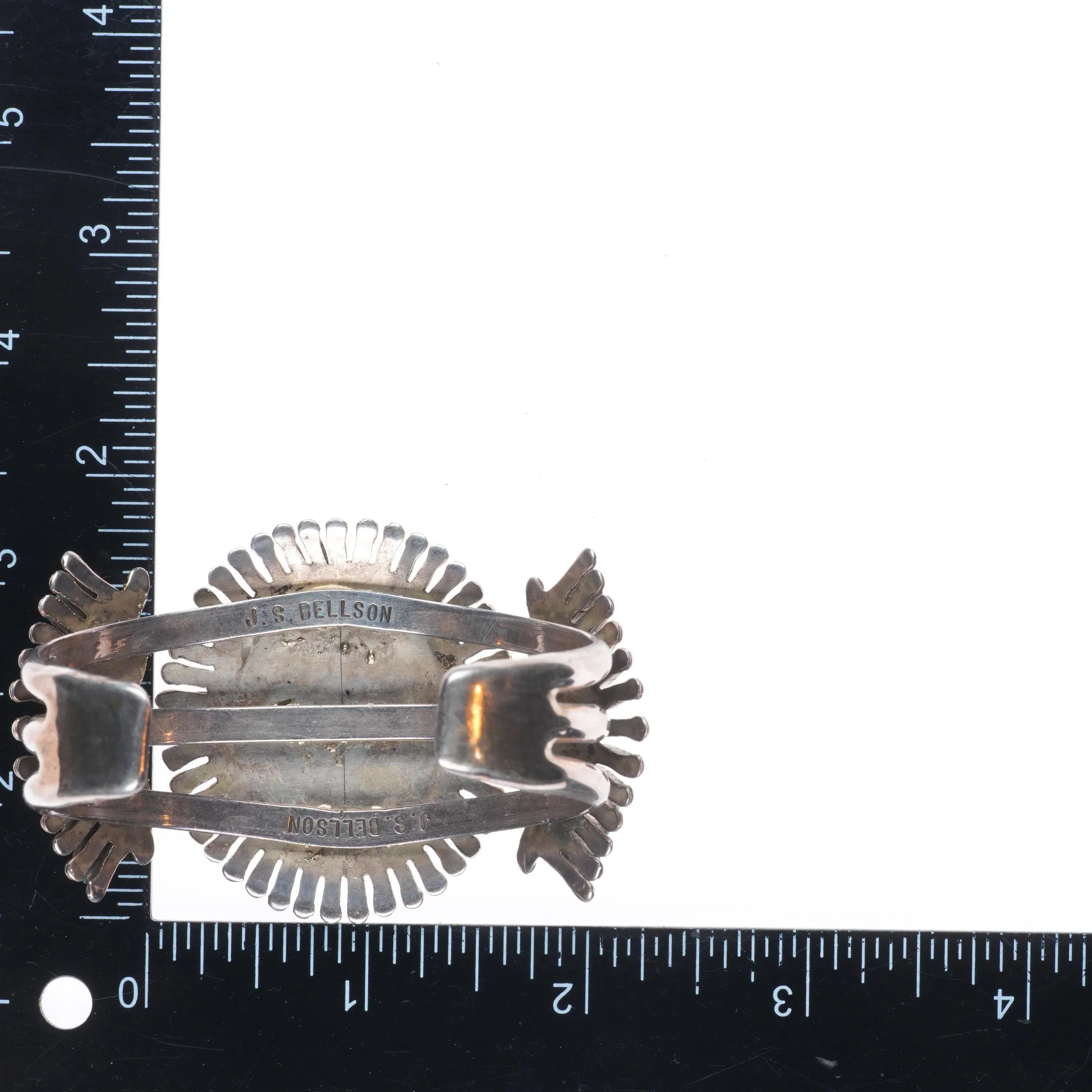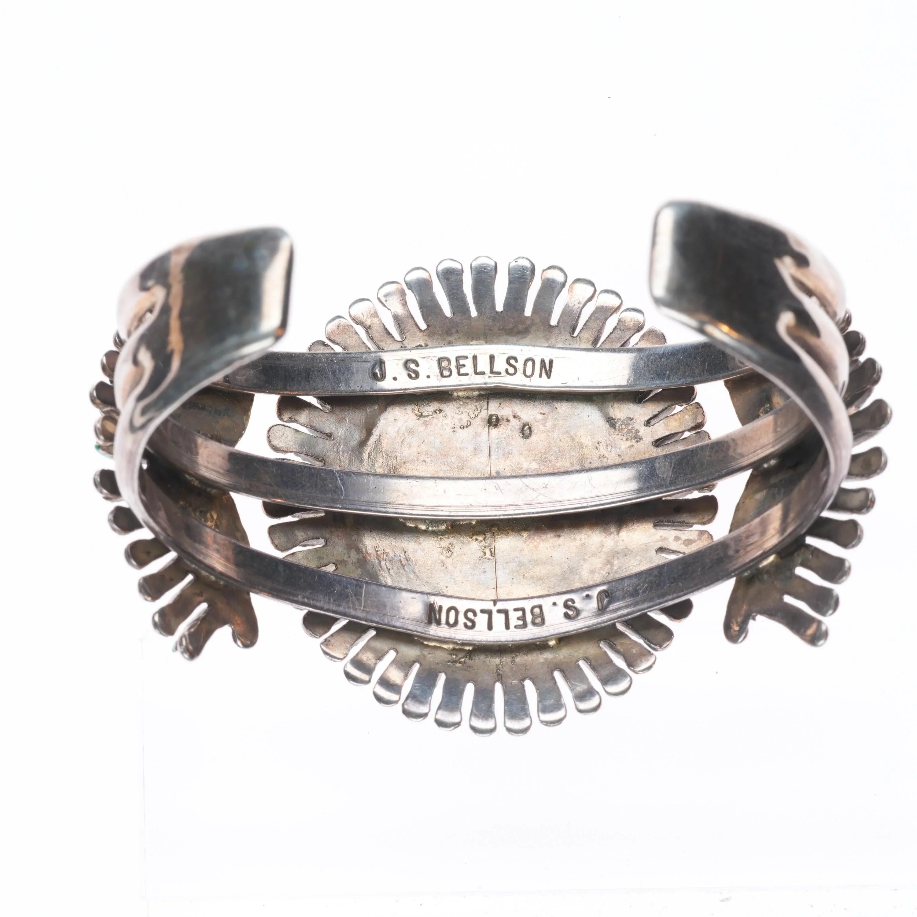 6.5" Vintage Bellson Zuni sterling silver needlepoint turquoise cuff bracelet Tested and guaranteed solid sterling silver with weight and measurements in pictures. No damage or significant wear, circa third quarter of the 20th century.