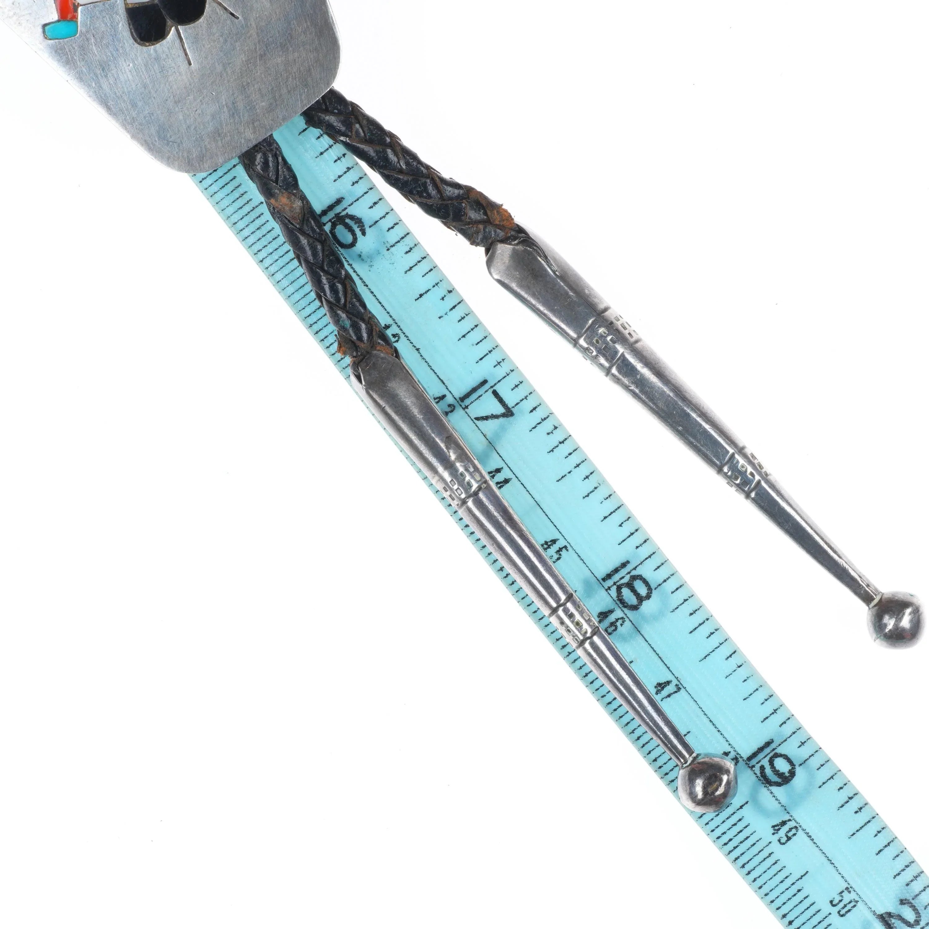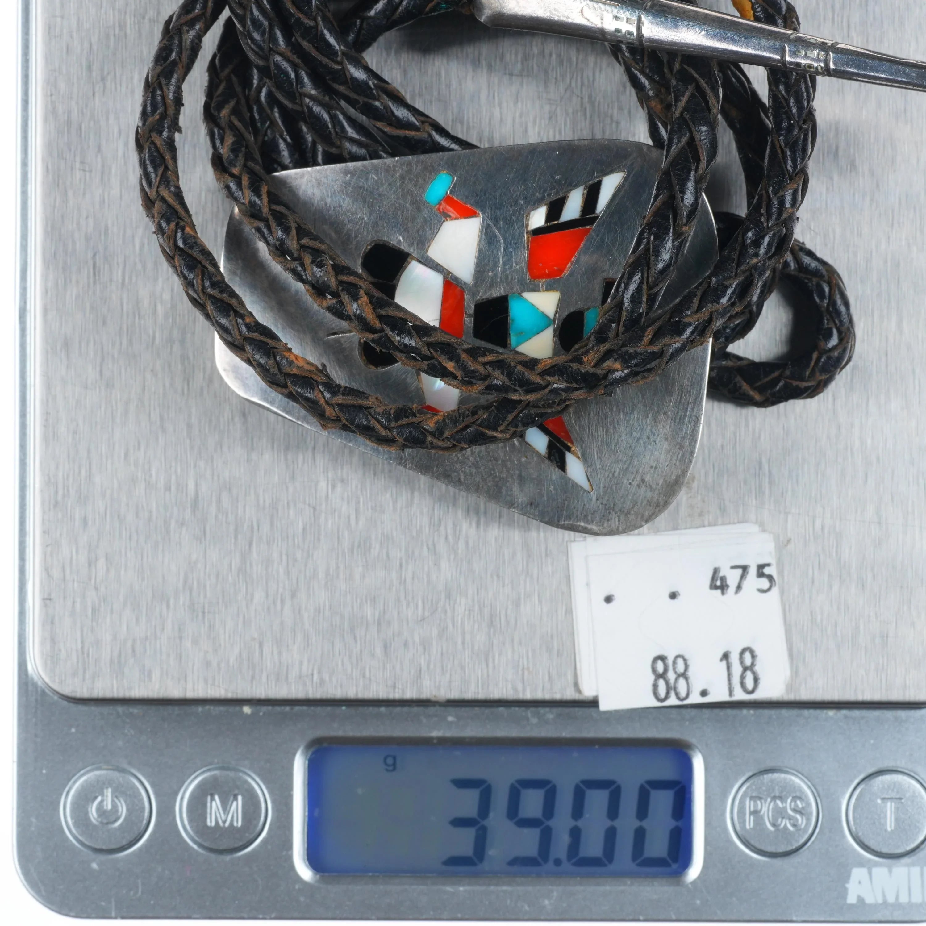 Vintage c1960 c-31 JWB Zuni intarsia inlay knifewing bolo tie sterling silver