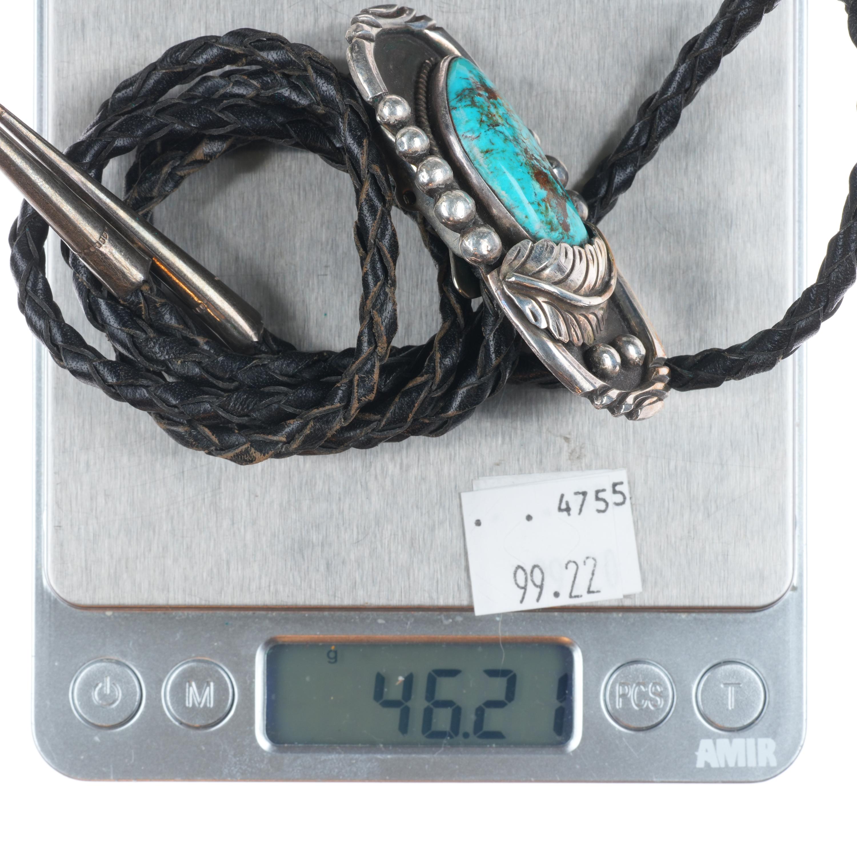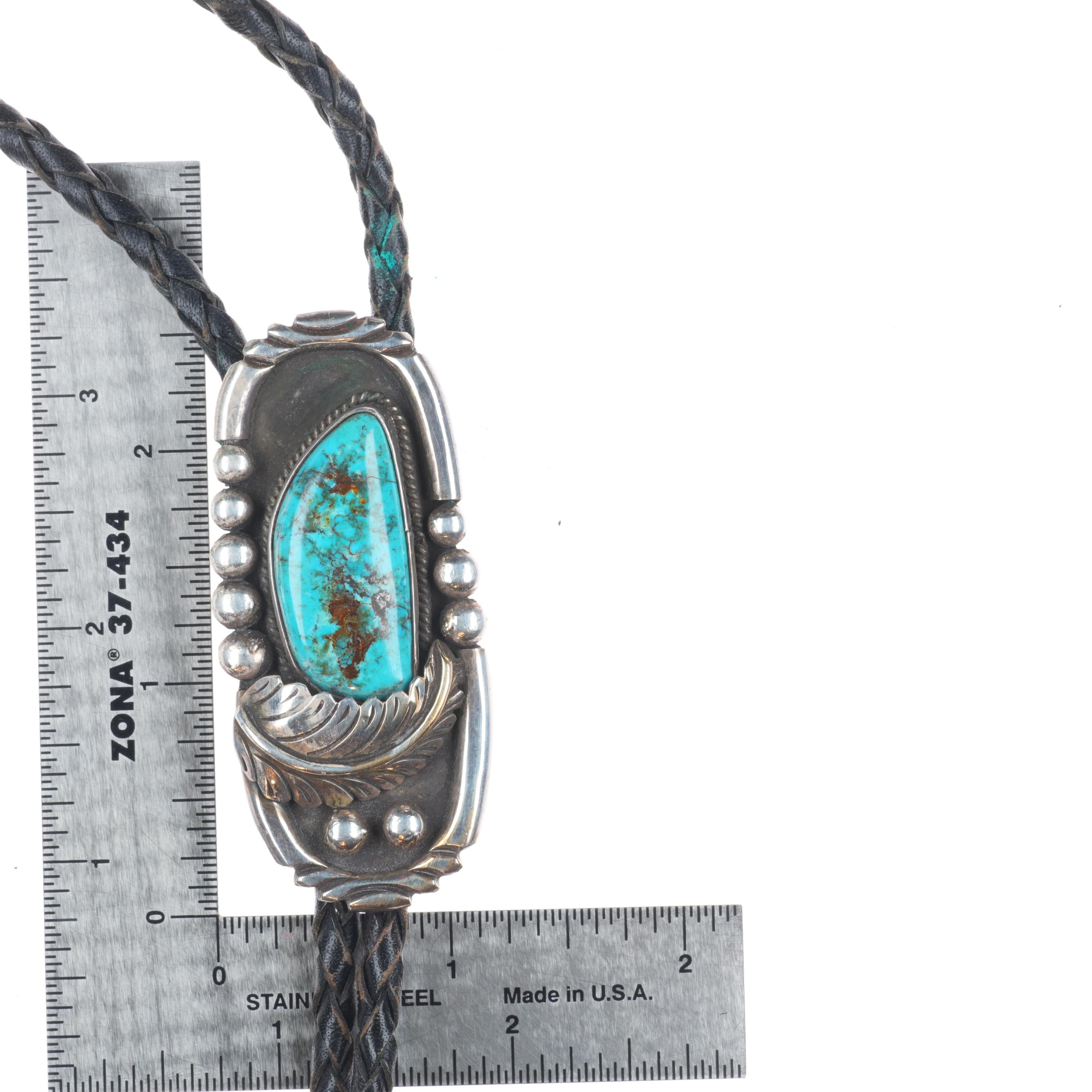Vintage c1970 Ivan V Navajo sterling silver high grade turquoise bolo tie