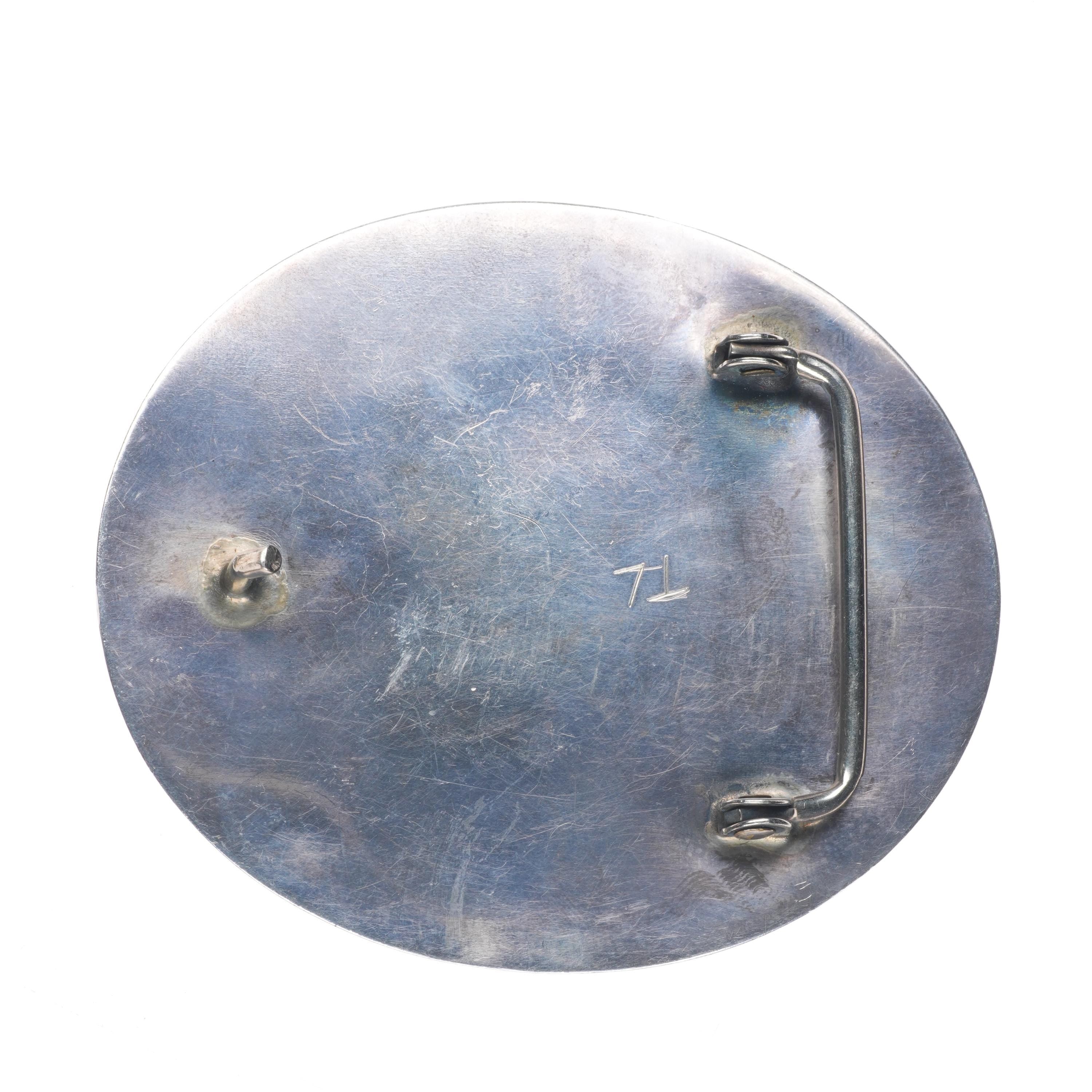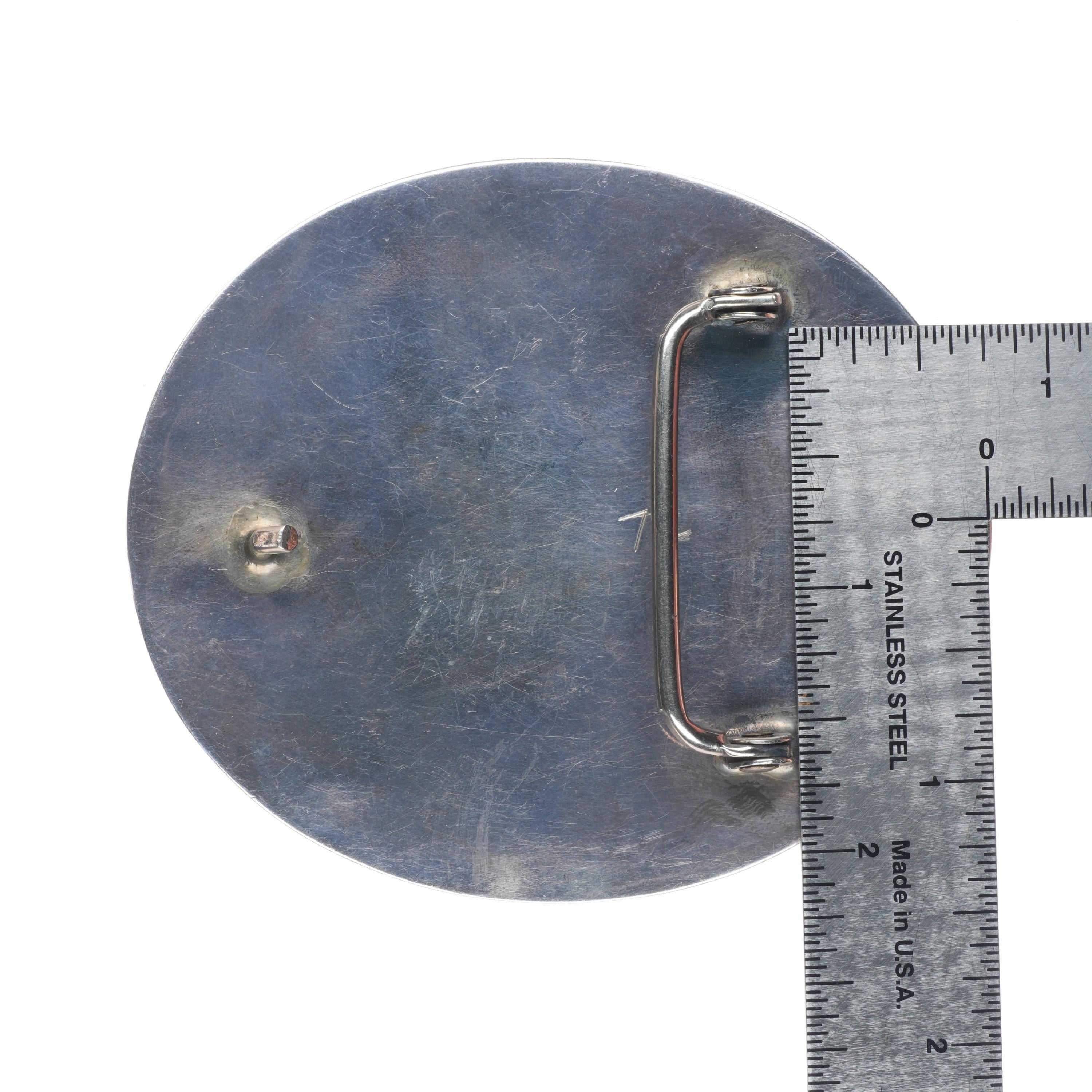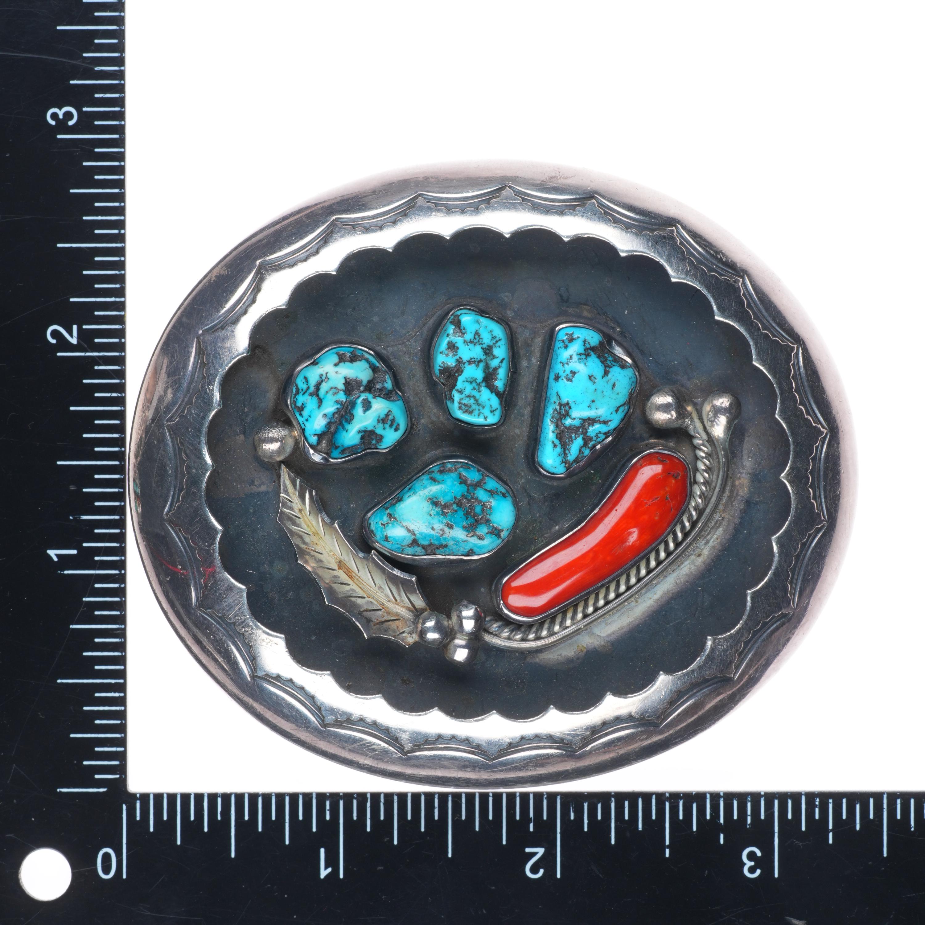 Vintage Navajo sterling cast silver belt buckle stamped center with turquoise