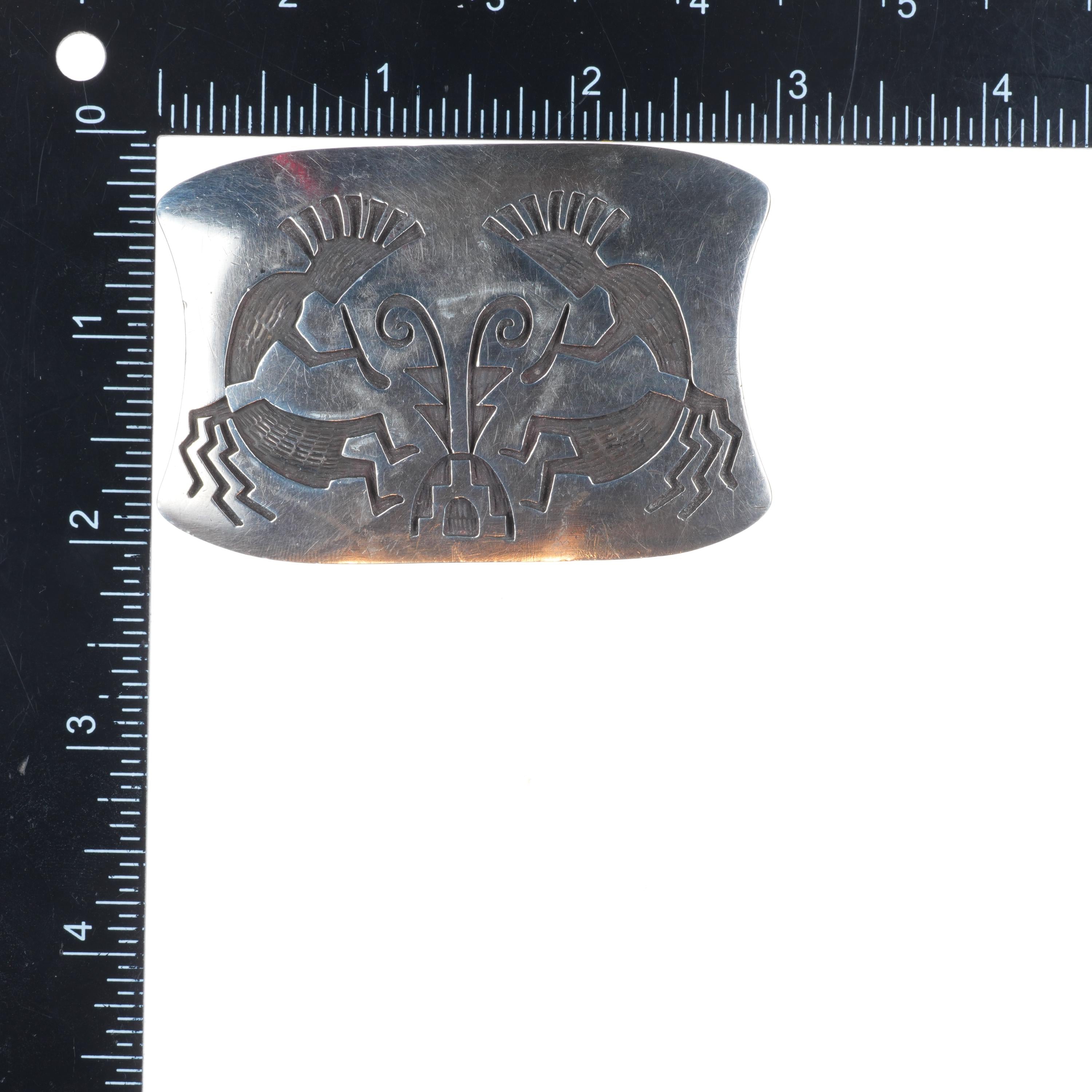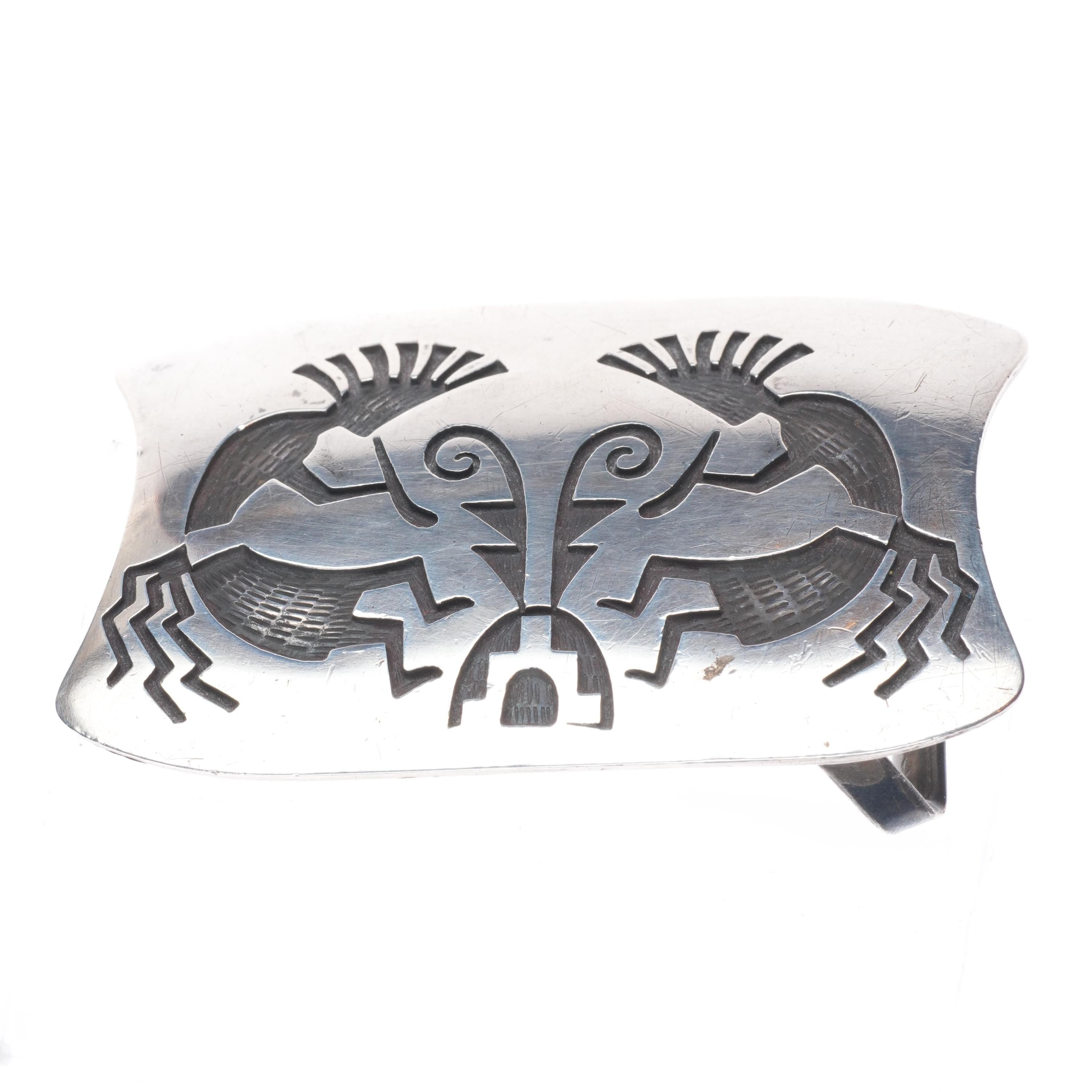 Vintage Phillip Honanie Hopi overlay kokopelli belt buckle sterling silver. Tested and guaranteed solid sterling silver. Weight and measurements in pictures, circa last quarter of the 20th century. Fits a 1.5" belt.