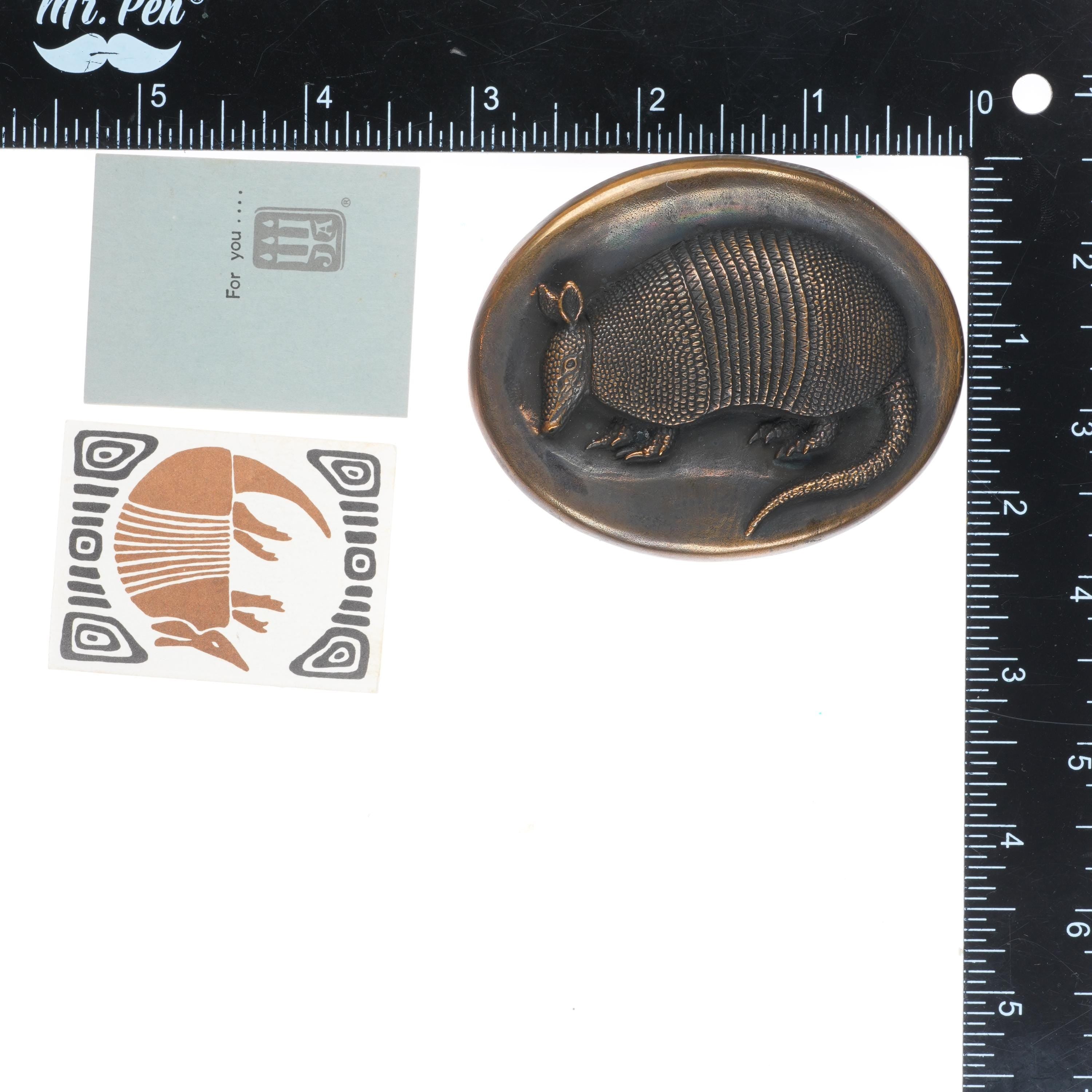 Vintage Retired James Avery Bronze Armadillo Belt buckle/box. Very clean, possibly unworn, box with soiling and wear. Fits up to a 1.5" belt, other measurements in pictures.