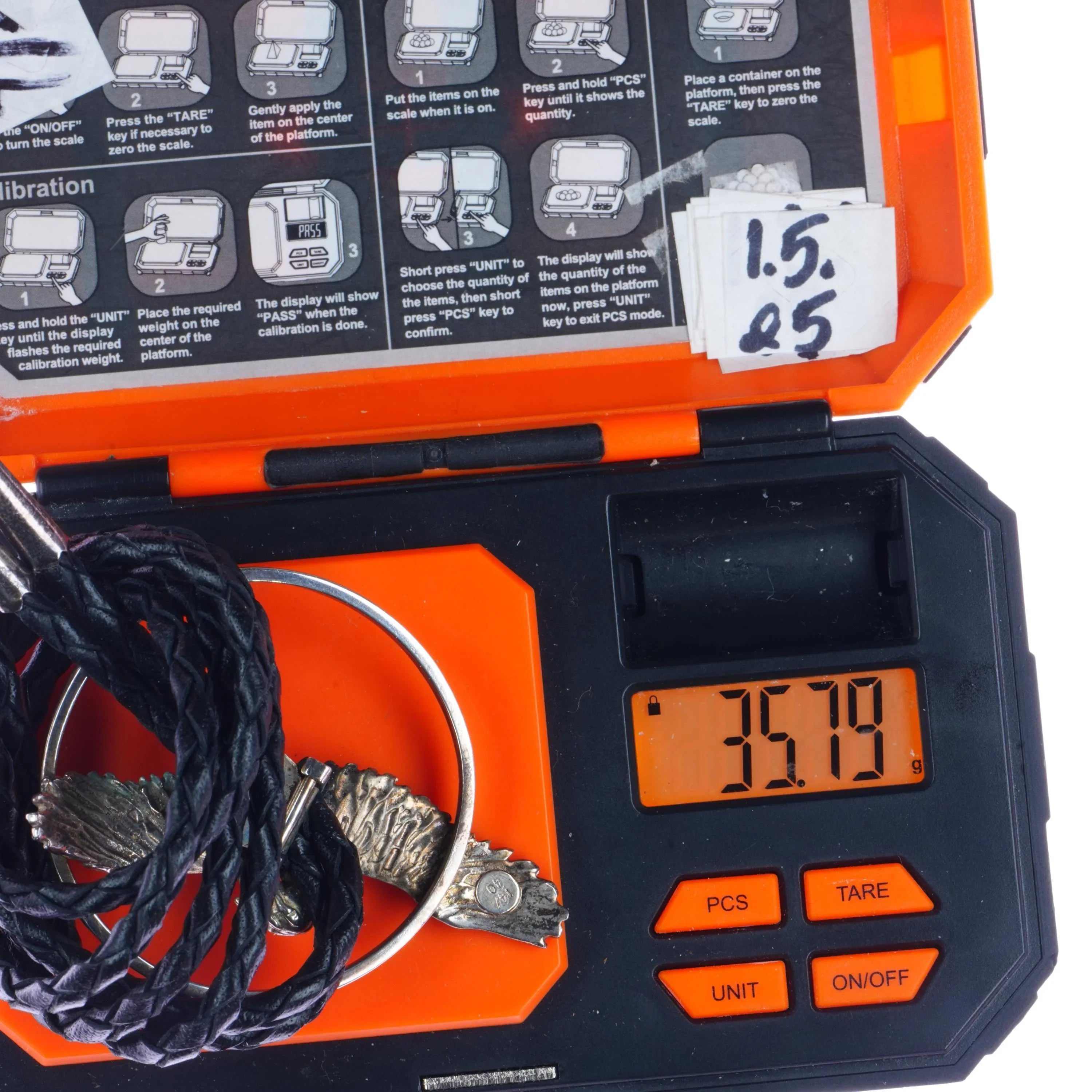 Vintage Sterling silver Icarus flying into the sun Greek Mythology bolo tie. Solid sterling silver, weight and measurements in pics (scale tared out with containter, weight shown is just the bolo). Fully functional with overall attractive appearance. 37" total length. Sterling slide and tips. New old stock, never worn. Only 40 of these were made, not sure what they signify, but I have a few and each has a unique number less than 40, a / , then 40. Example 12/40. Likely from the last quarter of the 20th century.