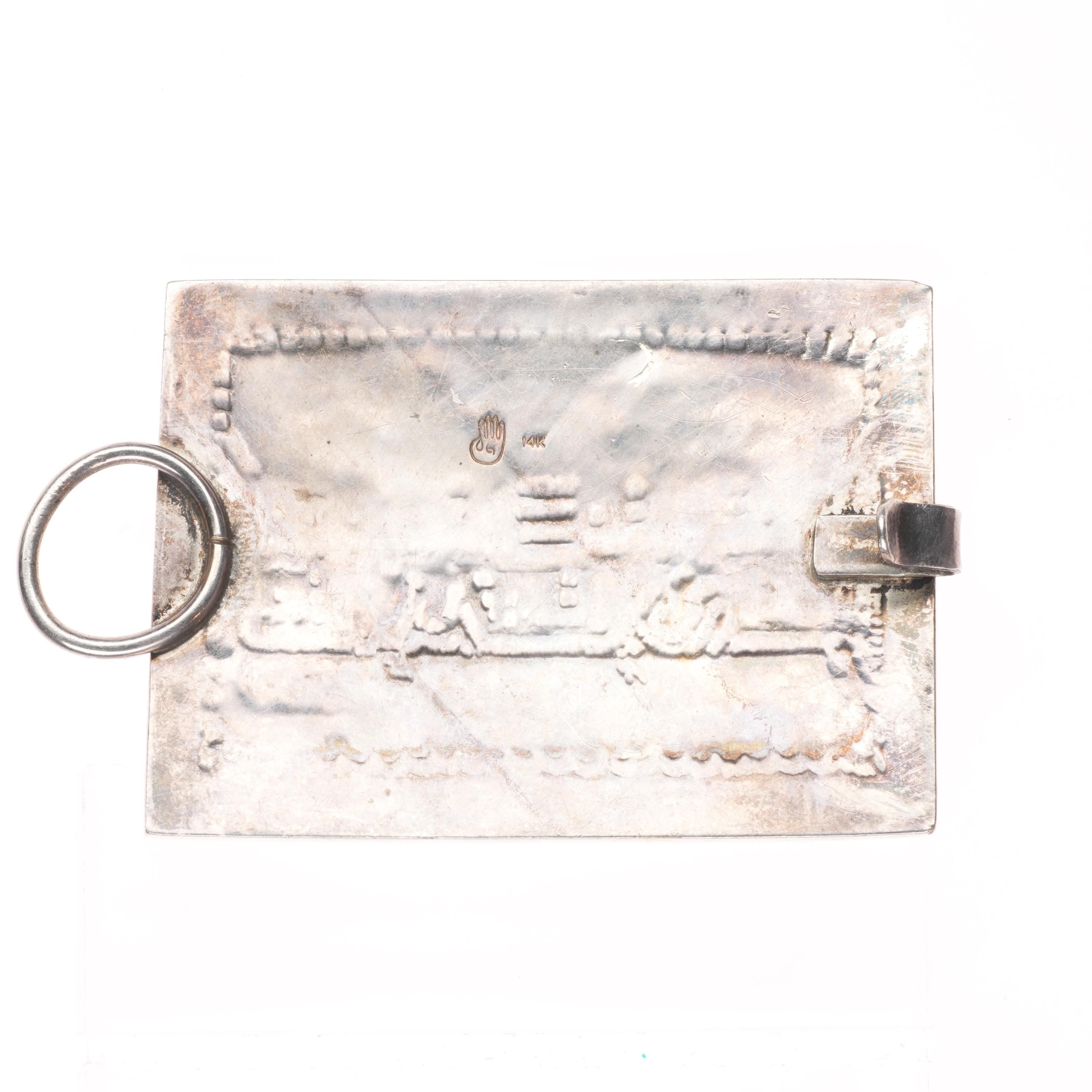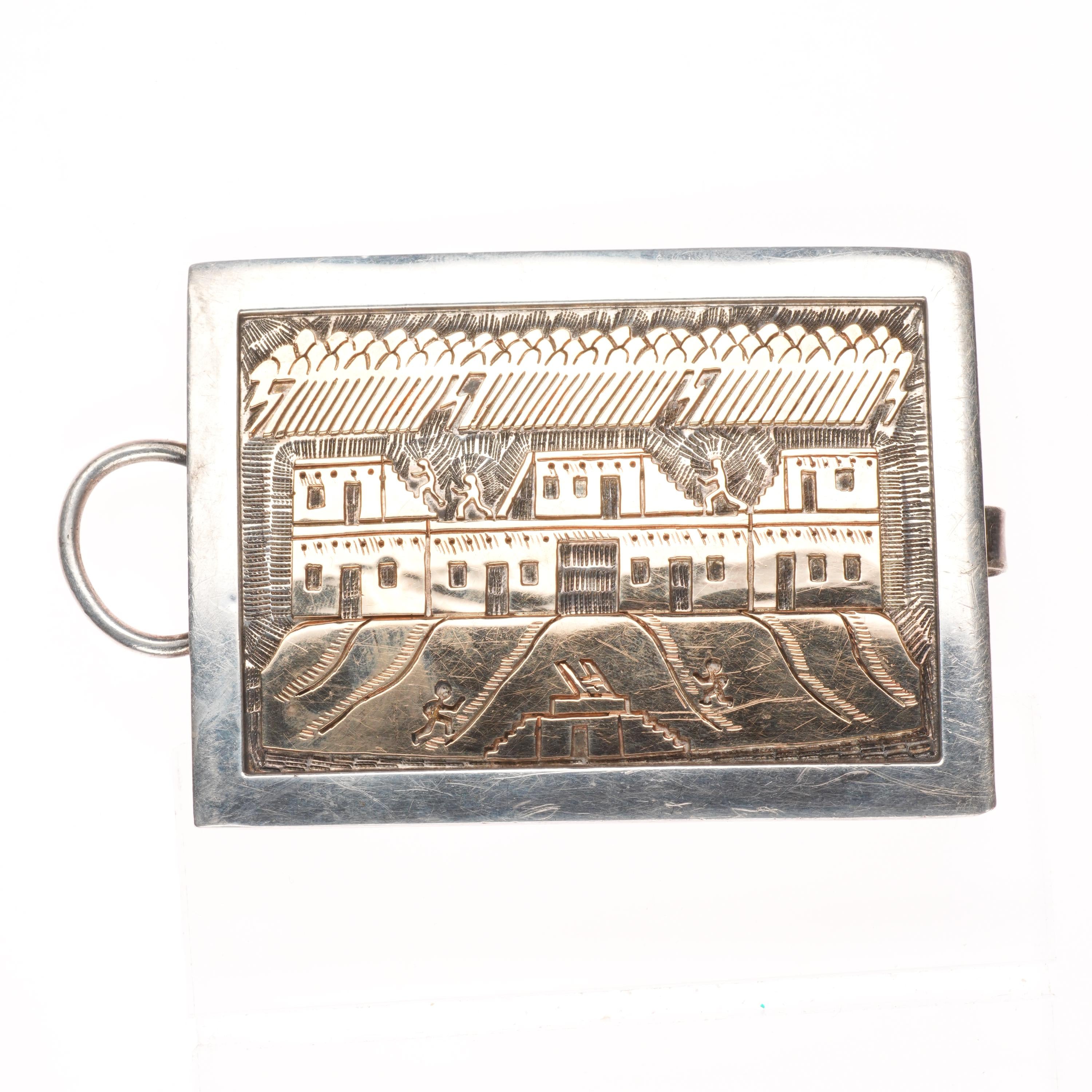Watson Honanie created jewelry of gold and silver overlay portraying Hopi culture and ceremonial life. Encouraged by two uncles, Porter Timecheand and the late Fred Kabotie, both of whom were associated with the Hopi Silvercraft Guild, he began making jewelry at an early age. "They gave me scraps of silver so I could make small pieces, mostly earrings," Honanie said. He learned the overlay technique from his brother Phillip, and worked at the Silvercraft Guild for about two years before venturing out on his own.