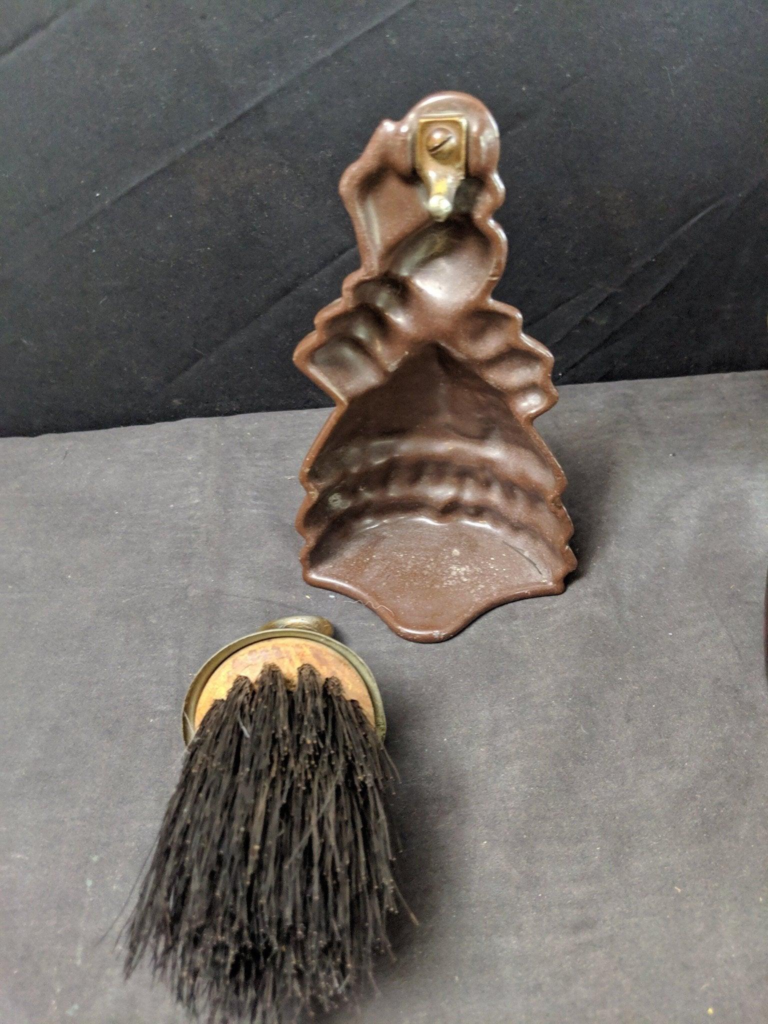 1930's Art Deco Lustre Enamel Finish Cast Iron Woman Fireplace Brush Holder