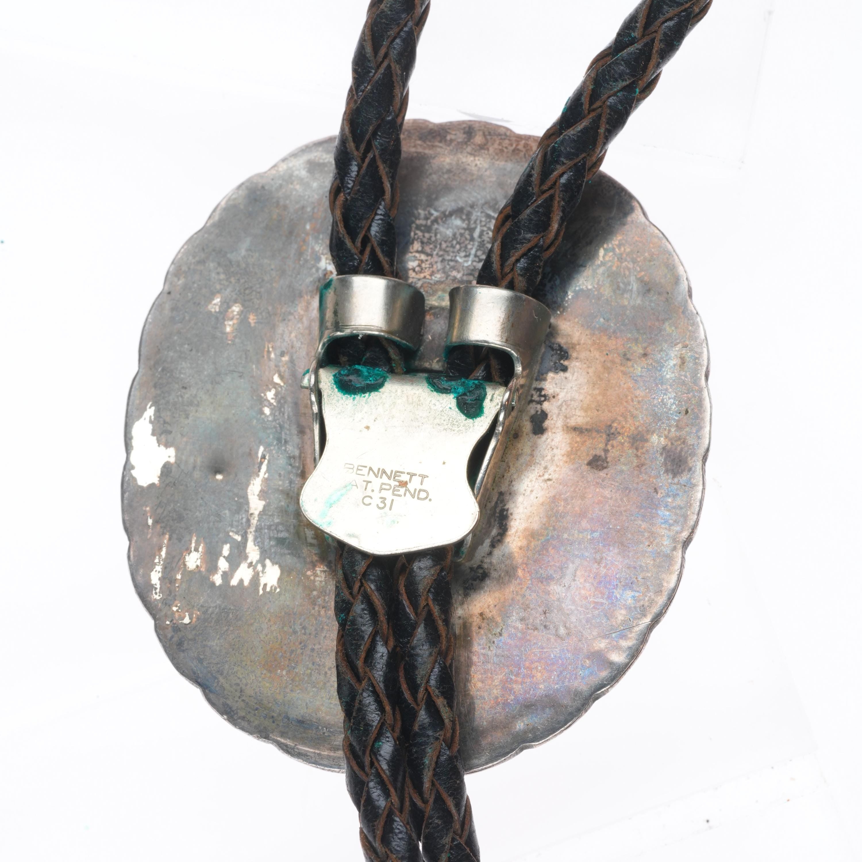 1960 c-31 Elliott Qualo Zuni sterling silver intarsia inlay Ghan dancer bolo tie