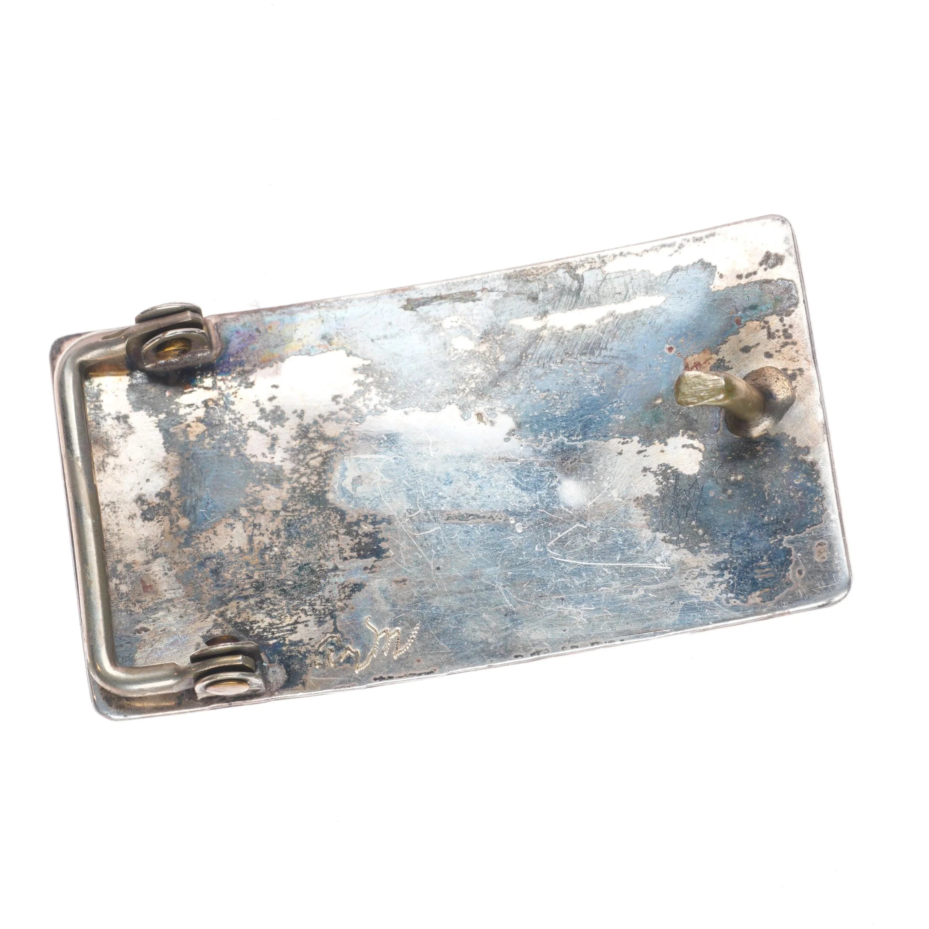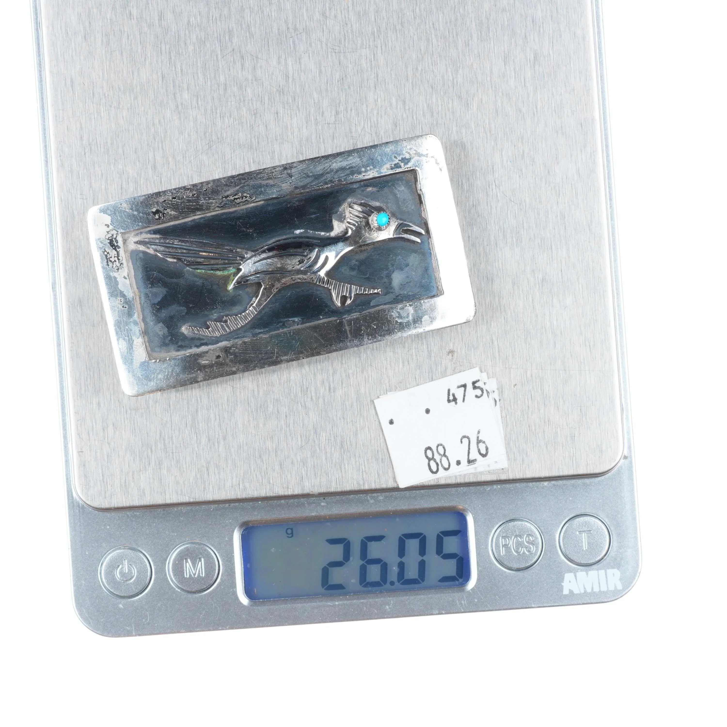 1960's Vintage Sterling silver Navajo roadrunner belt buckle w/turquoise eye