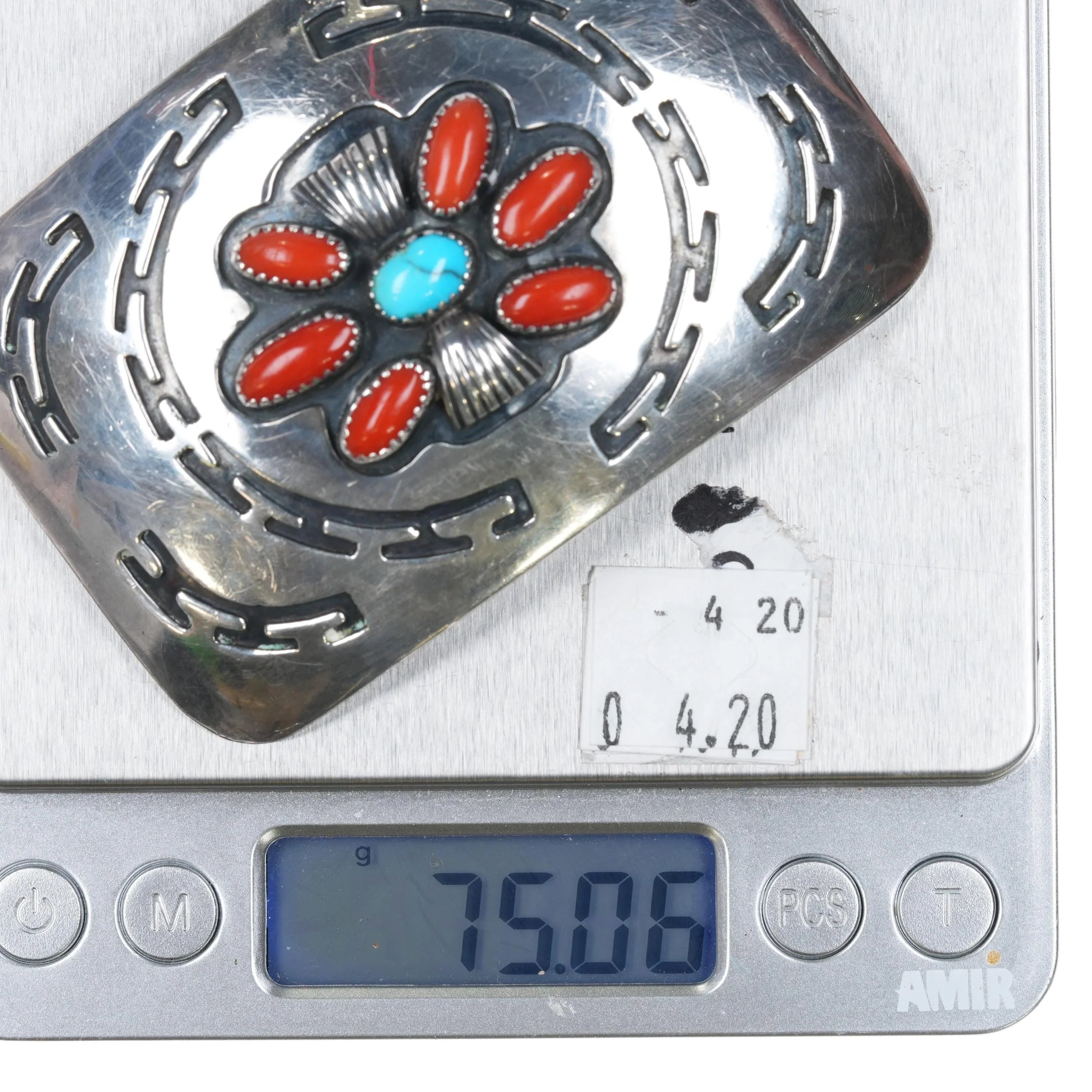 1970's Mary Smith Navajo Atkinson Trading sterling silver turquoise belt buckle