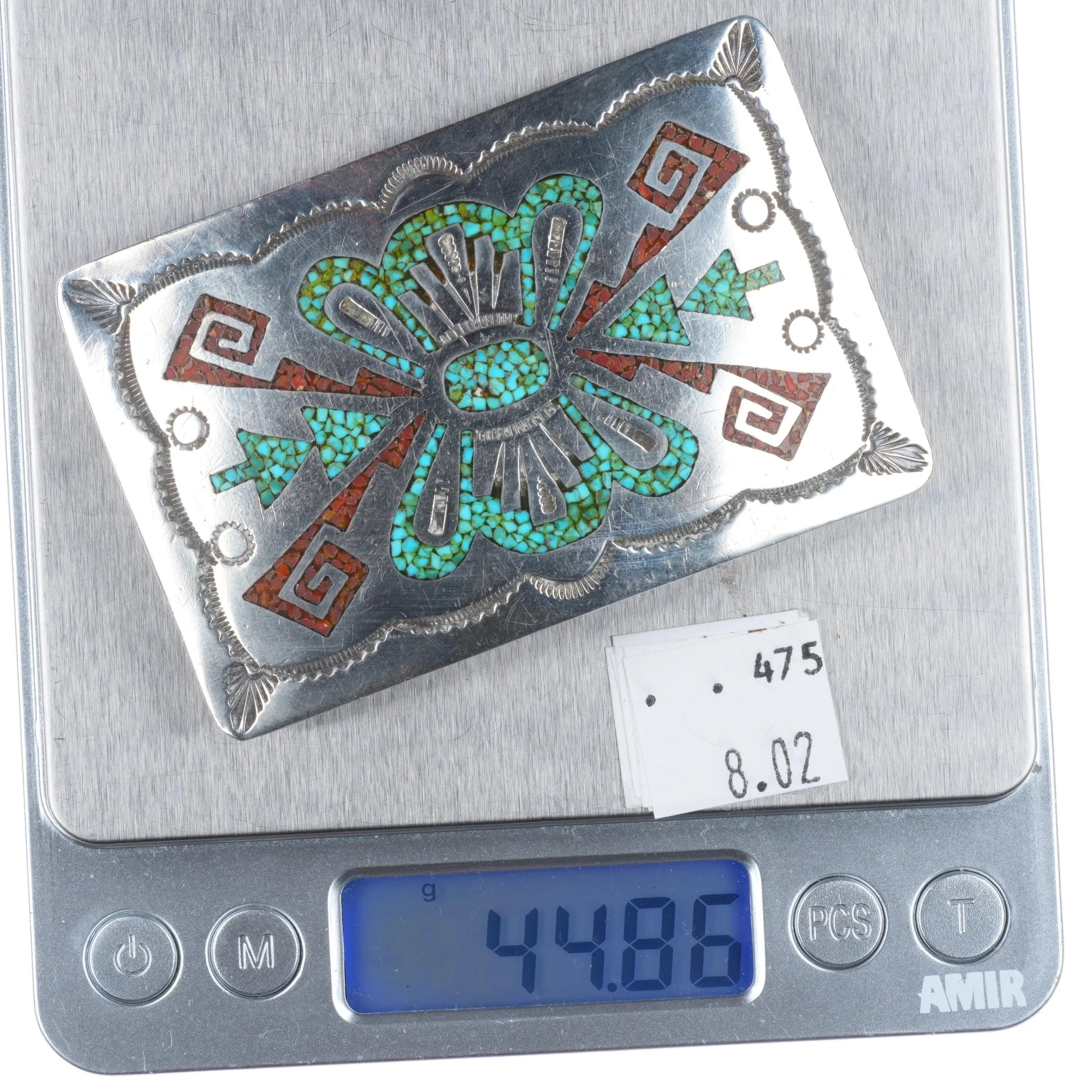 1970‘s Navajo Vintage Sterling silver chip inlay belt buckle turquoise. Tested and guaranteed solid sterling silver, fits a 1.5" wide belt. No issues, some expected wear. Circa 1970‘s. Weight and measurements in pictures. Unknown hallmark.