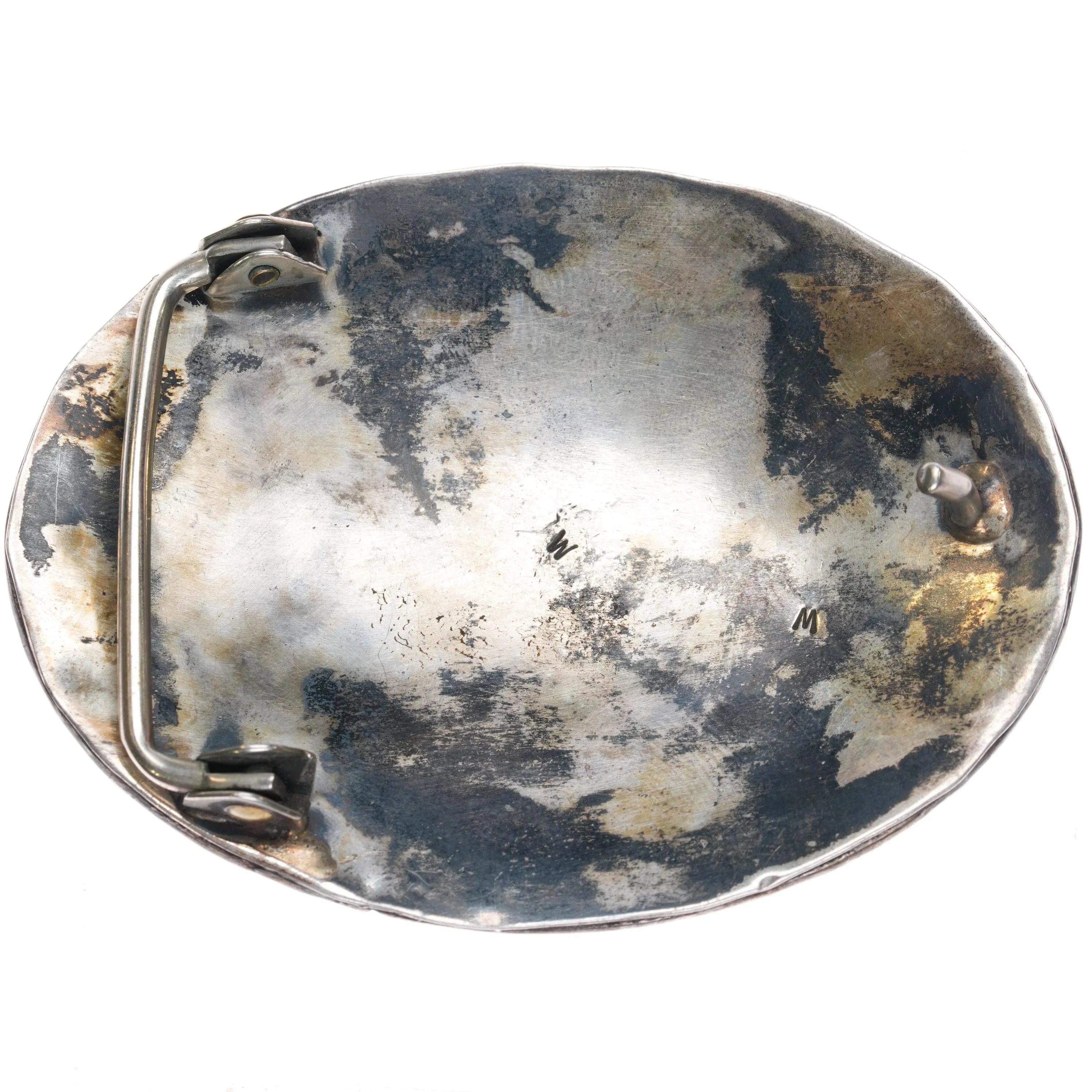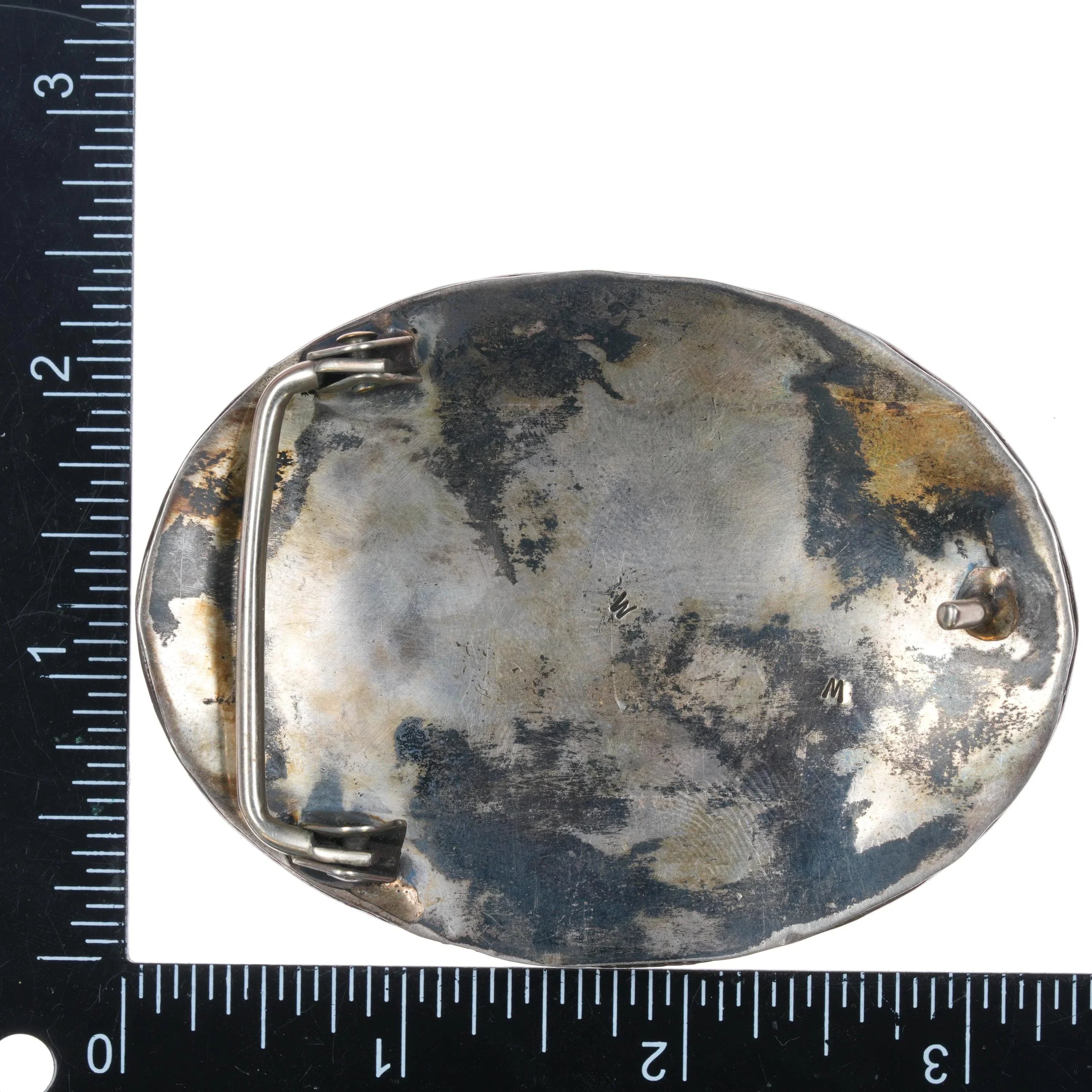 1970's W Navajo sterling silver belt buckle w/ 4 turquoise stones