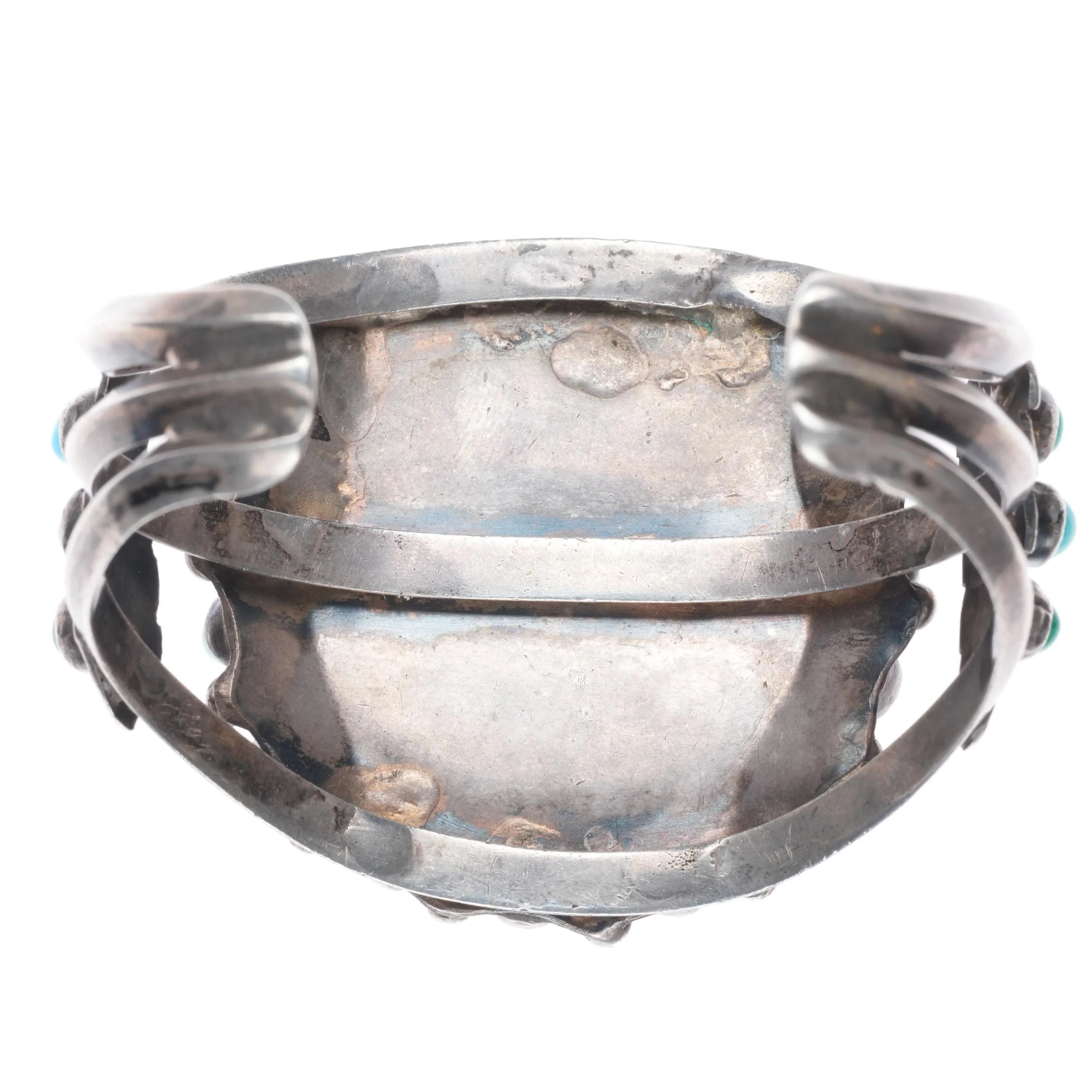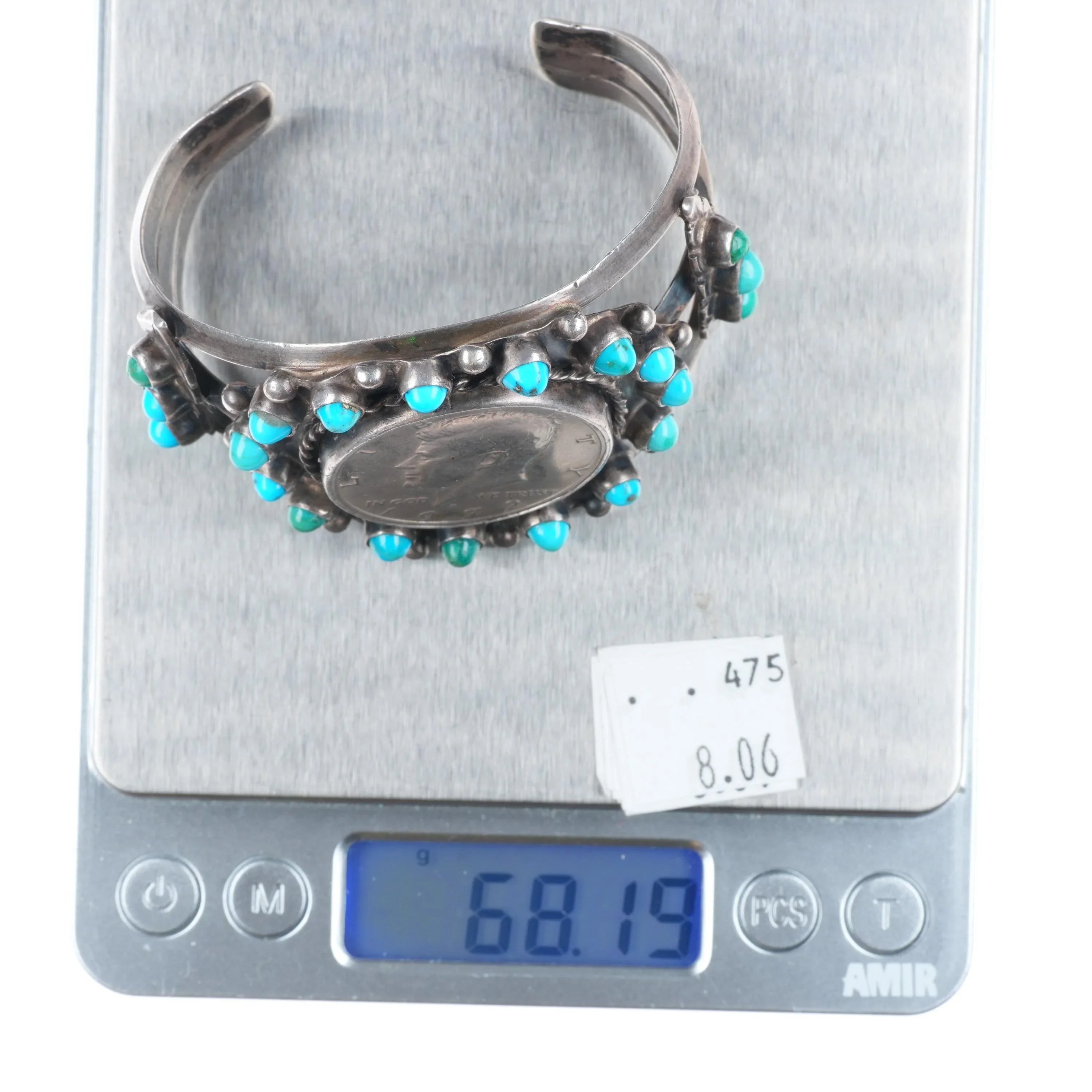 6.6" 1972 Zuni Snake eye turquoise sterling silver cuff bracelet US dollar coin