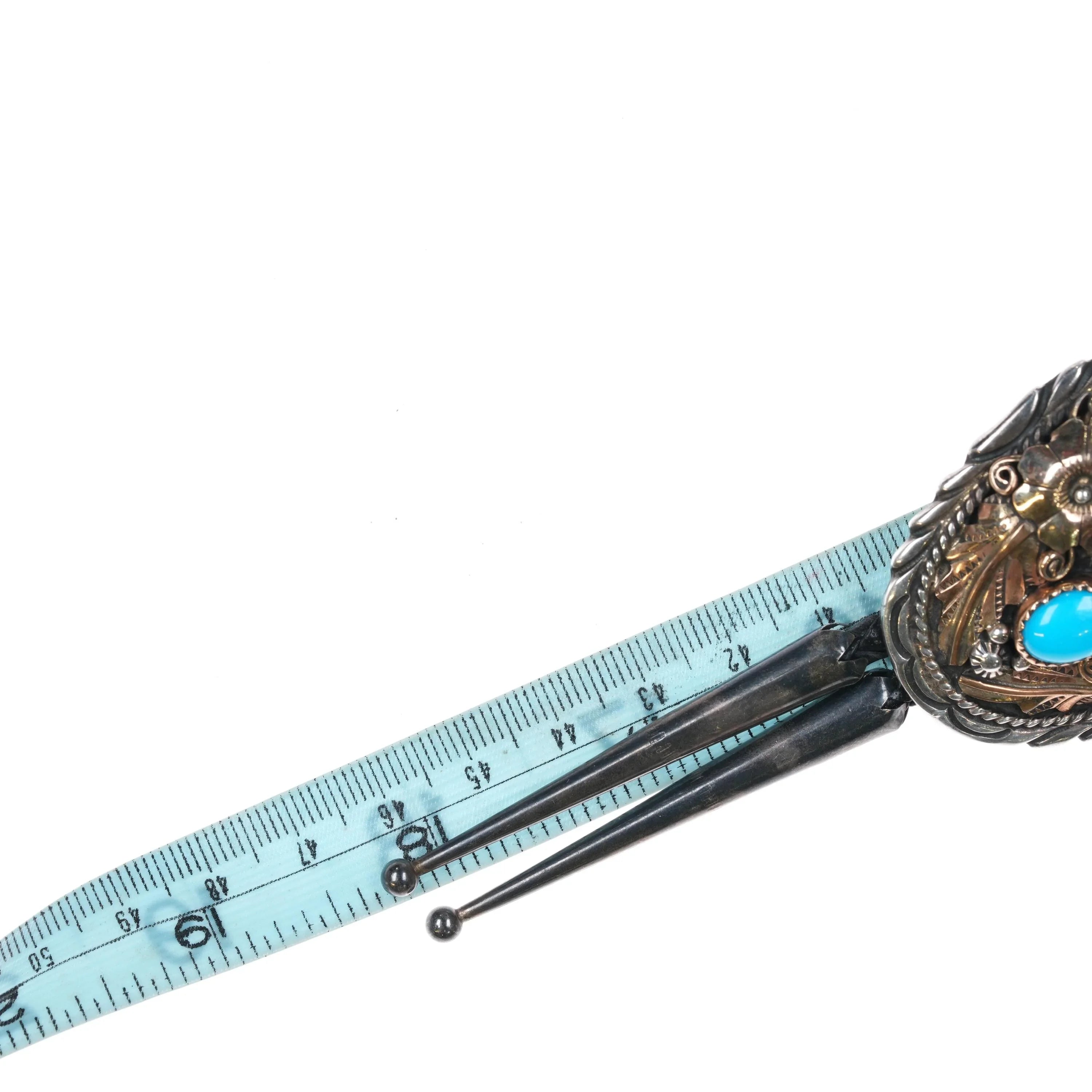 1980's MT, RRB Navajo sterling silver gold filled turquoise bolo tie vintage