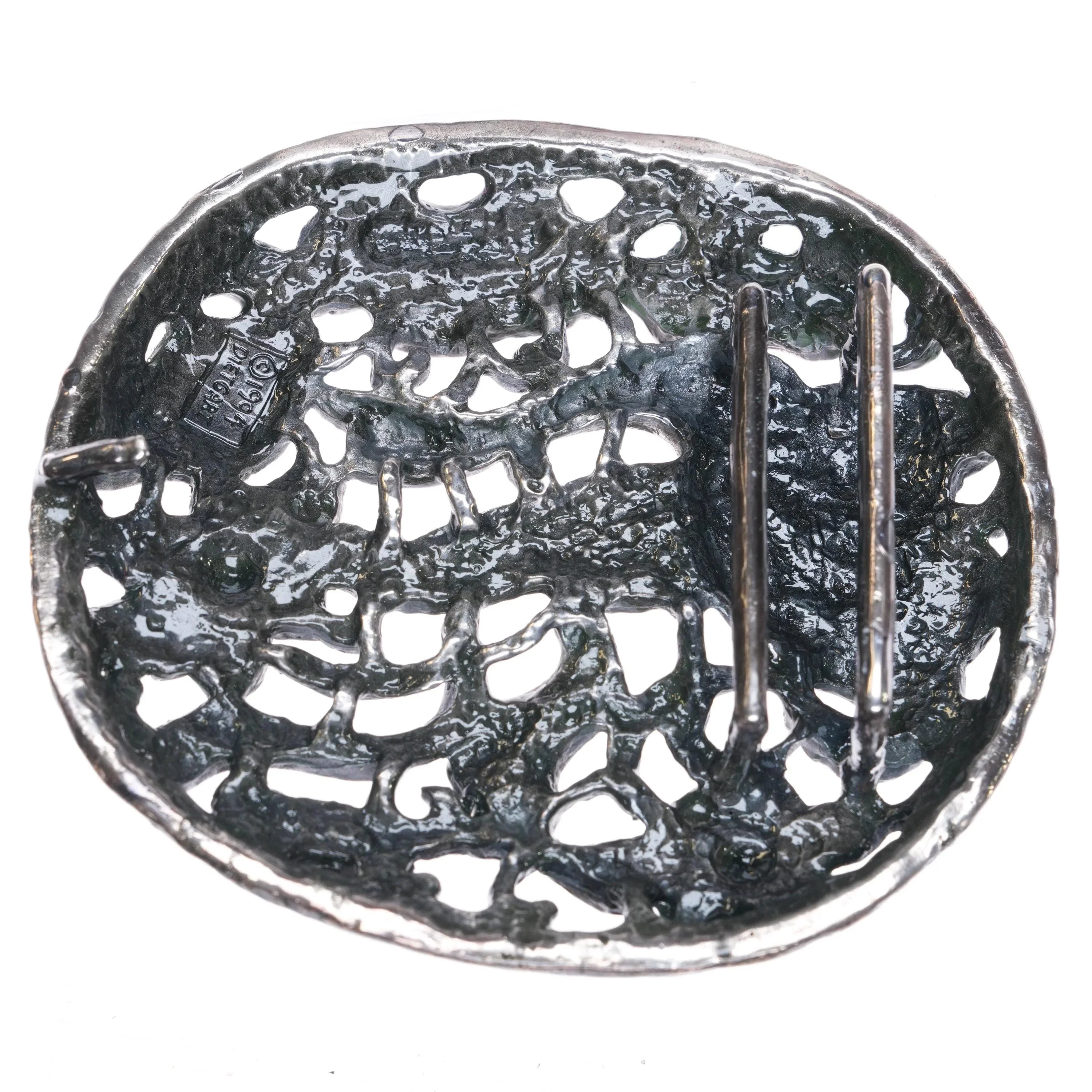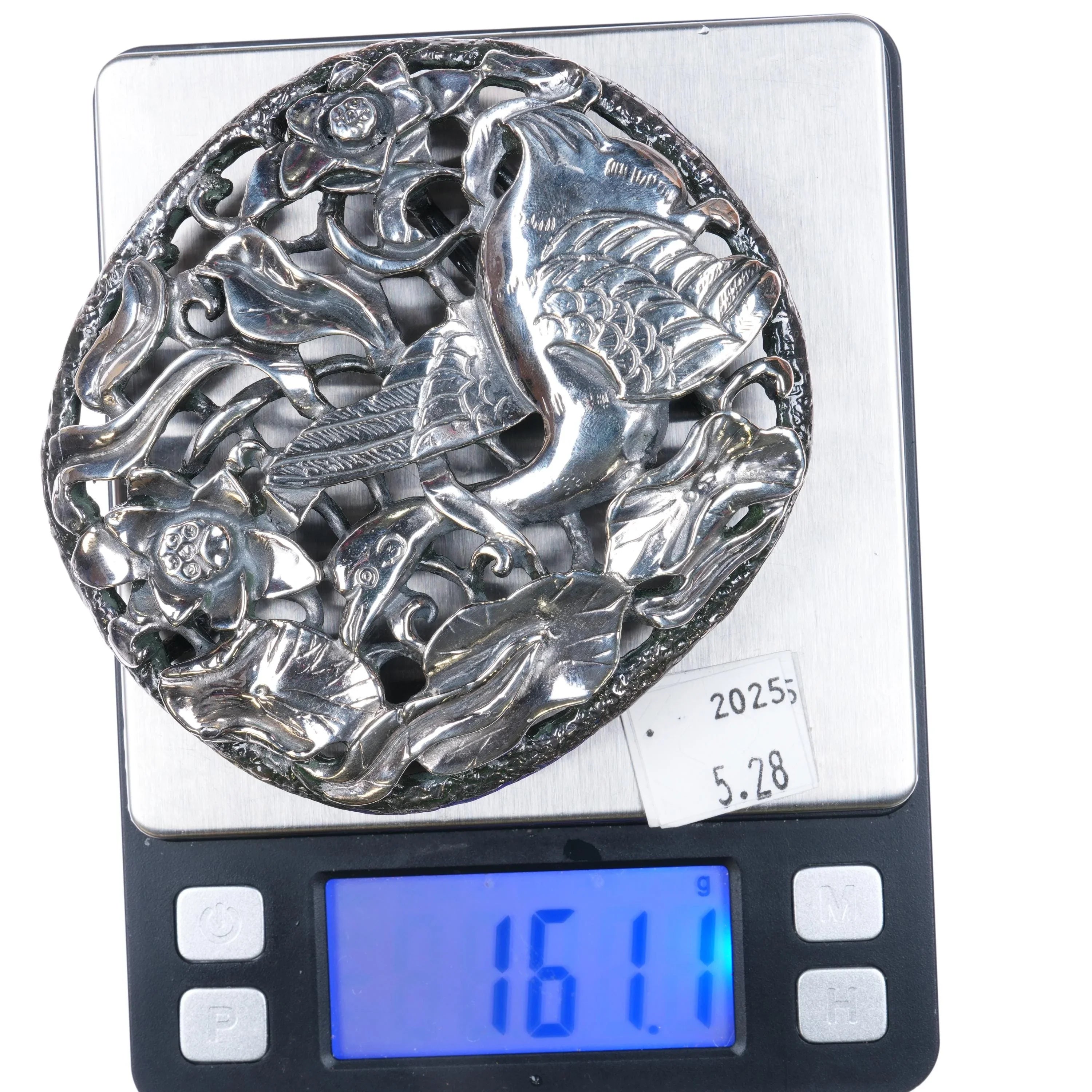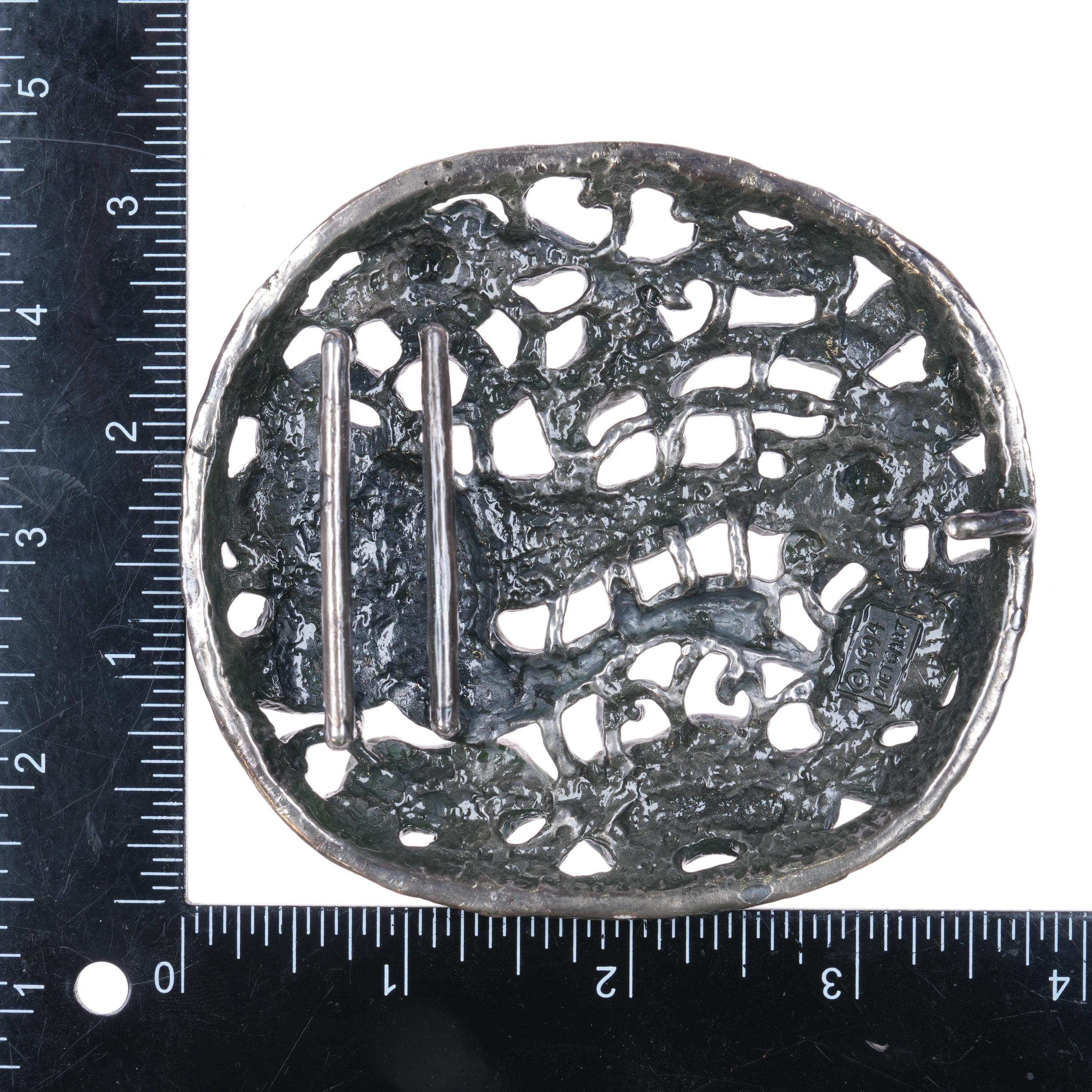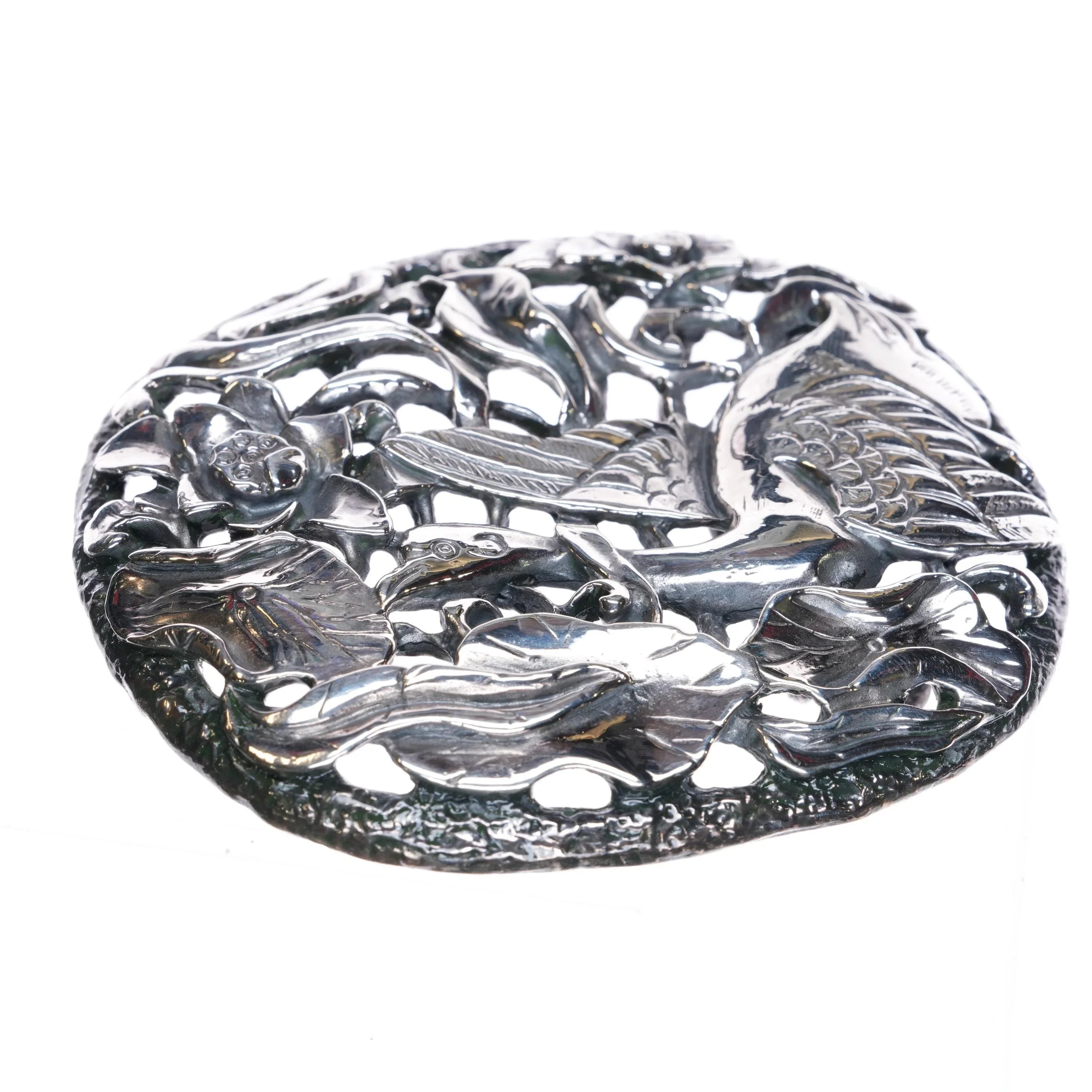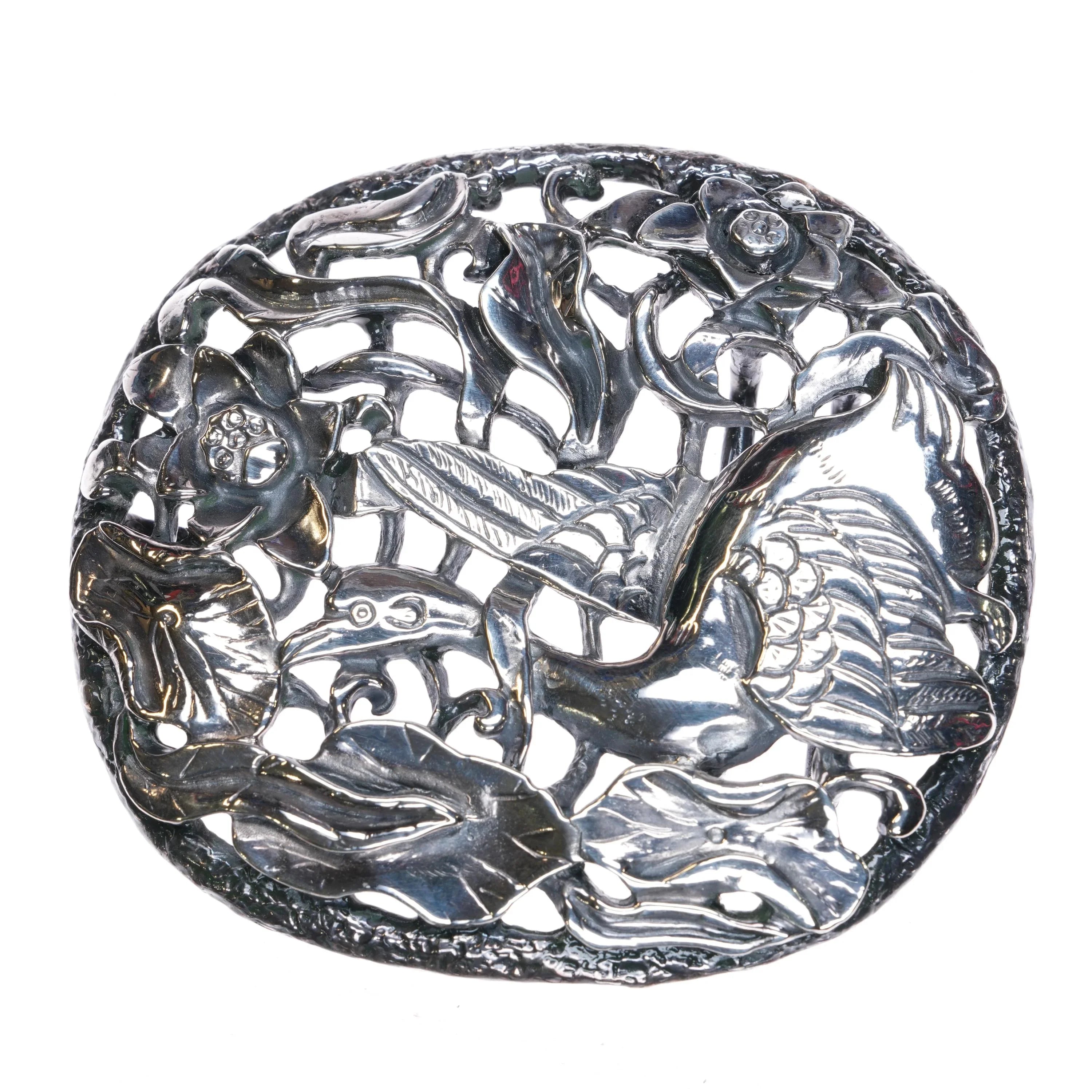 1994 Dietgart Sterling silver Heavy Chinoiserie Asian themed belt buckle cranes
