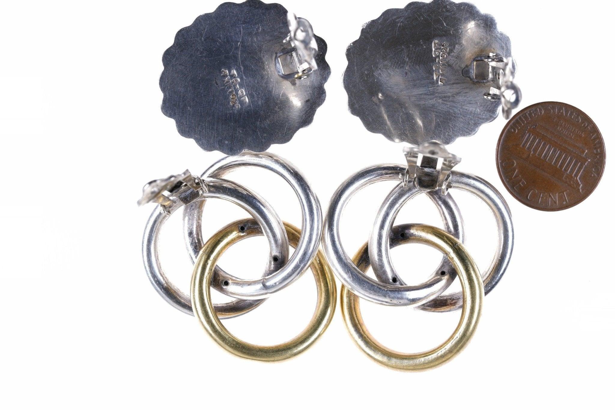 2 Pairs Vintage Sterling clip on earrings 43 grams total with no damage, good strong clips. One unmarked but tested sterling/brass.