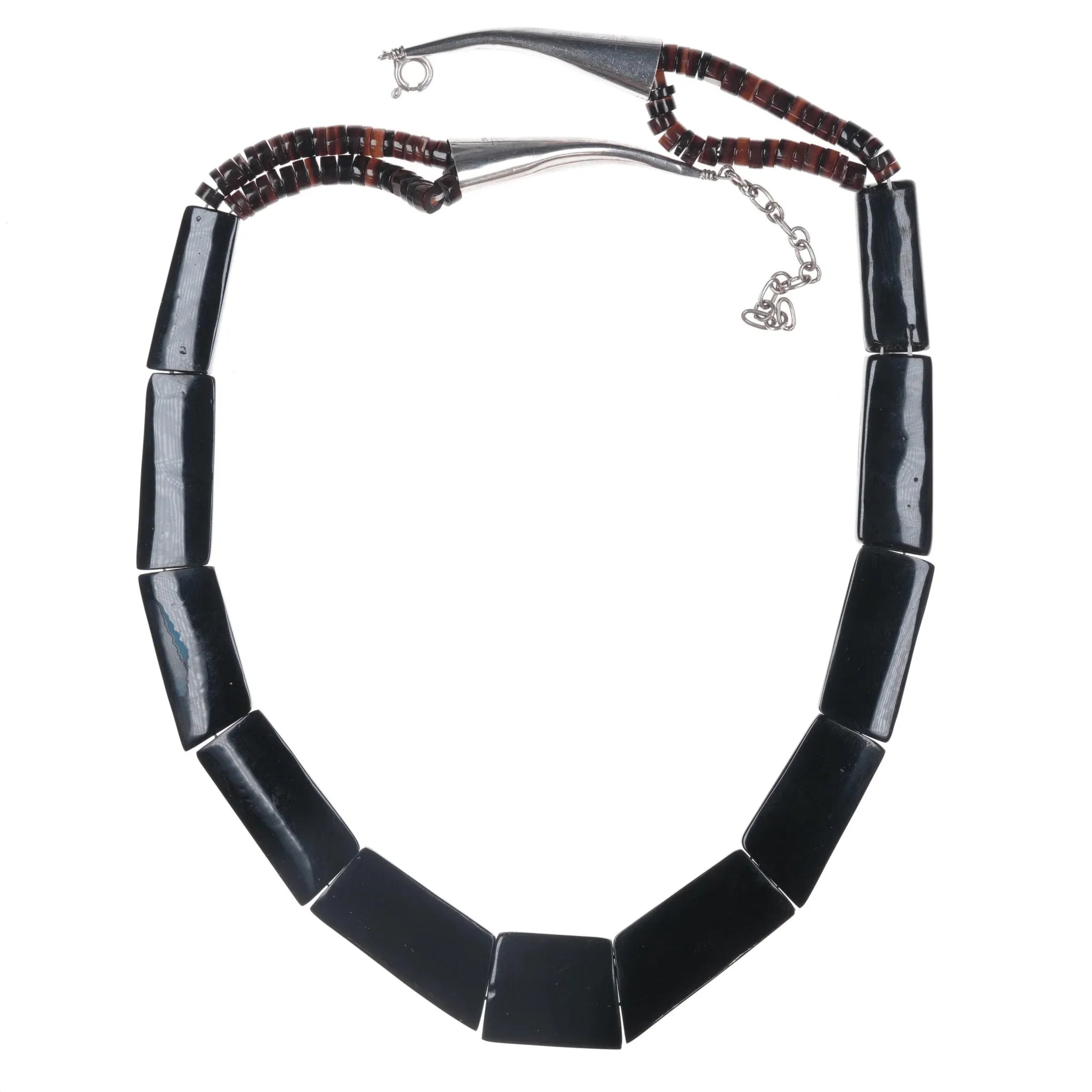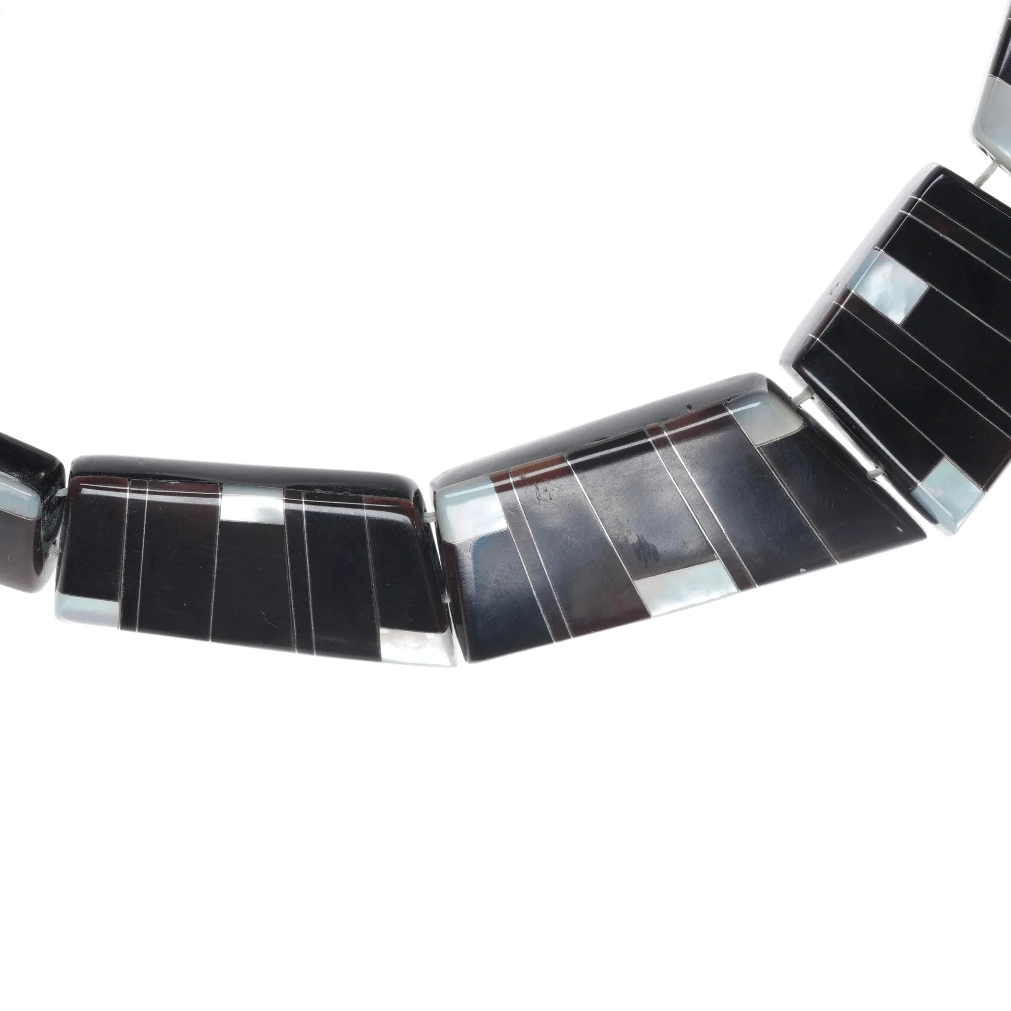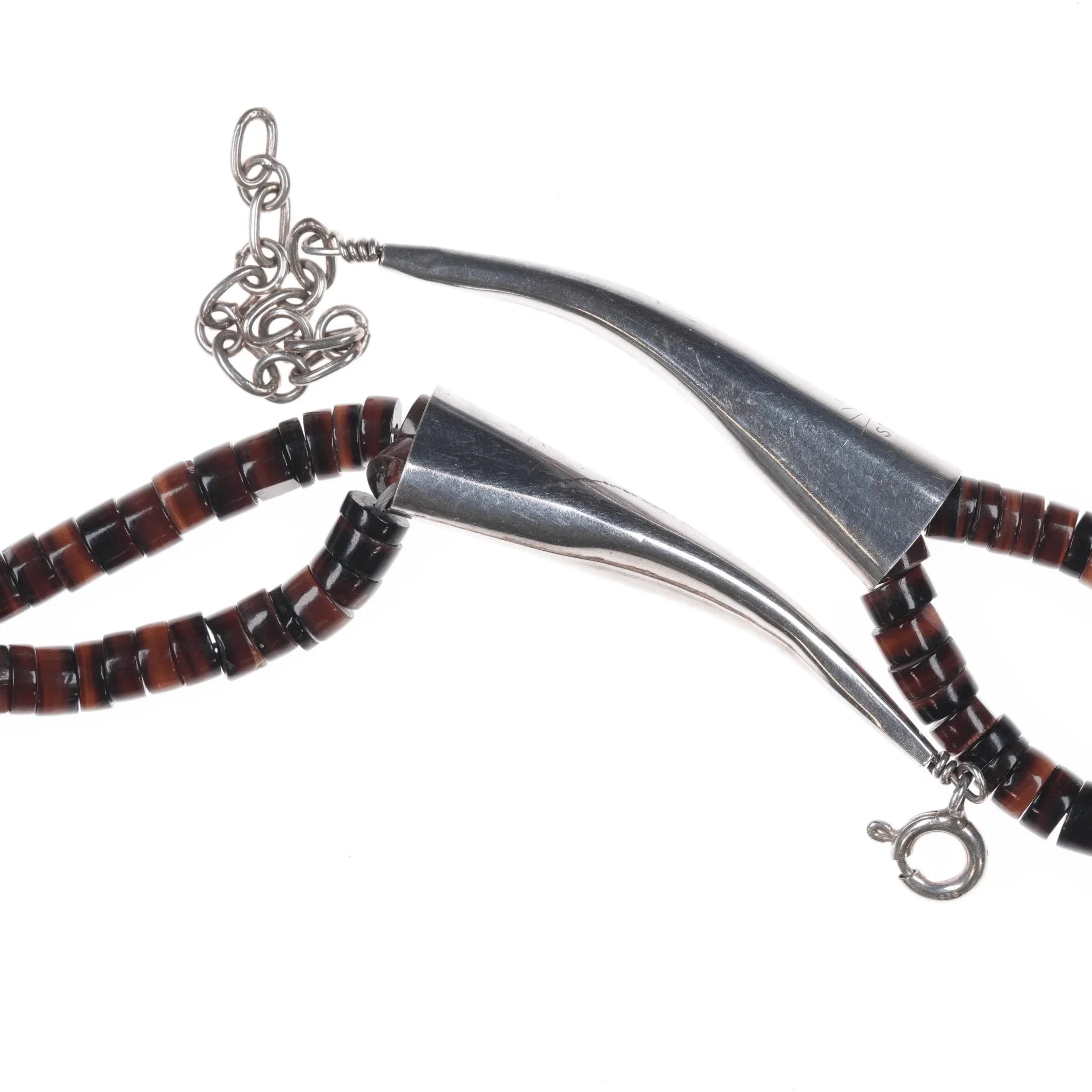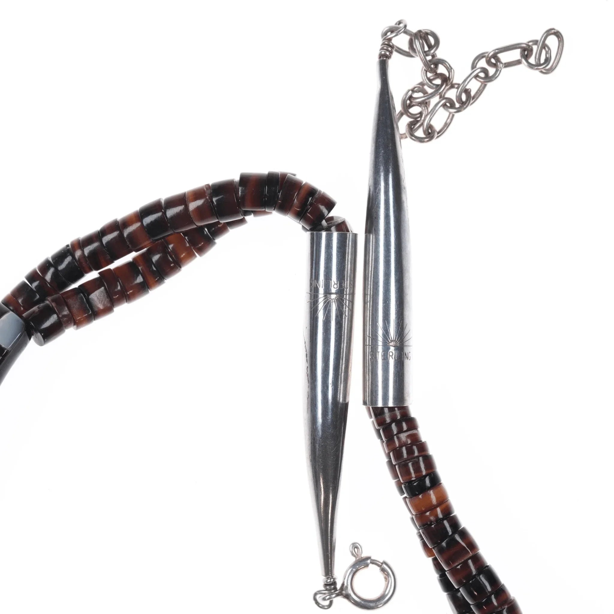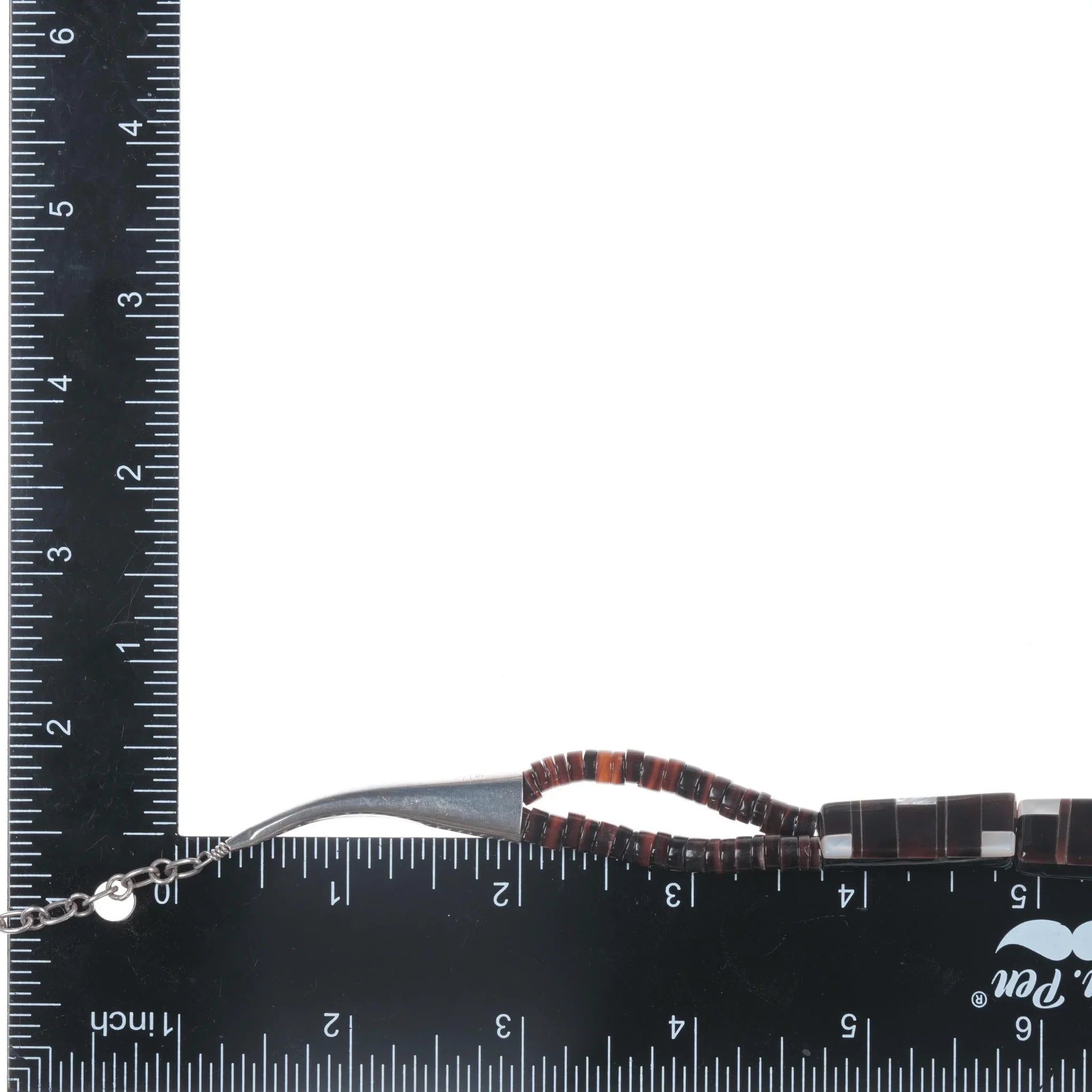 22" Sterling/Shell Santo Domingo style necklace. Nice sized well made necklace with sterling fittings and inlay. Likely about 20-30 years old, not sure who made it or where they made it..
