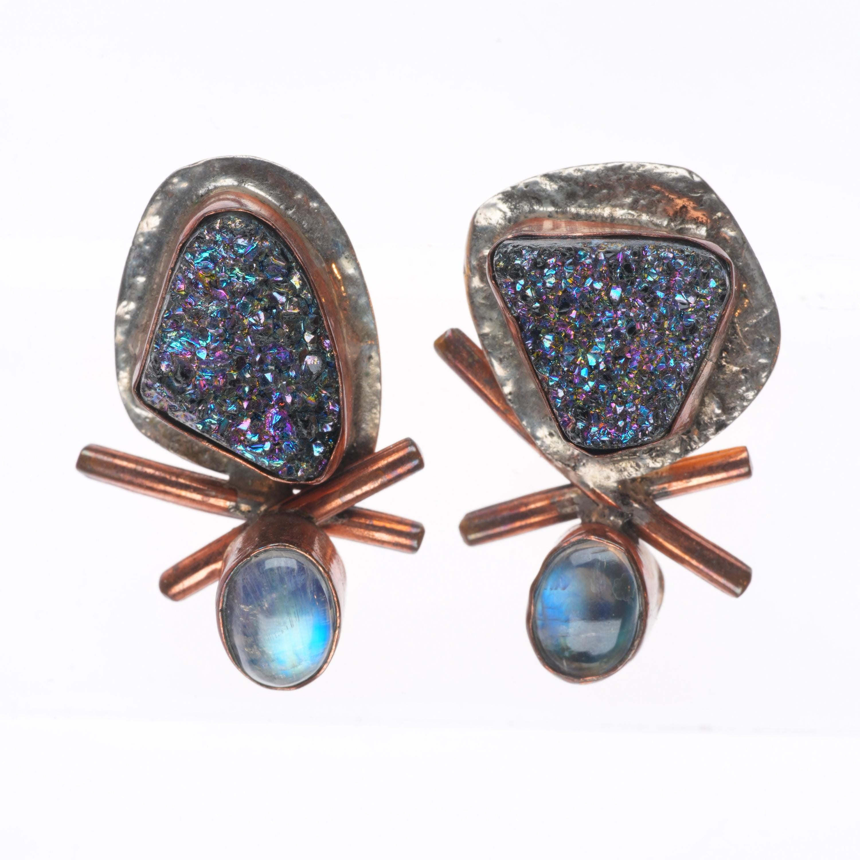 2pr retro Sterling silver, copper, pearl, crystal, labradorite earrings. Great earrings with no issues, tested and guaranteed solid sterling silver and copper, any marks detected, weight, and measurements will be shown in the pictures. Circa last quarter of the 20th century. Apparently unmarked.