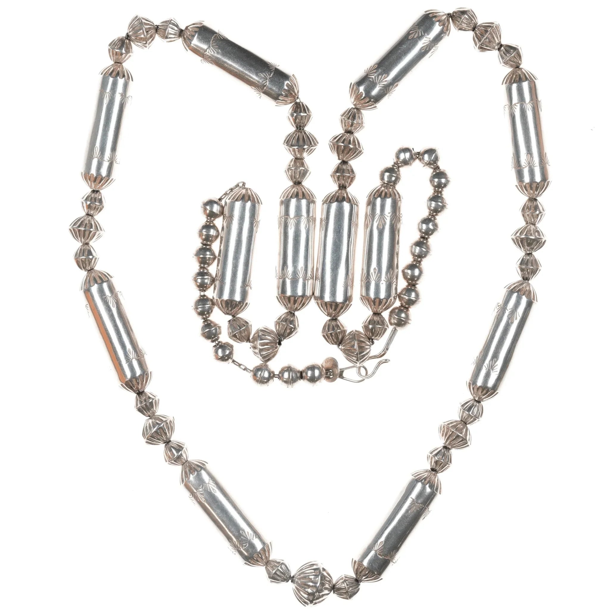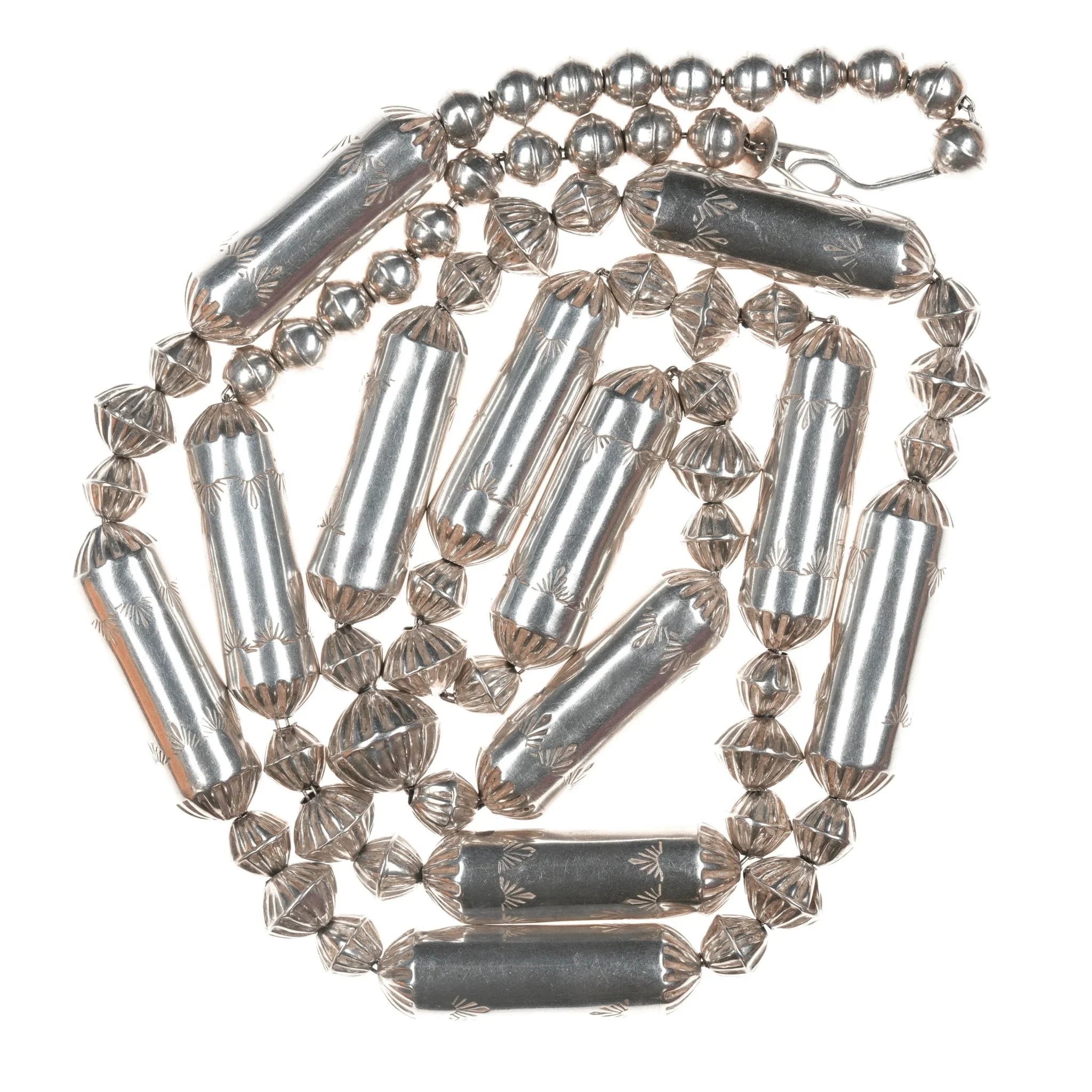 34" Martha Willeto Navajo pearl tubes and beaded sterling necklace.