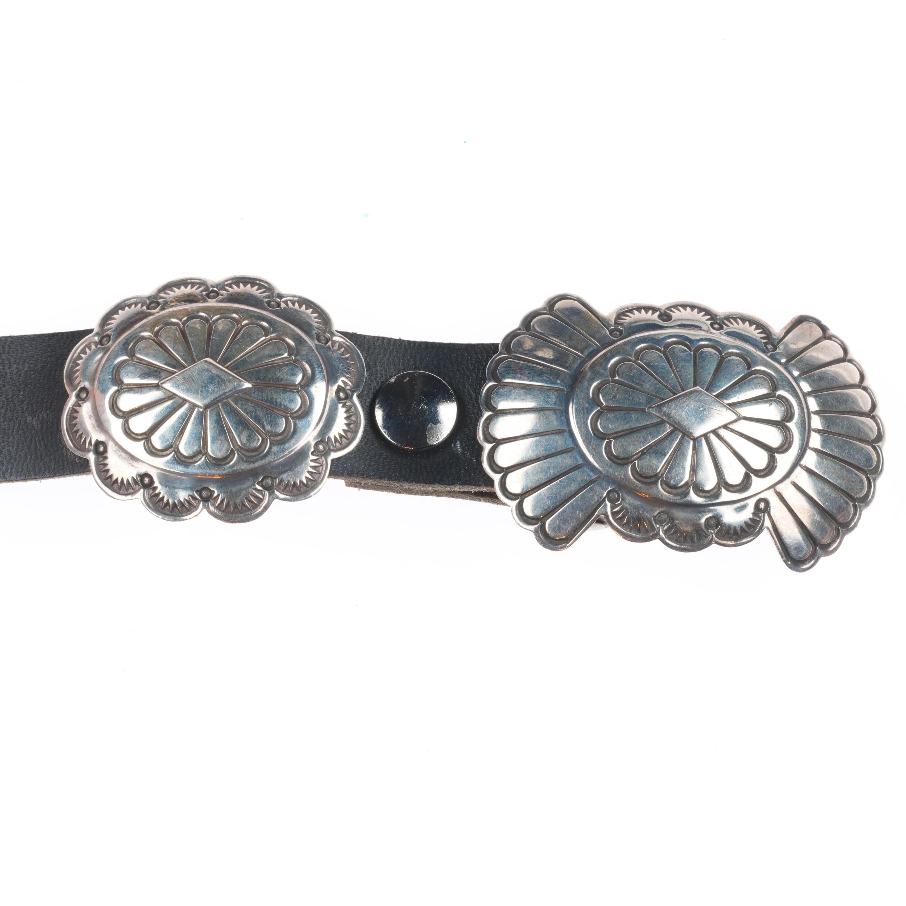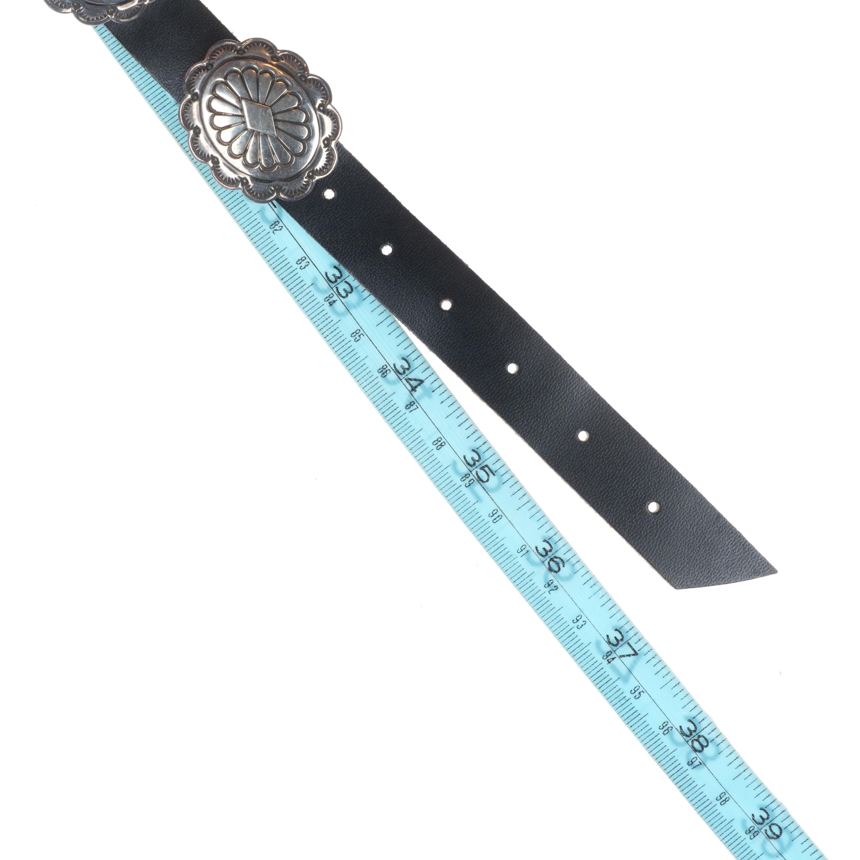 36" Vintage TL Navajo sterling silver slim/sturdy stamped concho belt