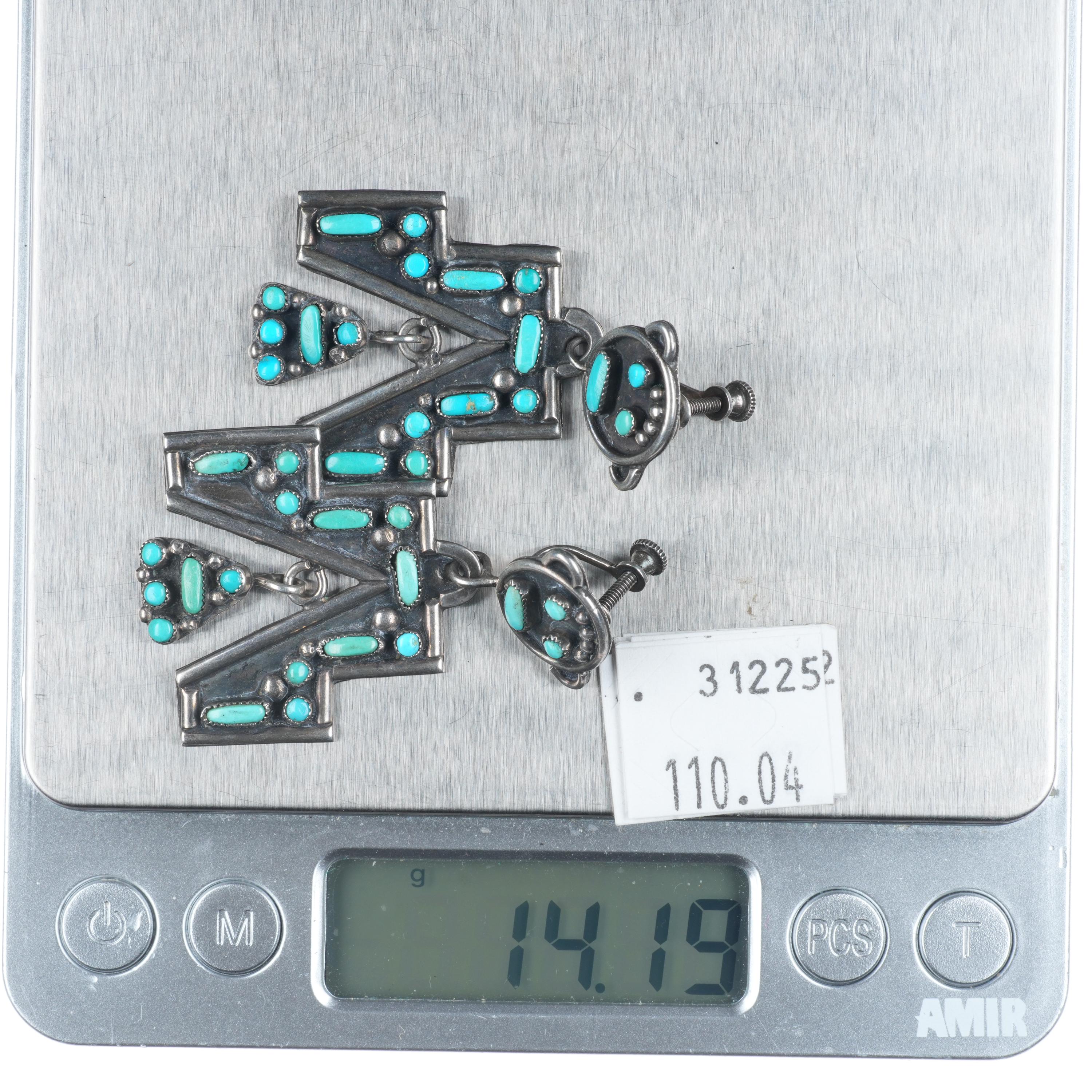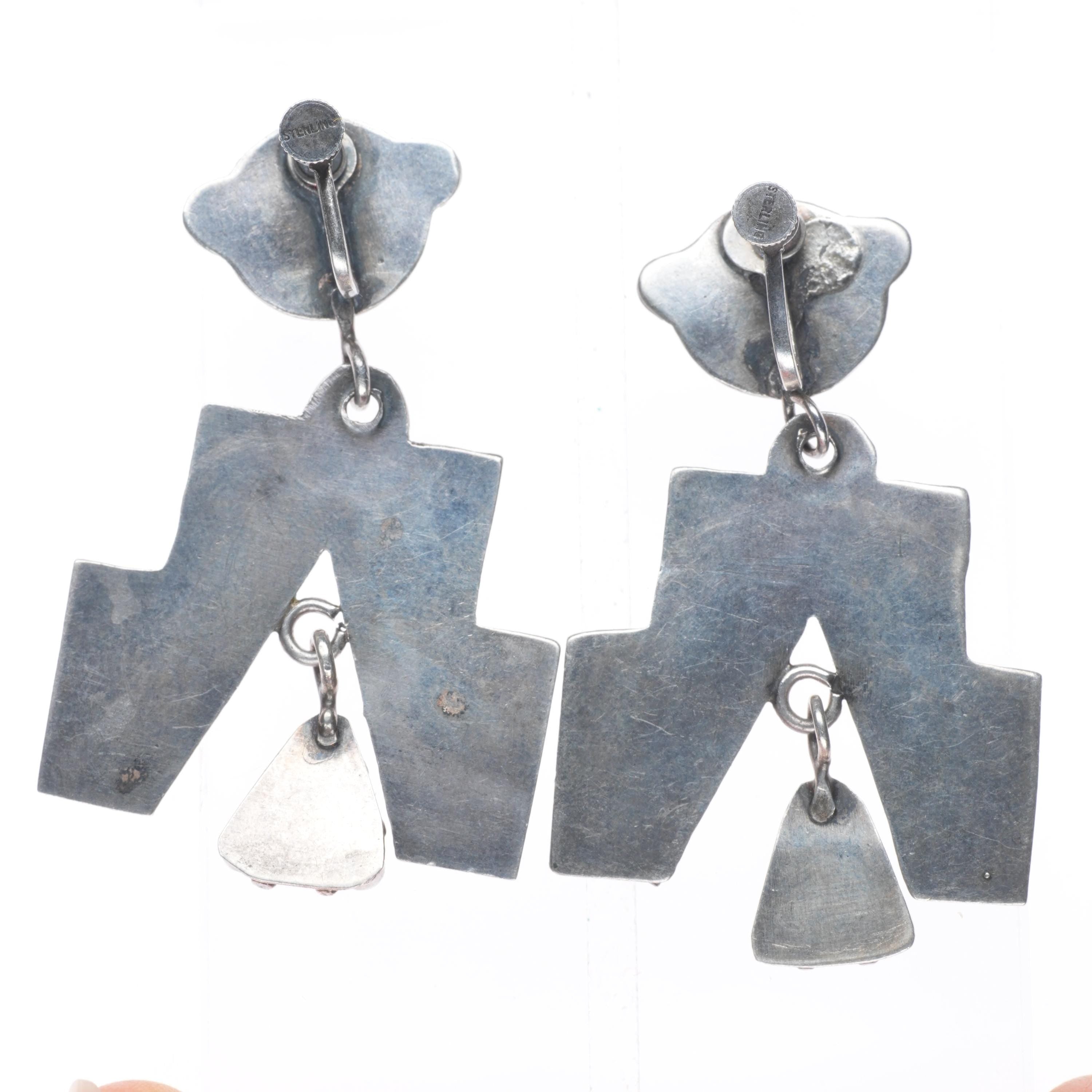 40's-50's Vintage Zuni Kachina Chandelier sterling silver turquoise earrings