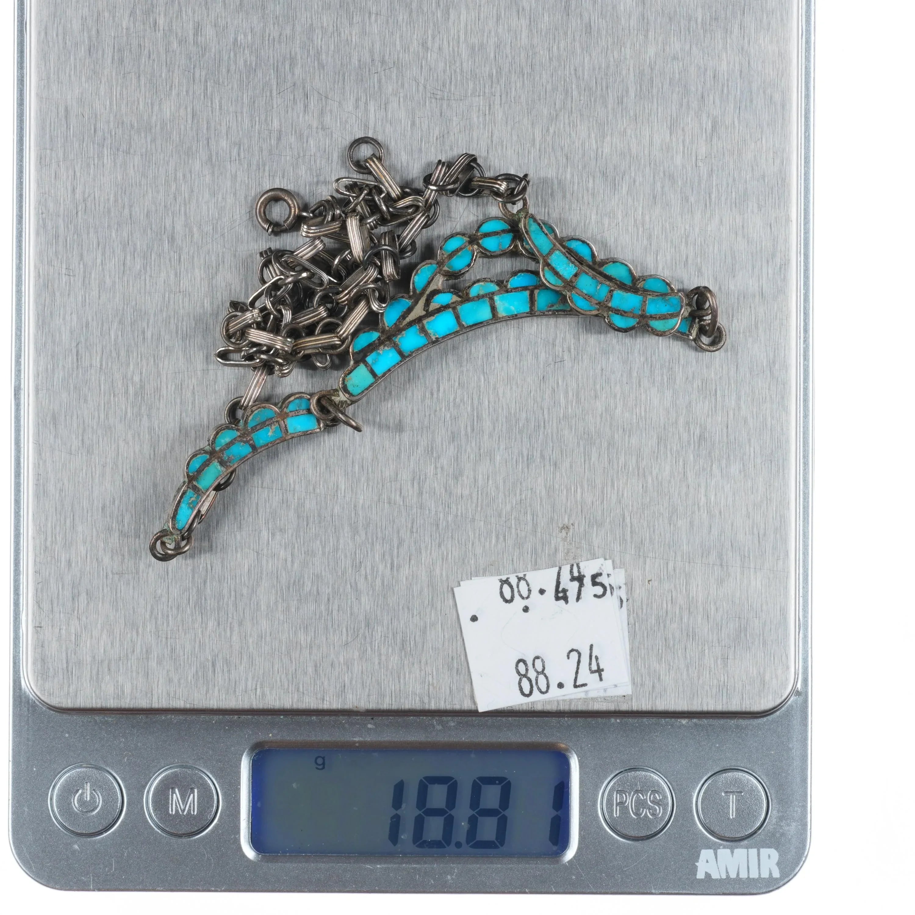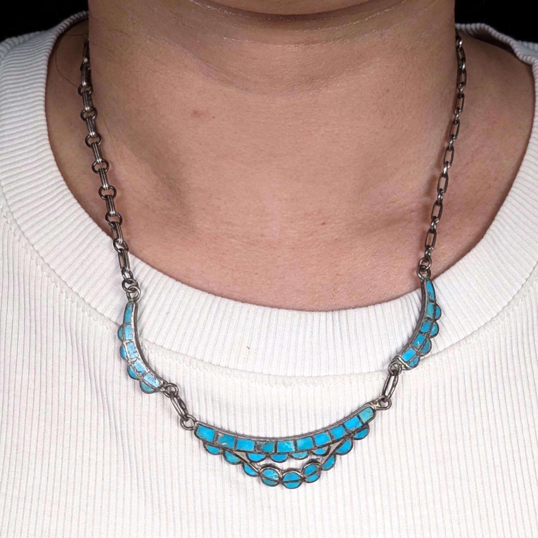 1940's Lambert Homer Sr Zuni sterling silver flush inlay turquoise necklace. Solid sterling silver tested and guaranteed with weight and measurements in the pictures. No issues, circa second quarter of the 20th century to mid 20th century. C.G. Wallace code on reverse side.