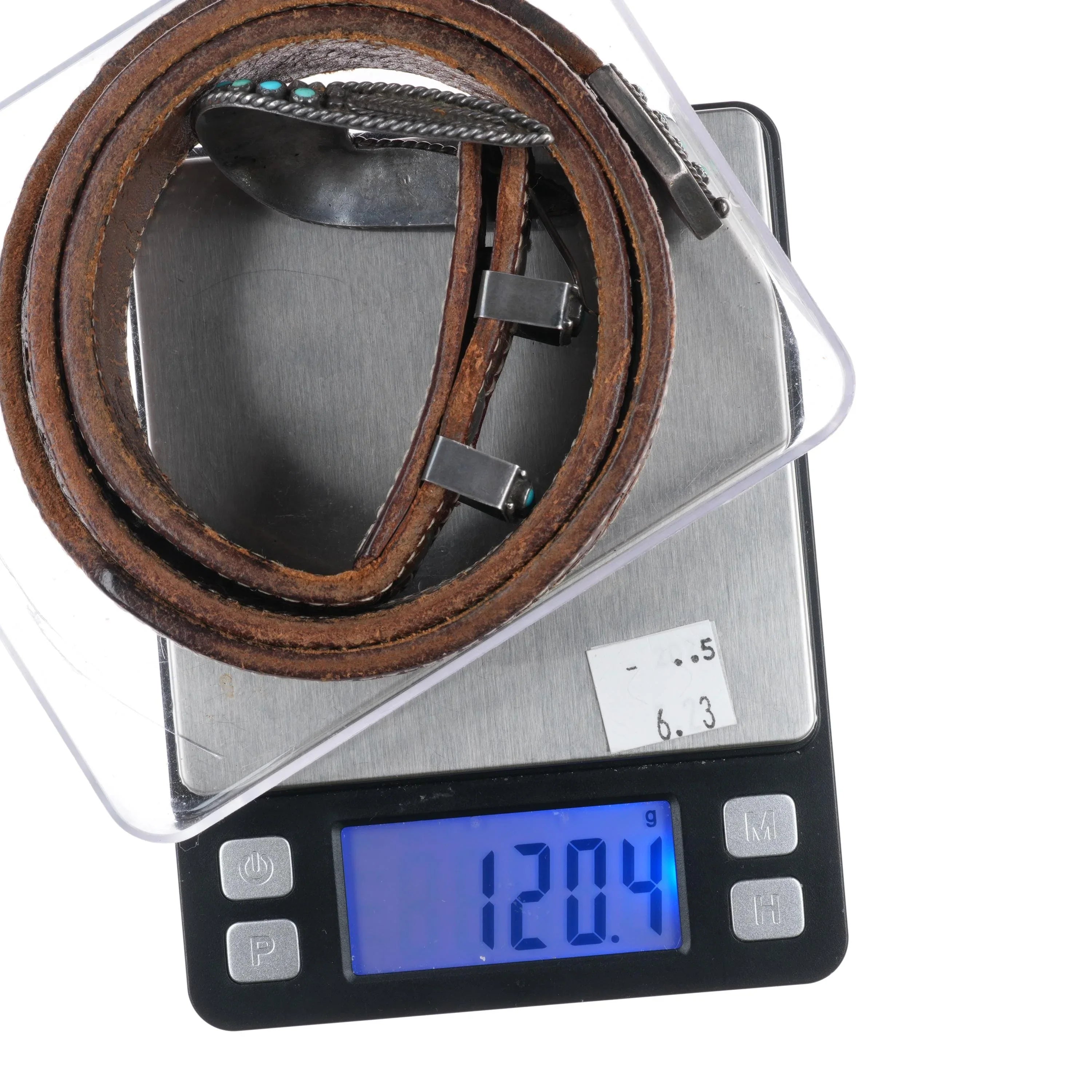 40's-50's Zuni Sterling silver snake eye turquoise ranger belt buckle set on 30"