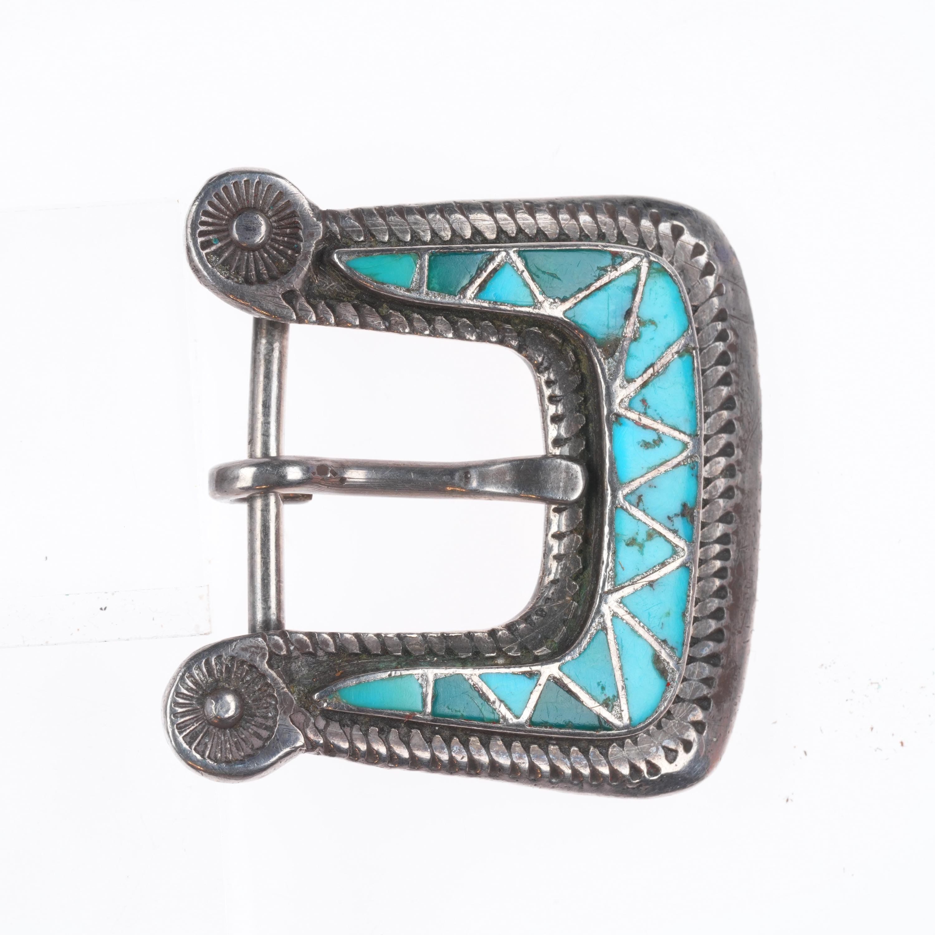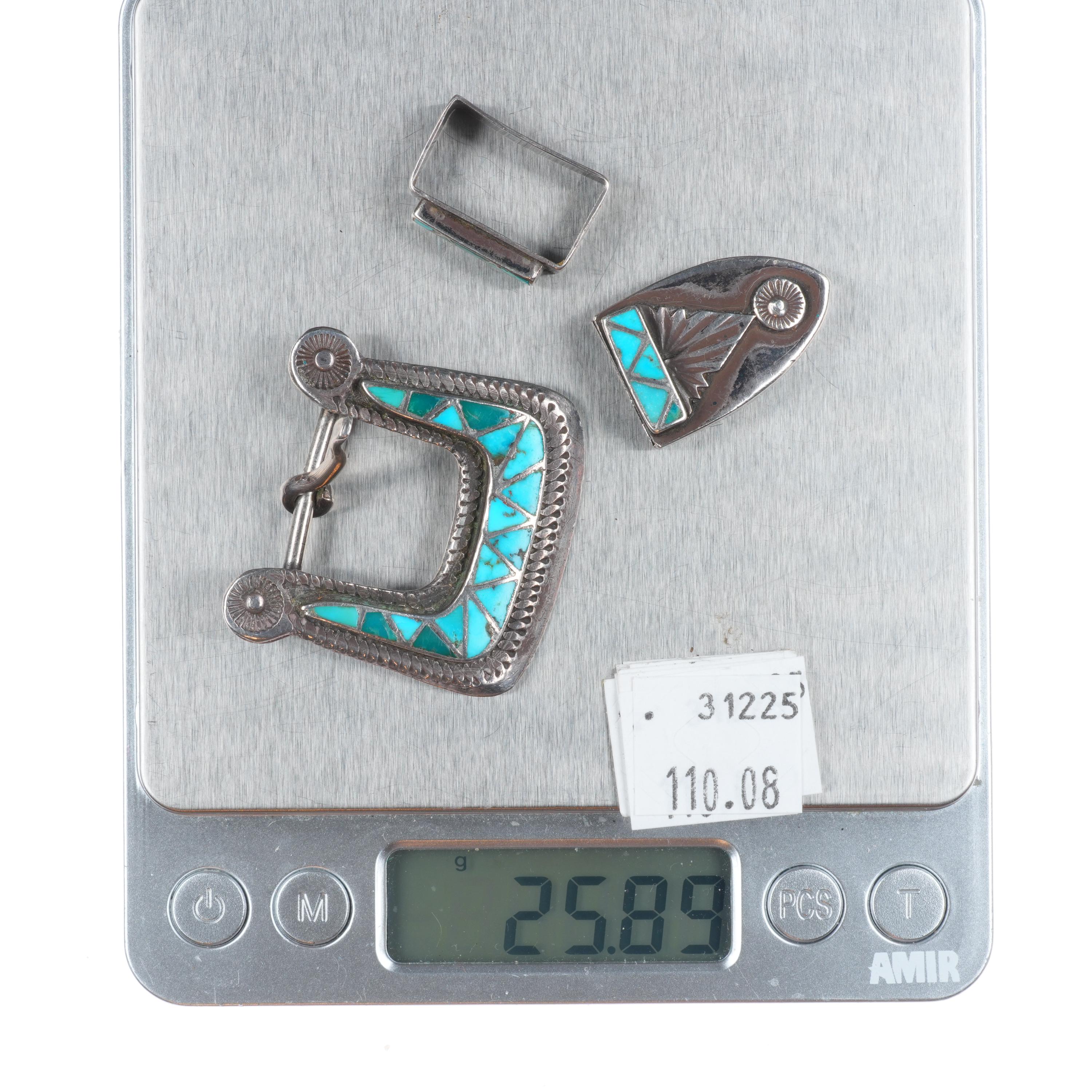 40's-50's Zuni sterling silver turquoise channel inlay ranger belt buckle set