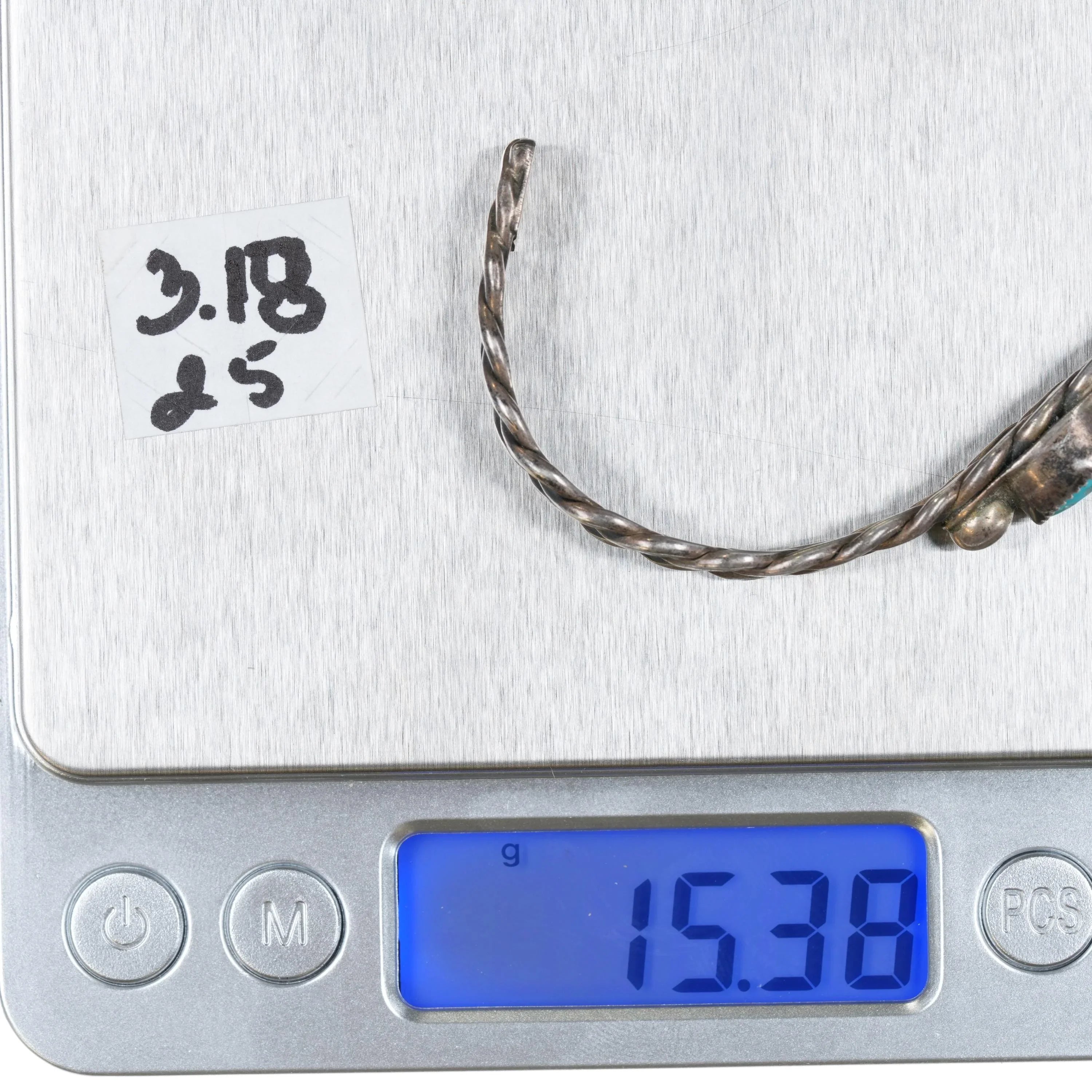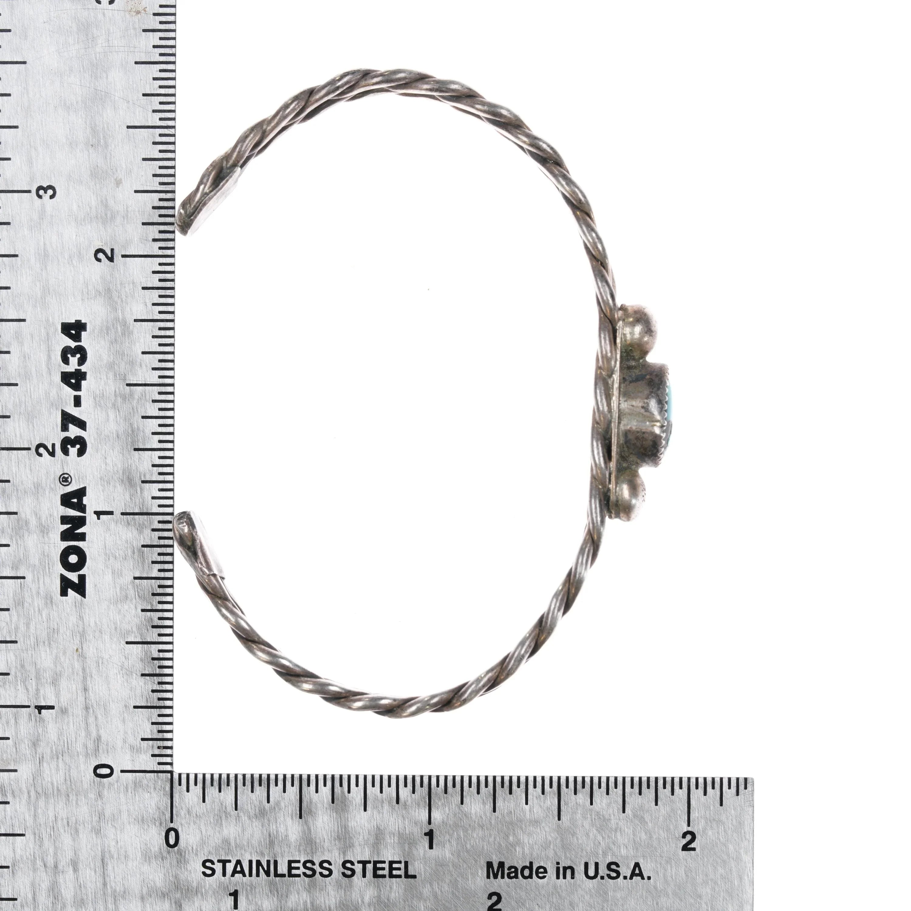 6.12" Vintage Pueblo silver twisted wire turquoise cuff bracelet
