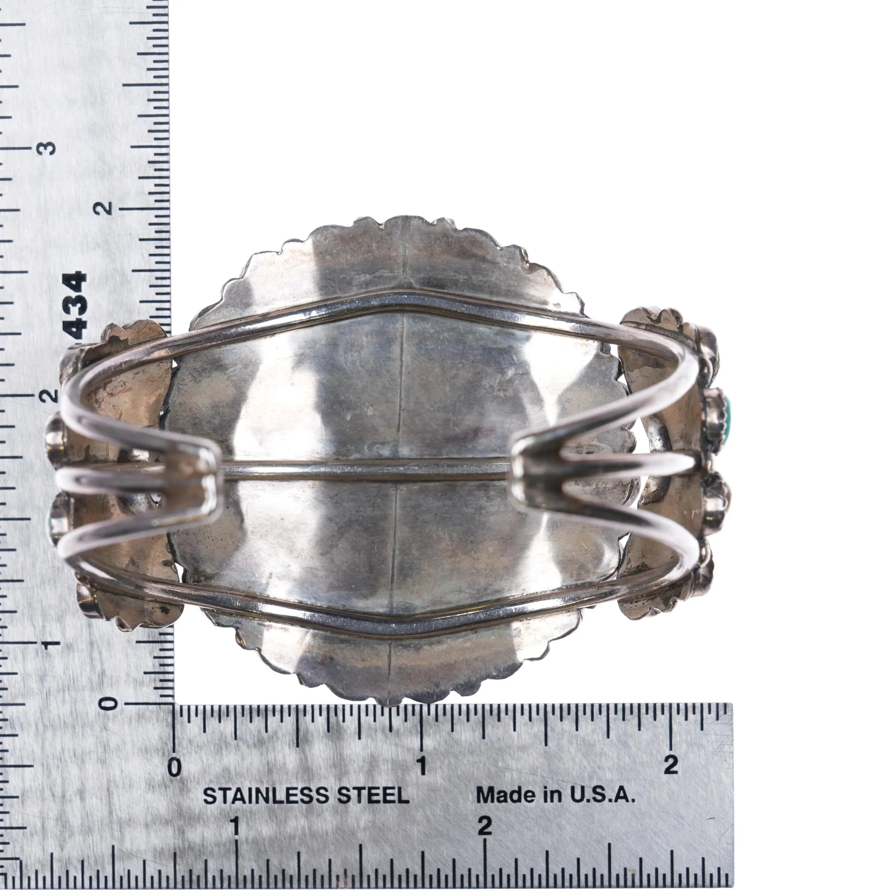 6.1" Southwestern sterling silver turquoise cluster cuff bracelet