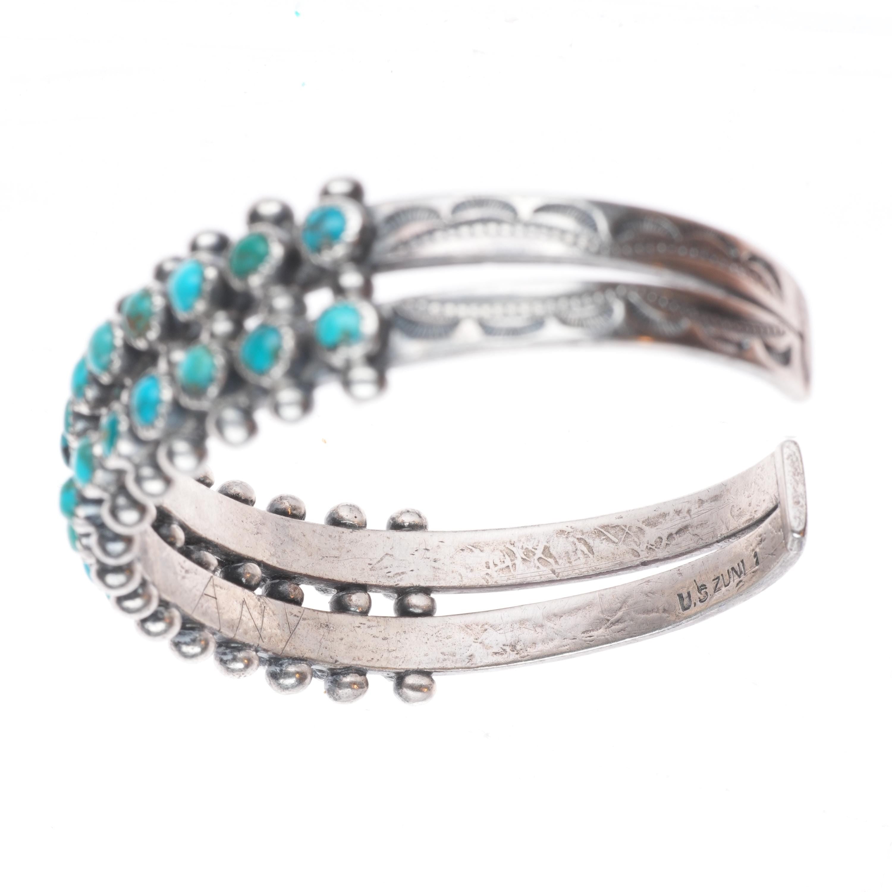 6.1" US Zuni 1 C.G. Wallace snake eye turquoise sterling silver cuff bracelet