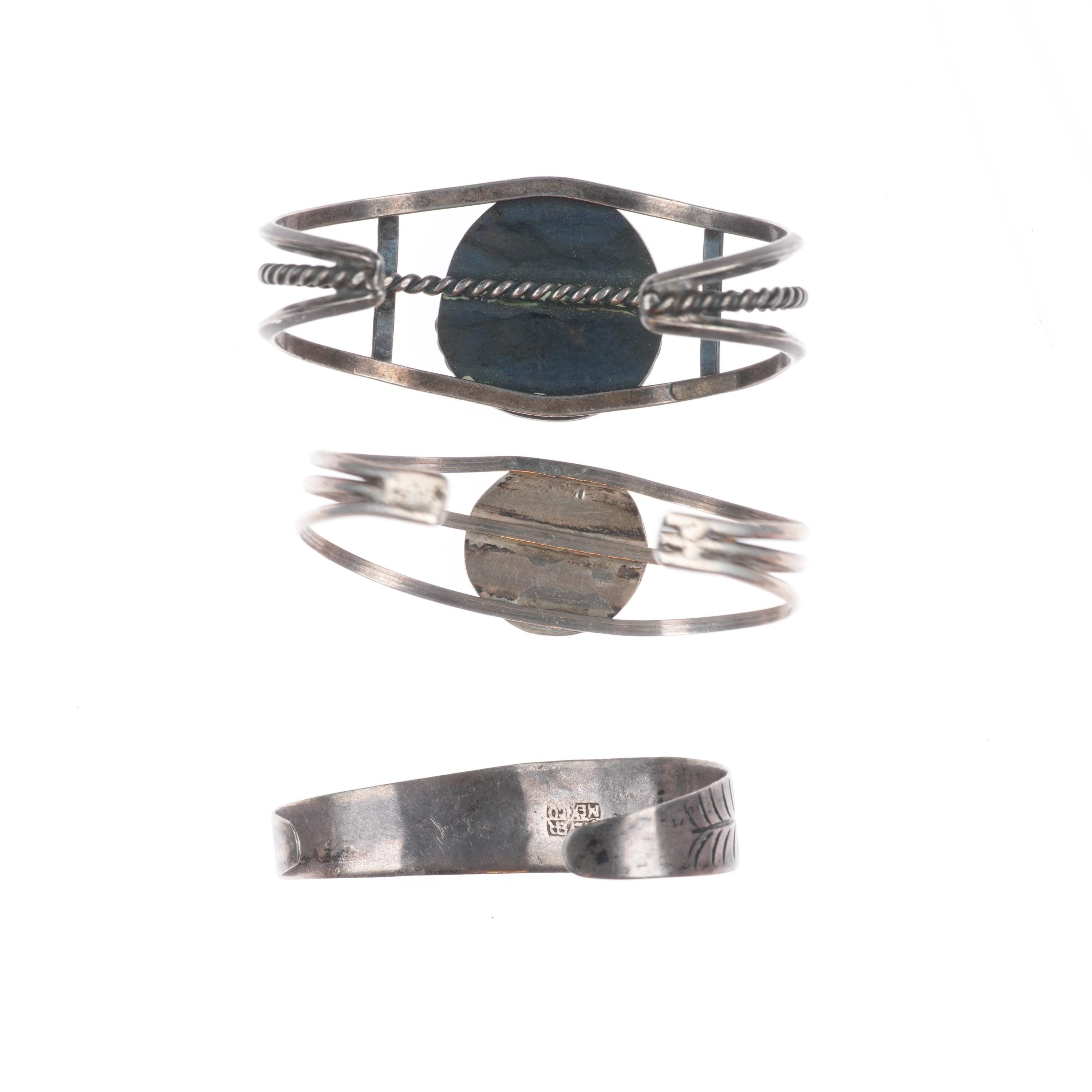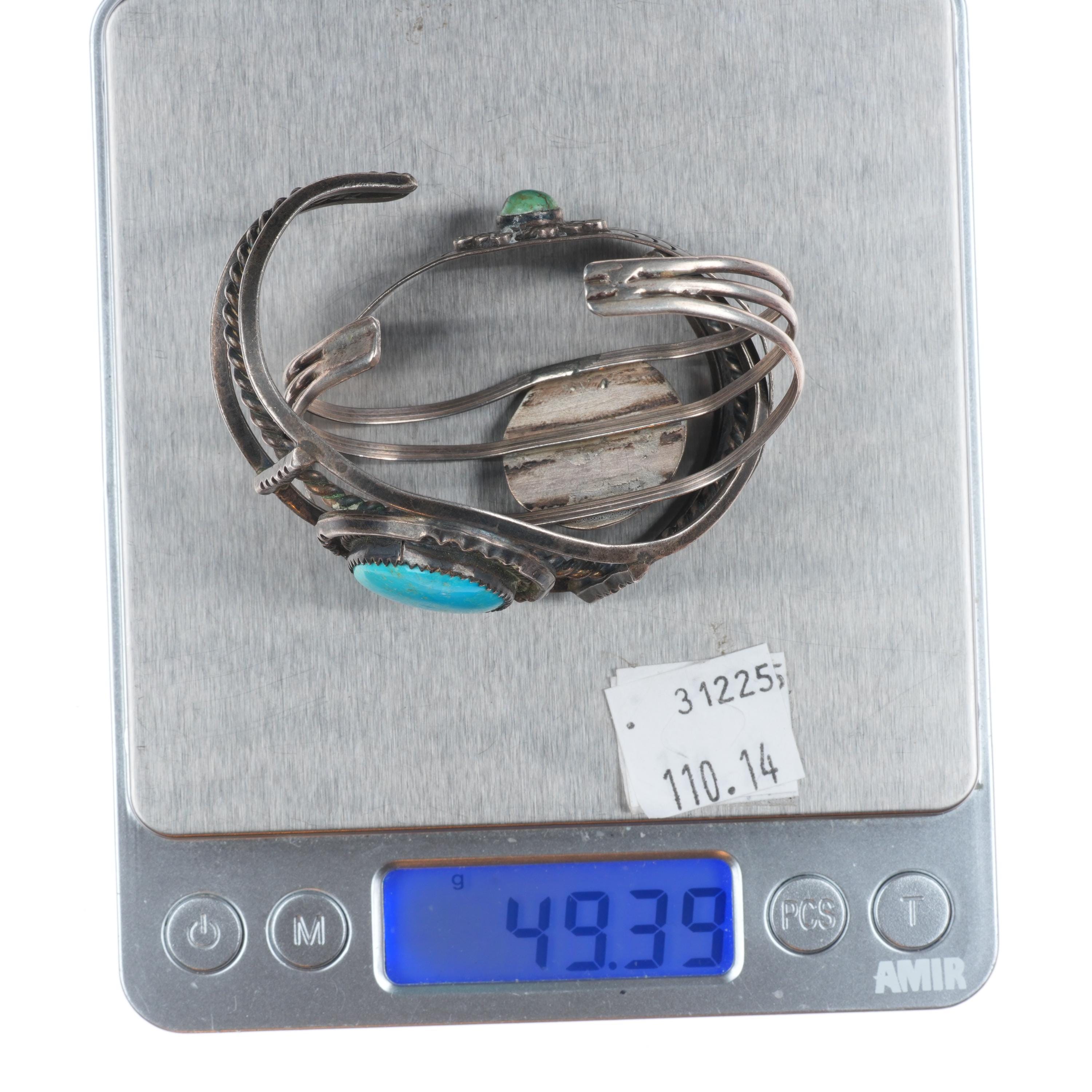 6.1" Vintage Navajo/Mexican sterling silver turquoise cuff bracelet lot