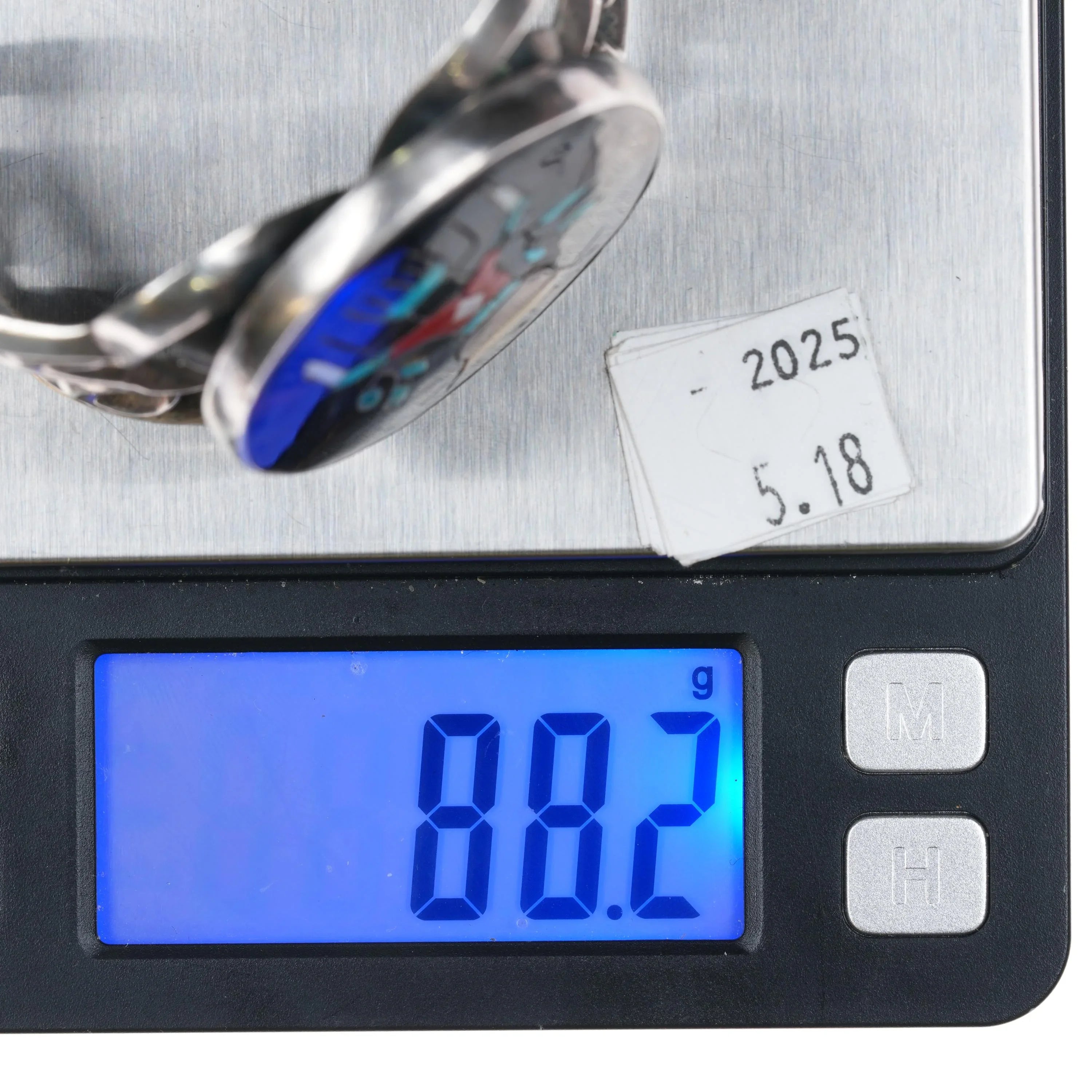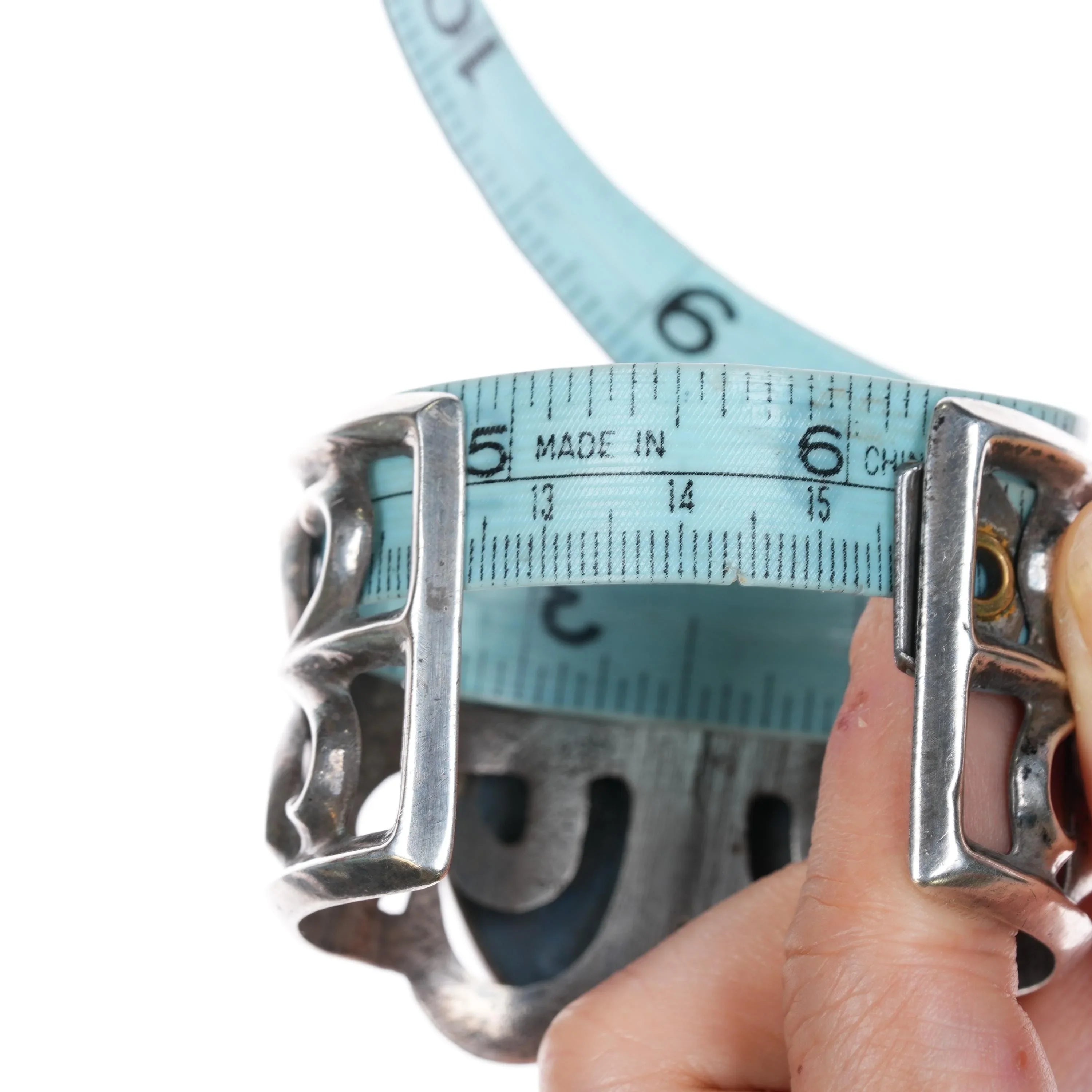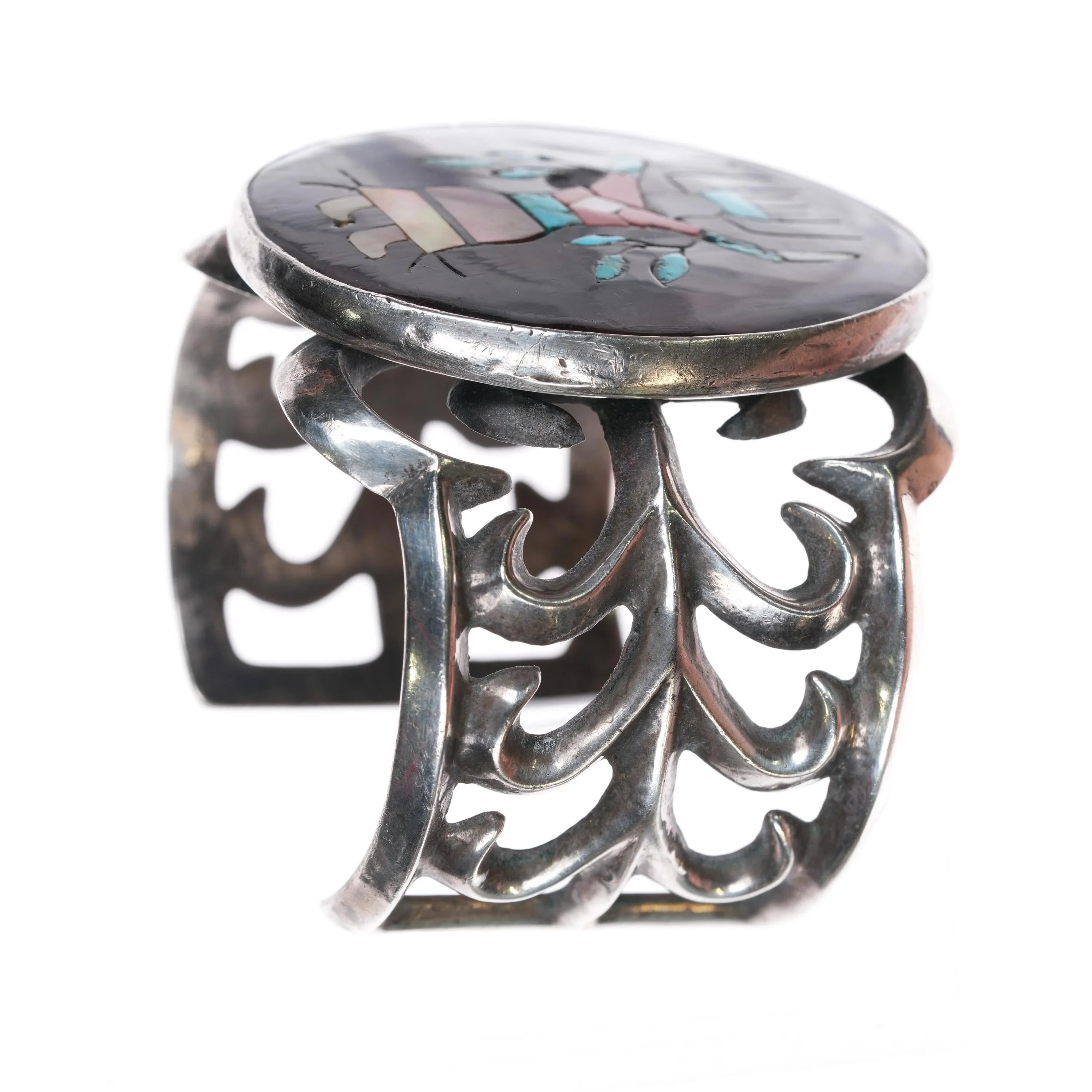 6.1" Vintage Zuni Gaun Dancer Inlaid cuff bracelet cast sterling silver