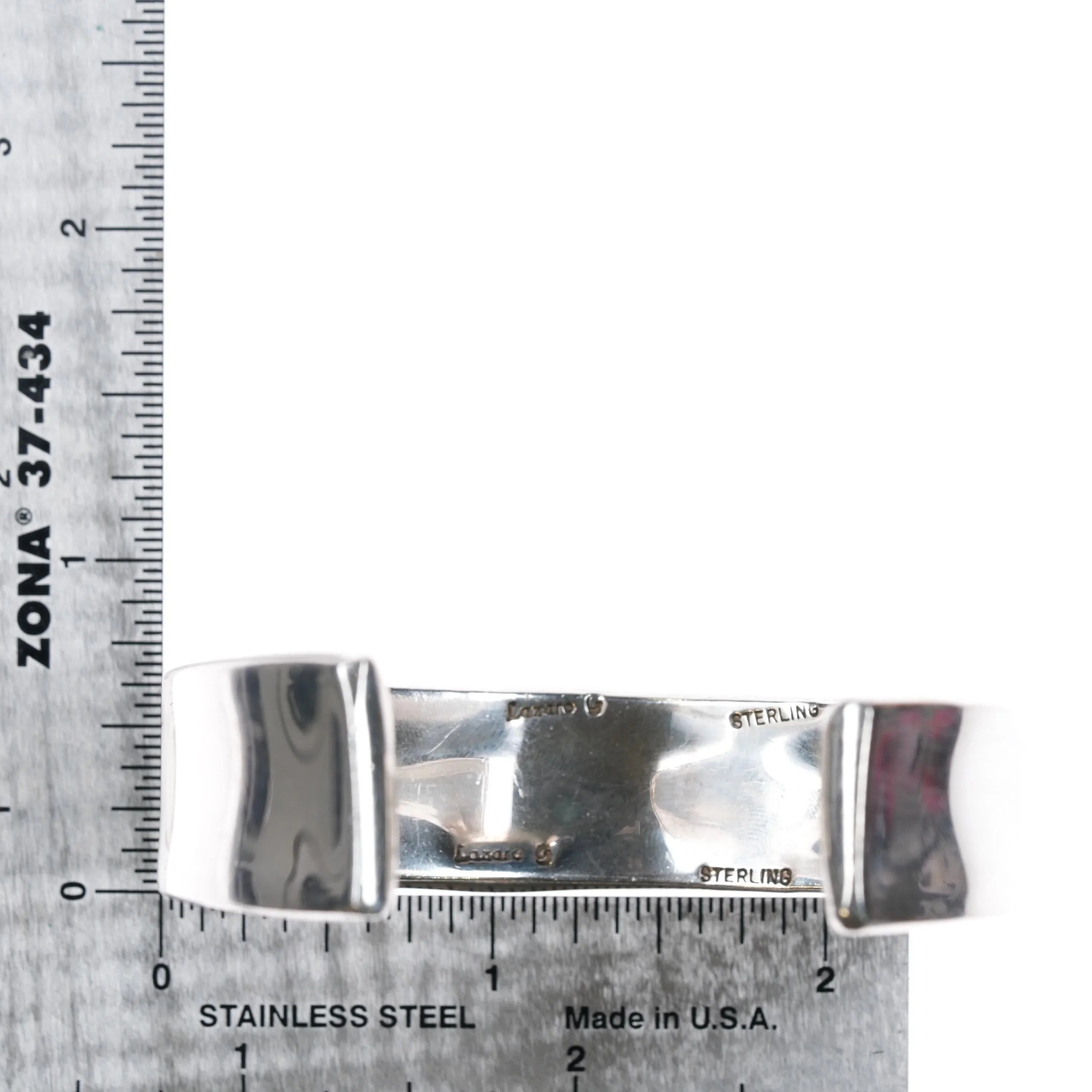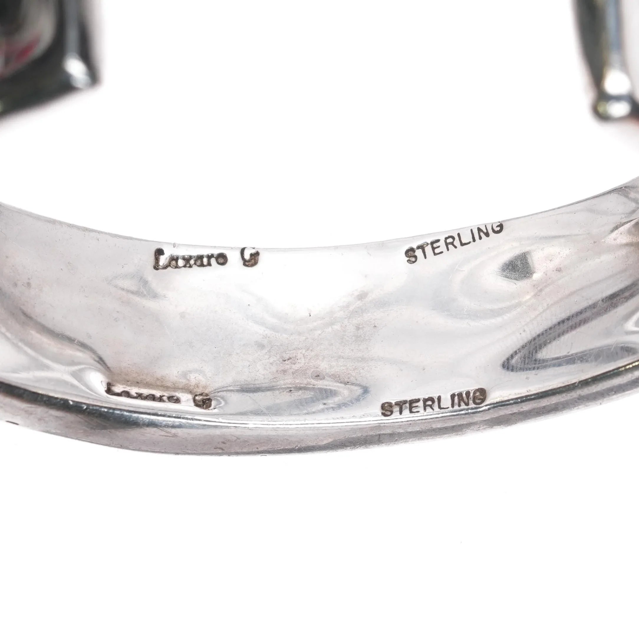 6.2" Lazaro Gutierrez sterling silver #8 turquoise channel inlay cuff bracelet. Solid sterling silver (tested), Modern, contemporary bracelet. No damage, Signed by the artist as shown.