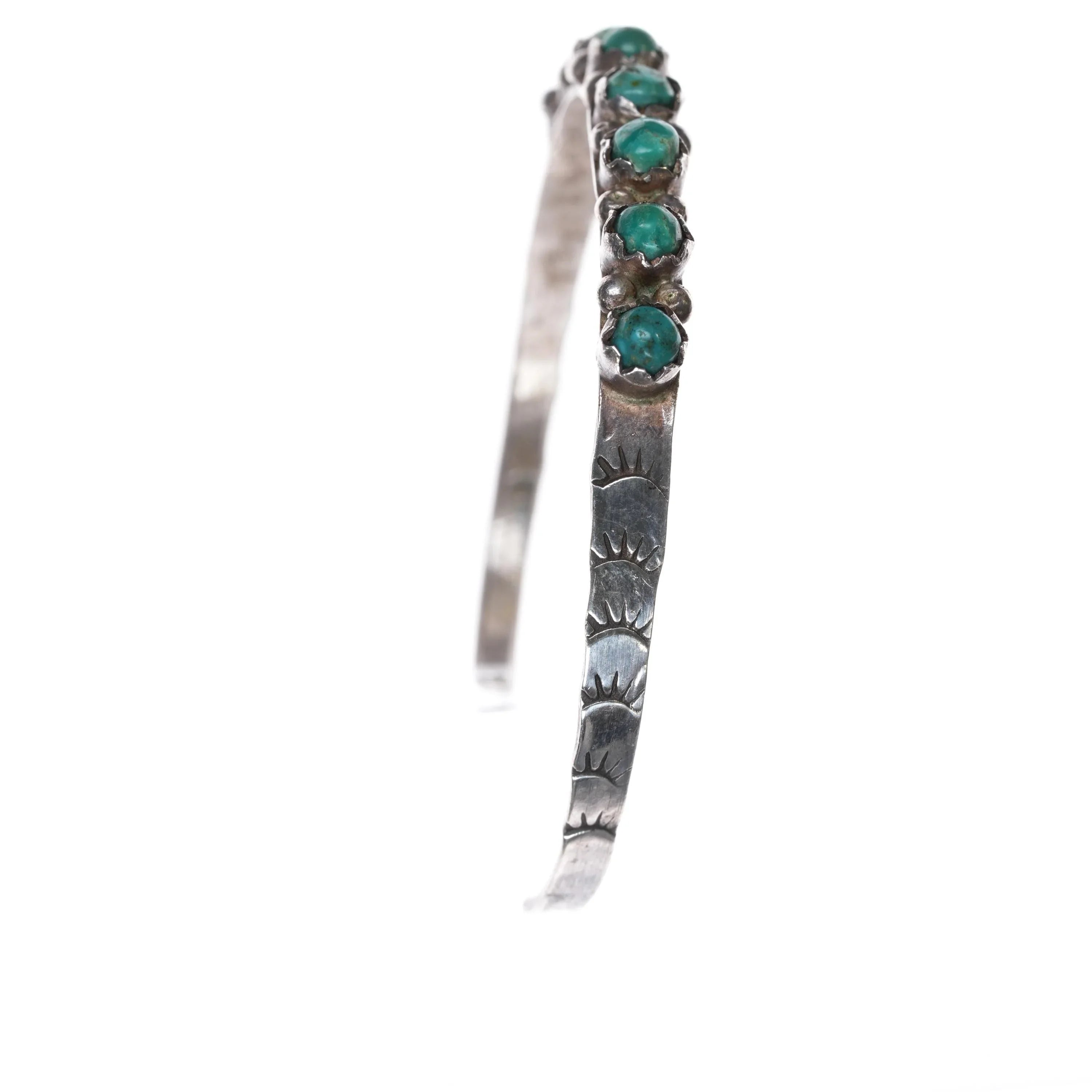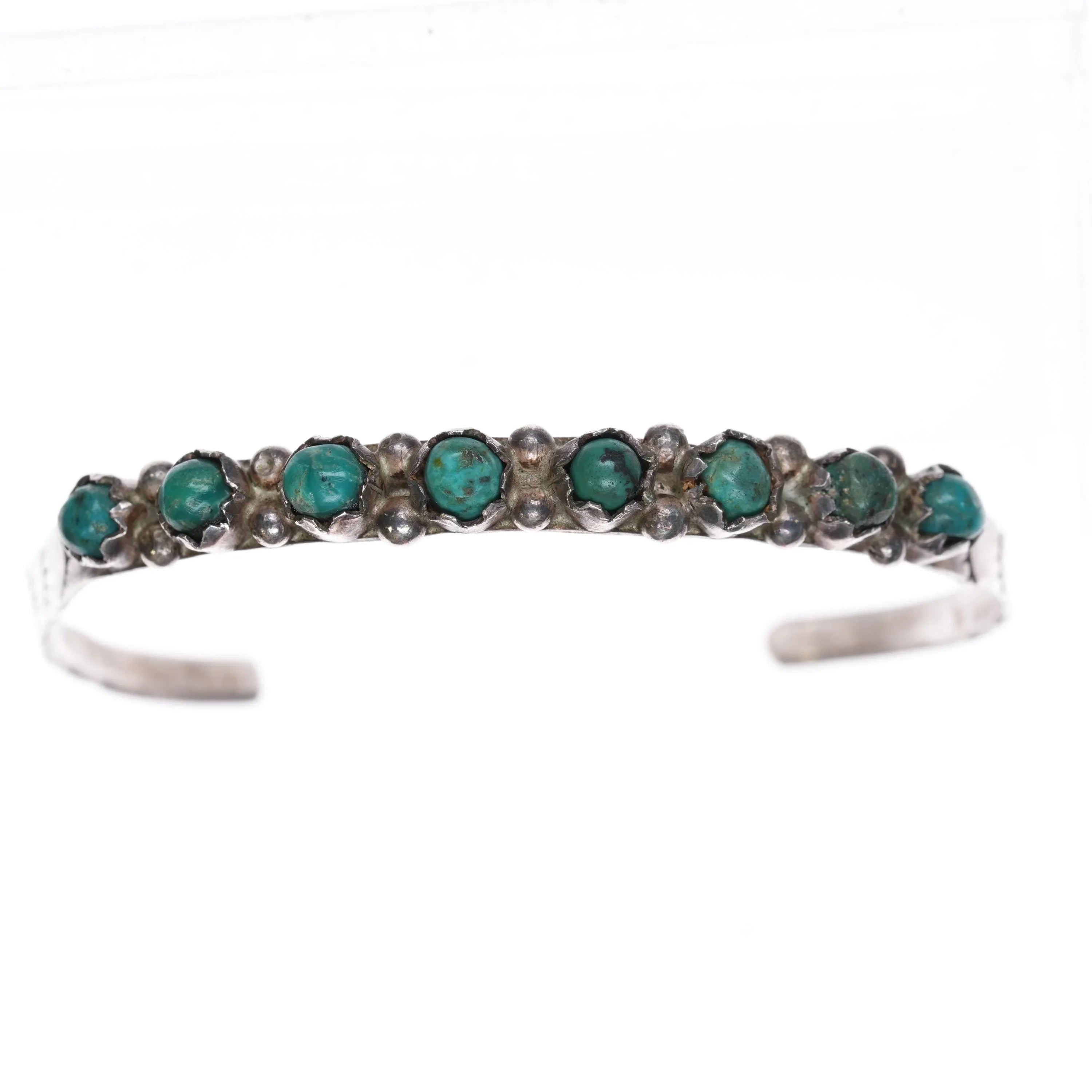 6.25" 1940's Zuni silver turquoise stacker stacking row cuff bracelet snake eye