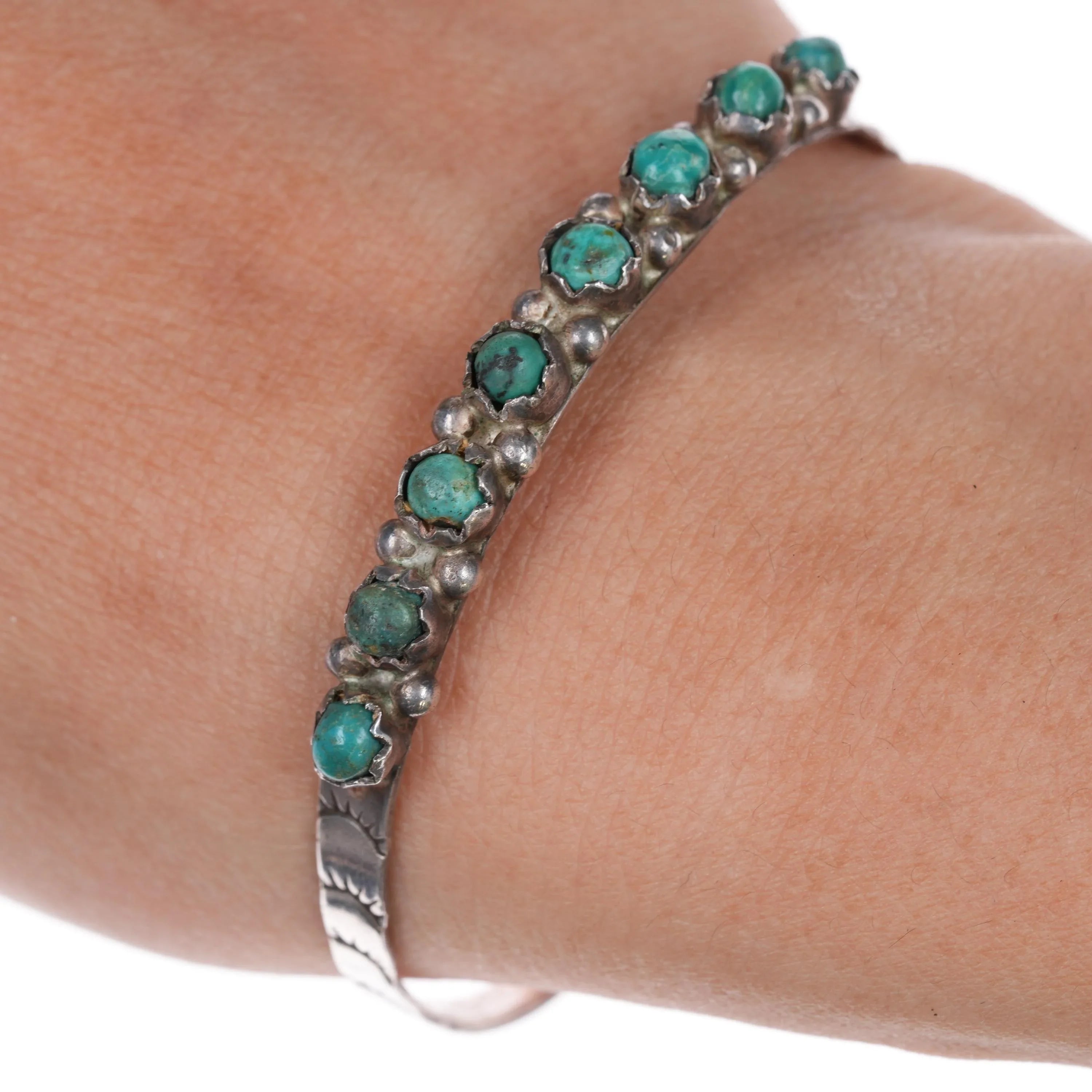 6.25" 1940‘s Zuni silver turquoise stacker stacking row cuff bracelet snake eye. Solid sterling silver. Will fit up to a 6.25" wrist, gap size and other measurements in pictures. No damage.