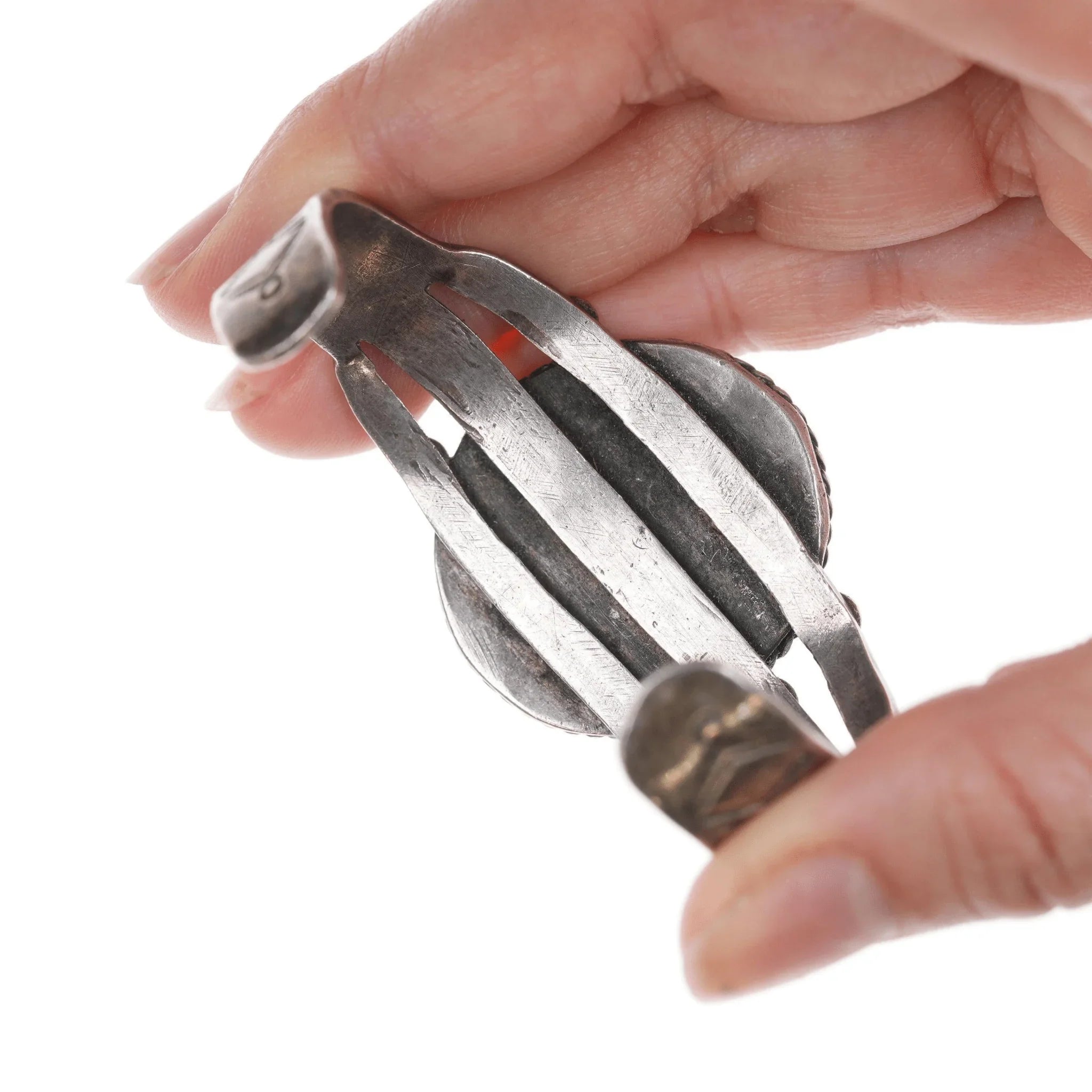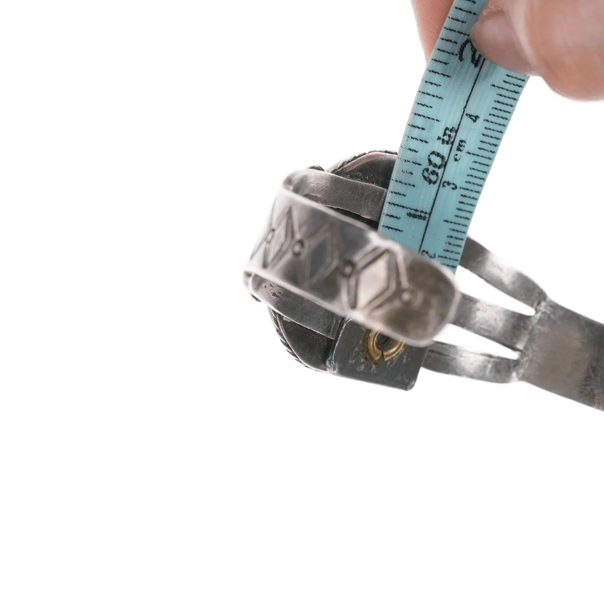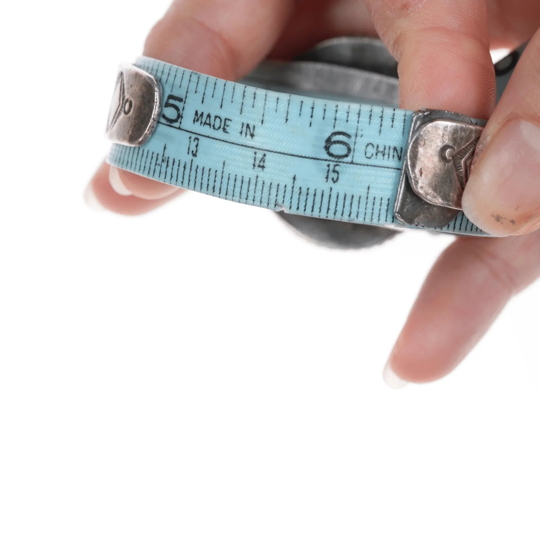 6.25" 30's-40's Navajo silver cuff bracelet with large turquoise stone. Old fracture in stone, secure in bezel.<br><br><br> Marked or unmarked as shown in pics, weight and other measurements in pics. Sorry but my jewelry is stored in a secure location and cannot be accessed for more pictures,<br>videos, or measurements until sold. If you look at pictures/description your<br>question should be answered. Thank you so much for your time and consideration!<br><br>All precious metals are tested and guaranteed. A Native American jewelry piece referred to as "silver" or "ingot" is guaranteed to be at least 90% silver. Bracelets are photographed on a 6" women's wrist.