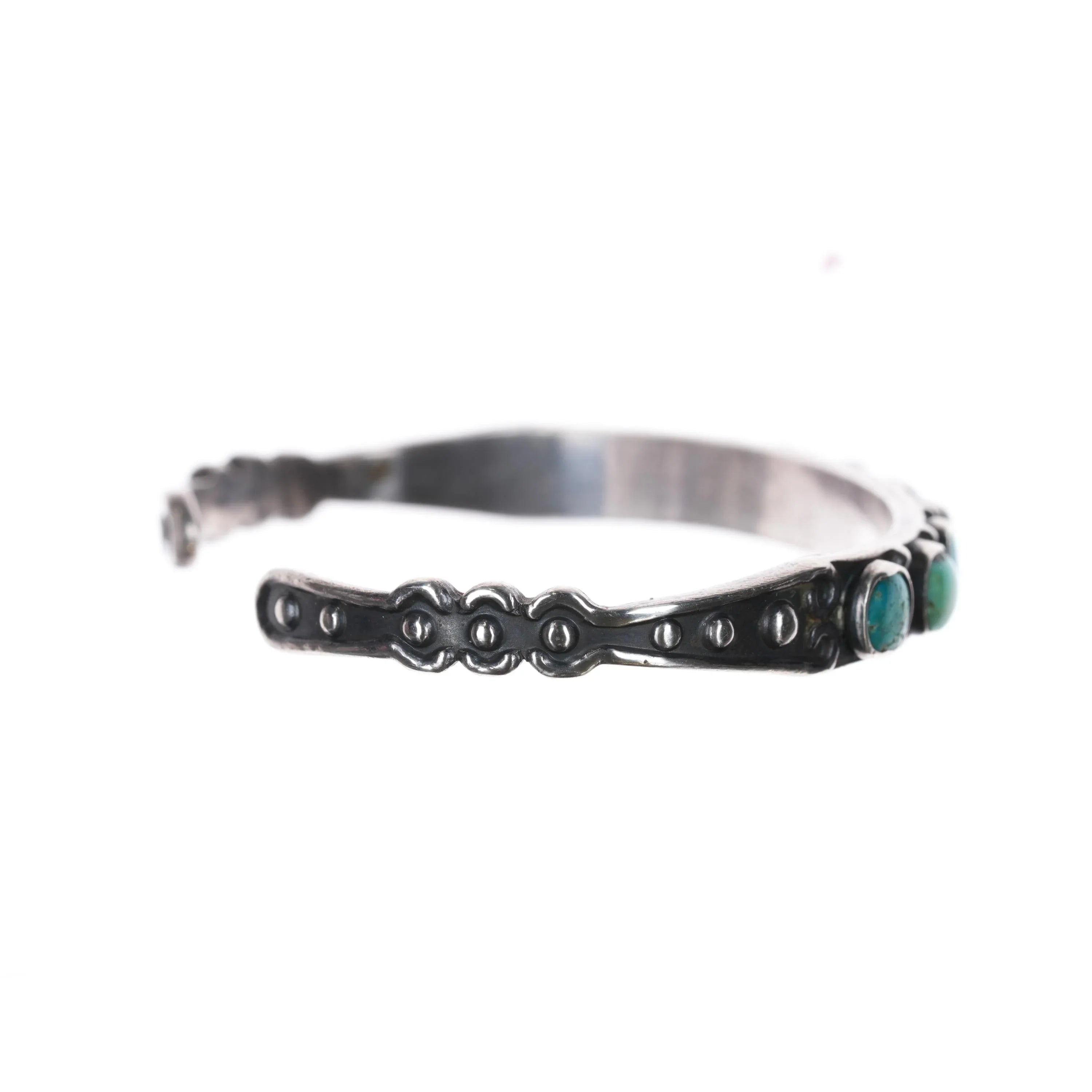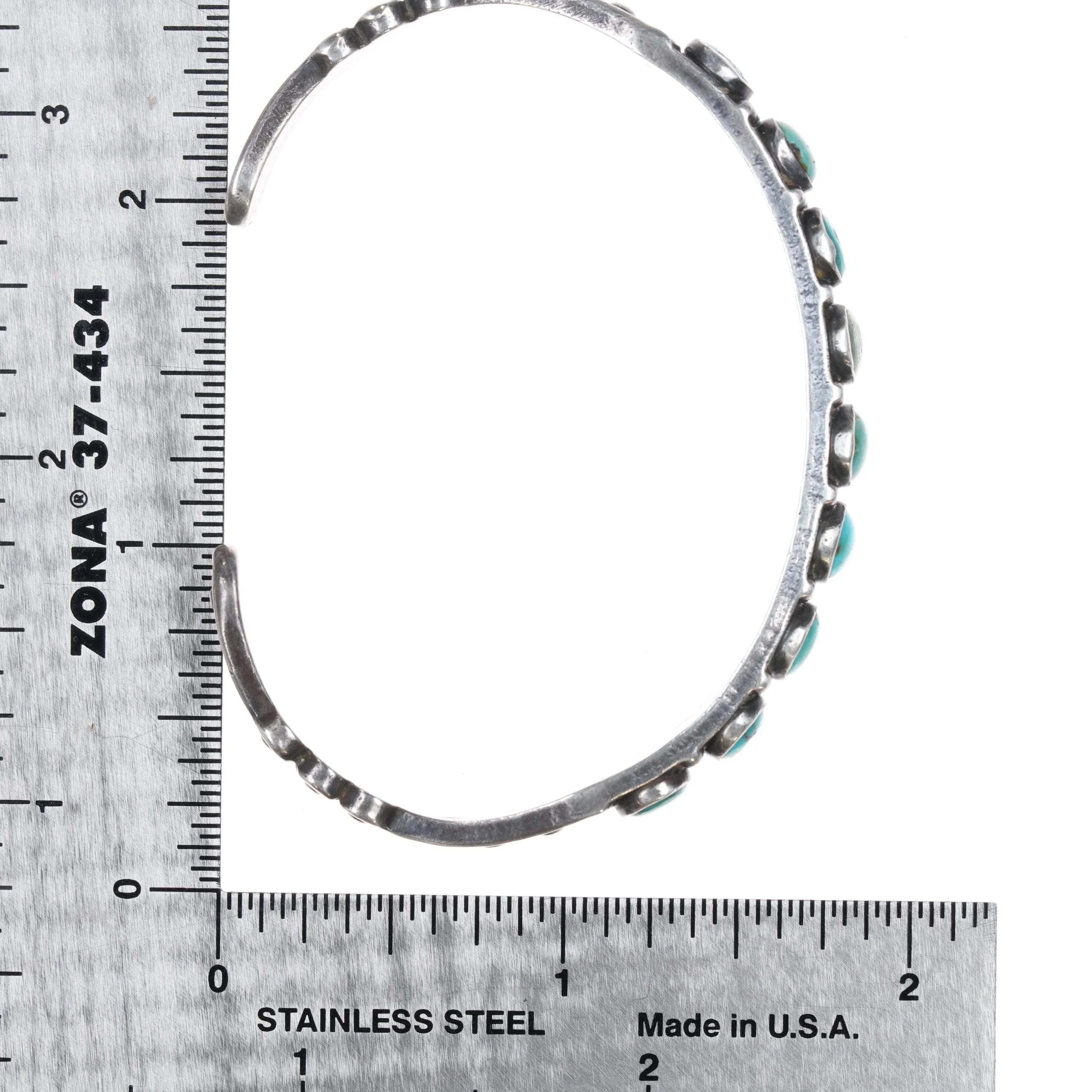 6.25" 30's-40's Navajo silver snake eye turquoise row cuff bracelet 1a