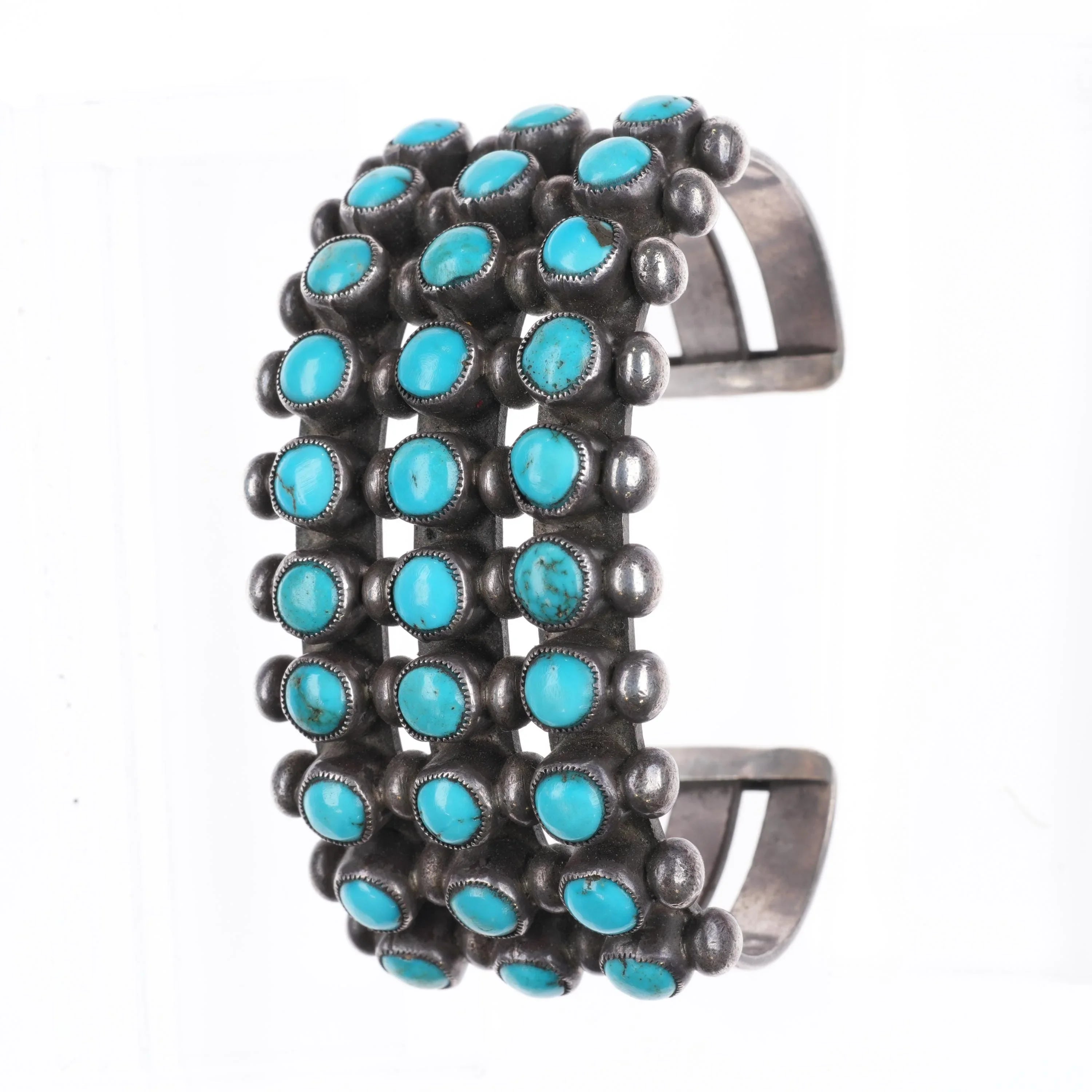 6.25" 30s-40's Zuni Oversized Snake Eye Turquoise cuff bracelet sterling silver