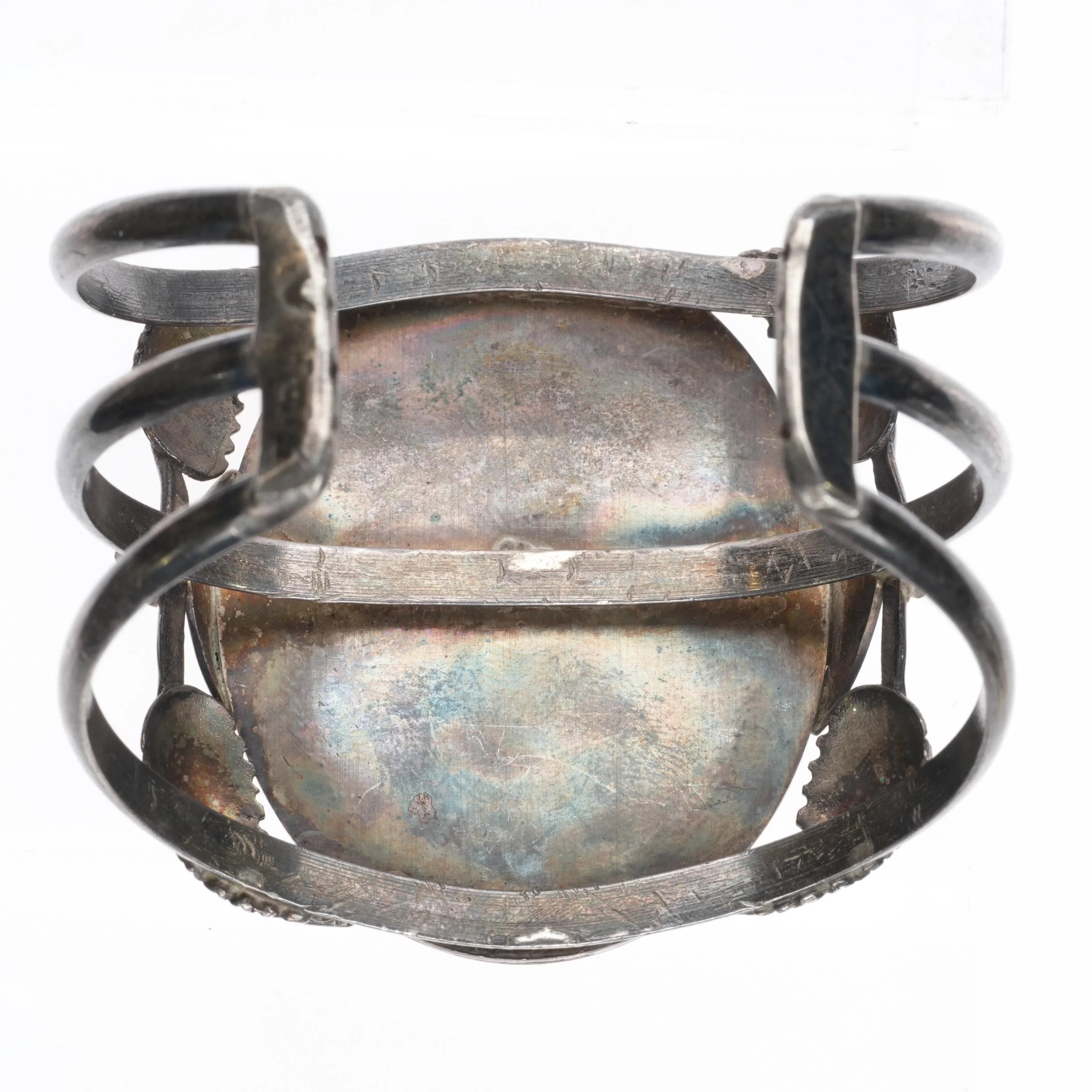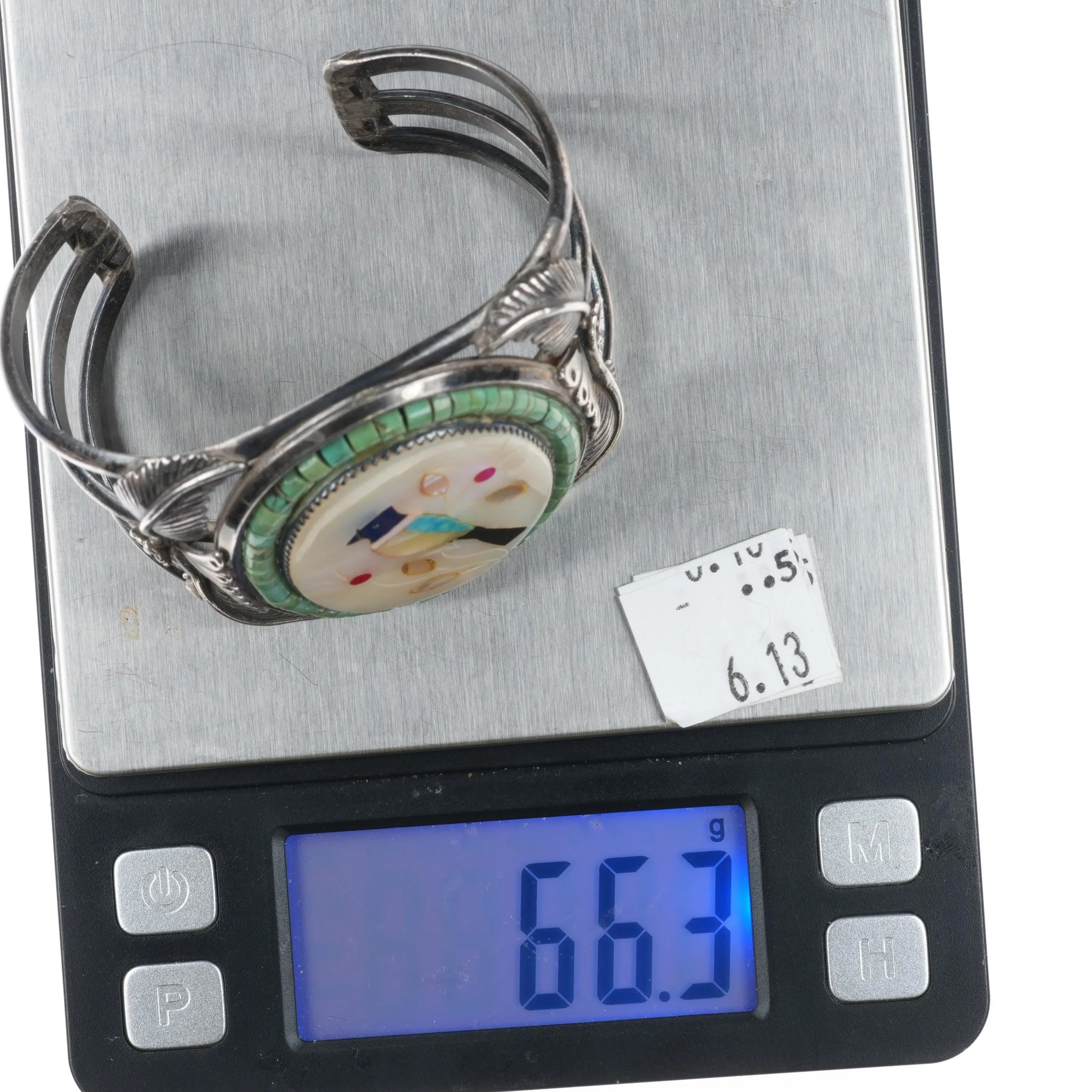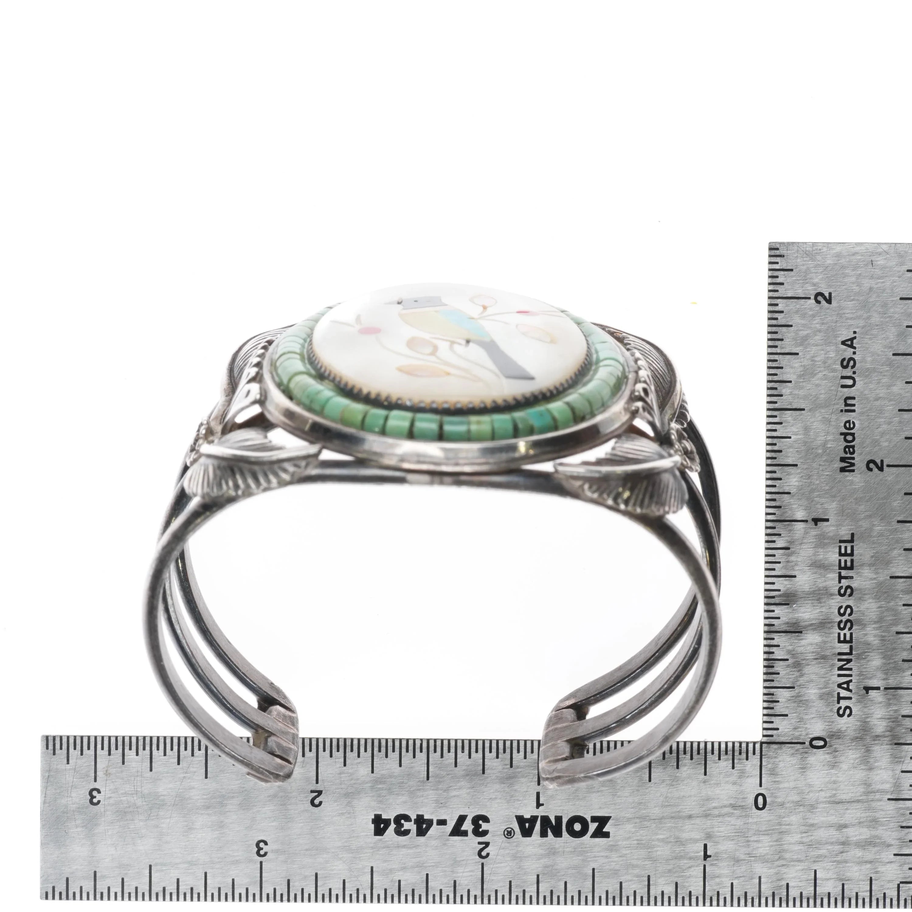 6.25" 60's-70's Zuni sterling silver Bird inlay Turquoise Heishi cuff bracelet