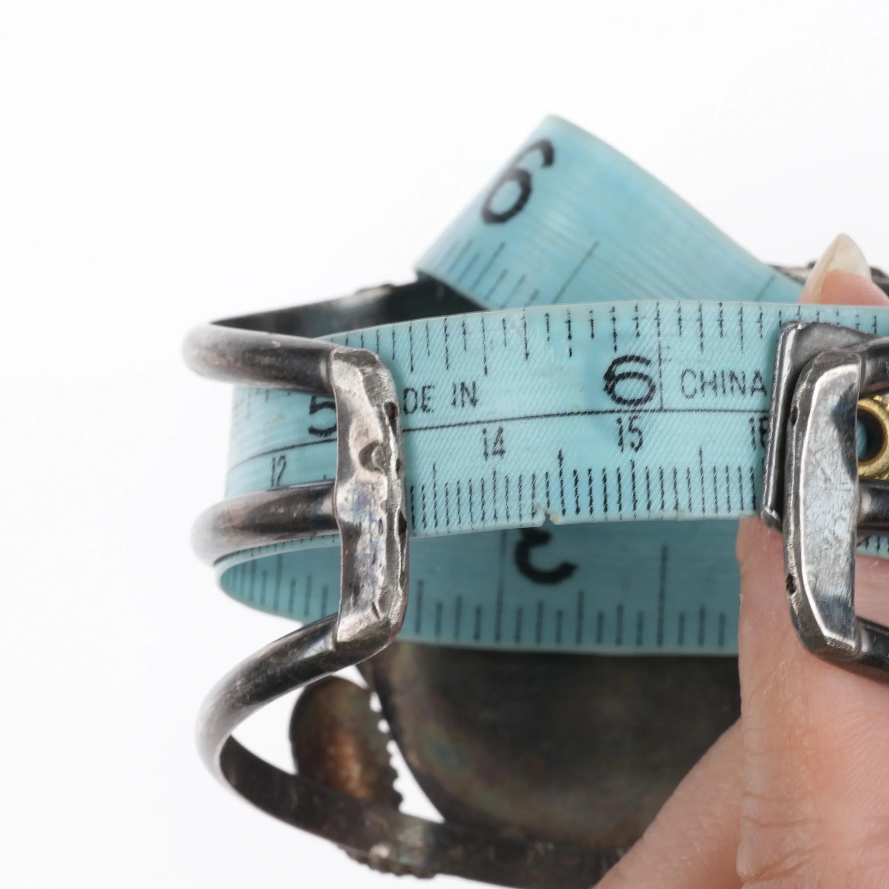 6.25" 60‘s-70‘s Zuni sterling silver Bird inlay Turquoise Heishi cuff bracelet. Tested and guaranteed solid sterling silver no detectable markings which is very common with Native American jewelry of this era.. Weight and measurements in pictures. Some expected wear, no cracks or breaks. Circa third quarter of the 20th century.