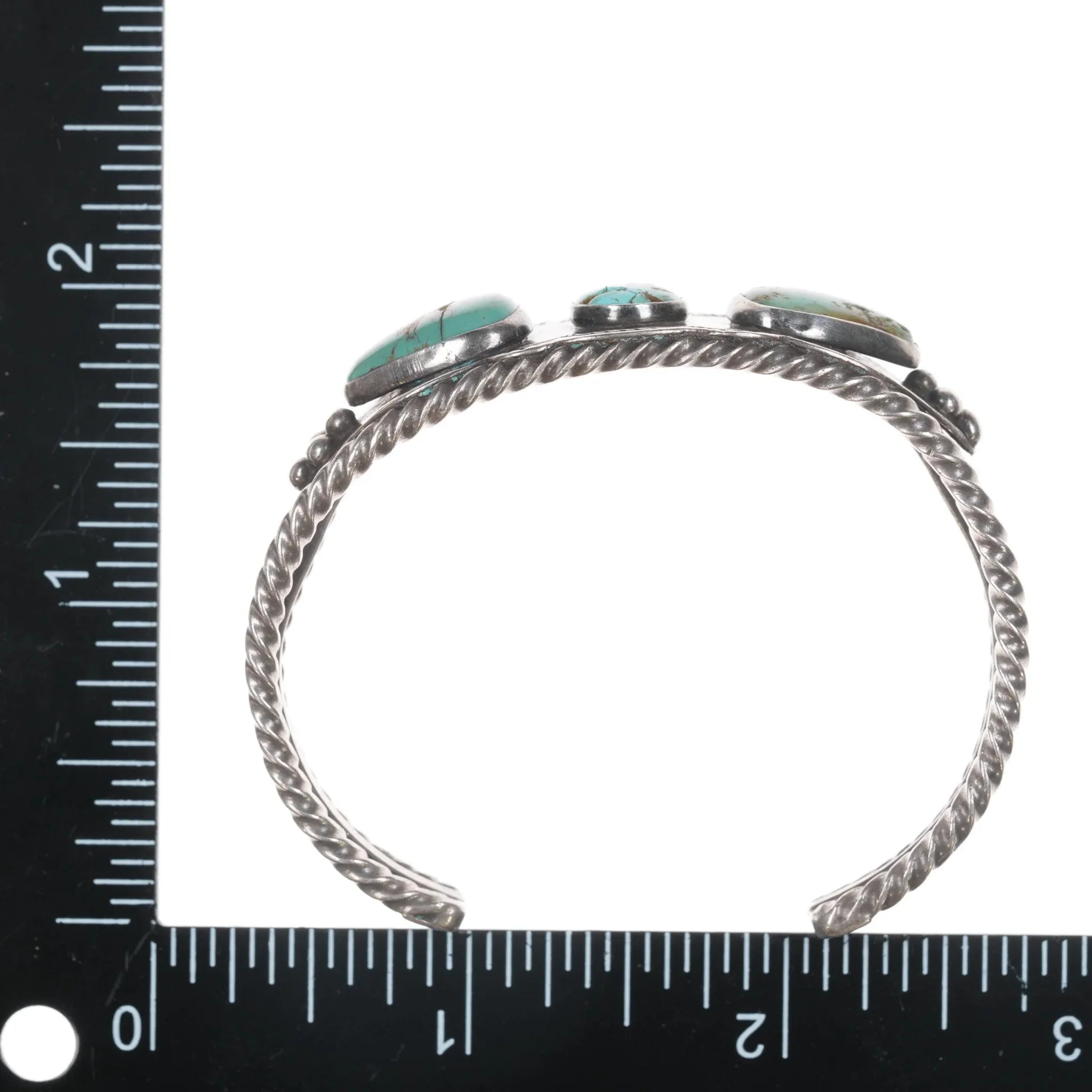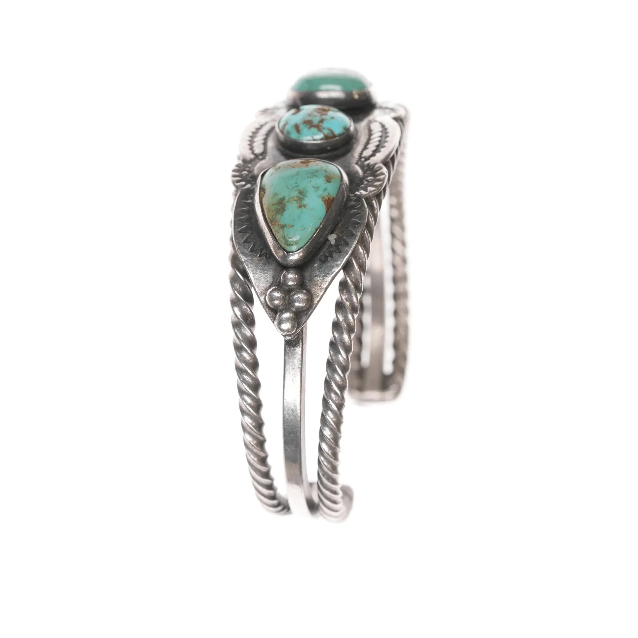 6.25" c1930's Navajo stamped silver twisted wire cuff bracelet with turquoise