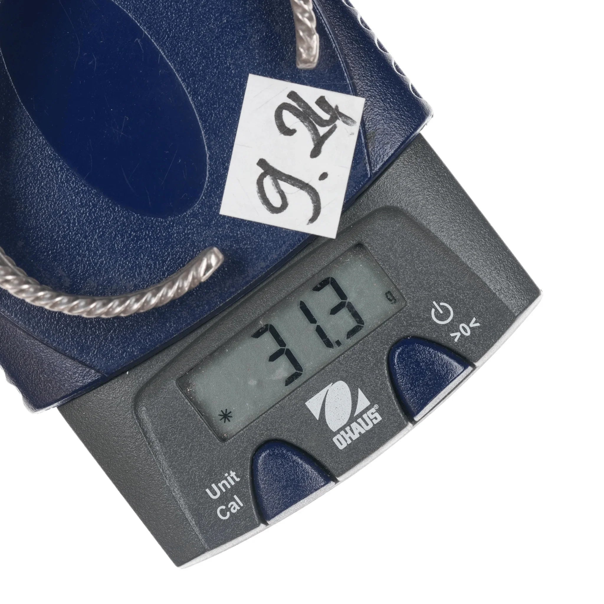6.25" c1930's Navajo stamped silver twisted wire cuff bracelet with turquoise. Stones secure in bezels, two with old fractures, weight and measurements in pics.