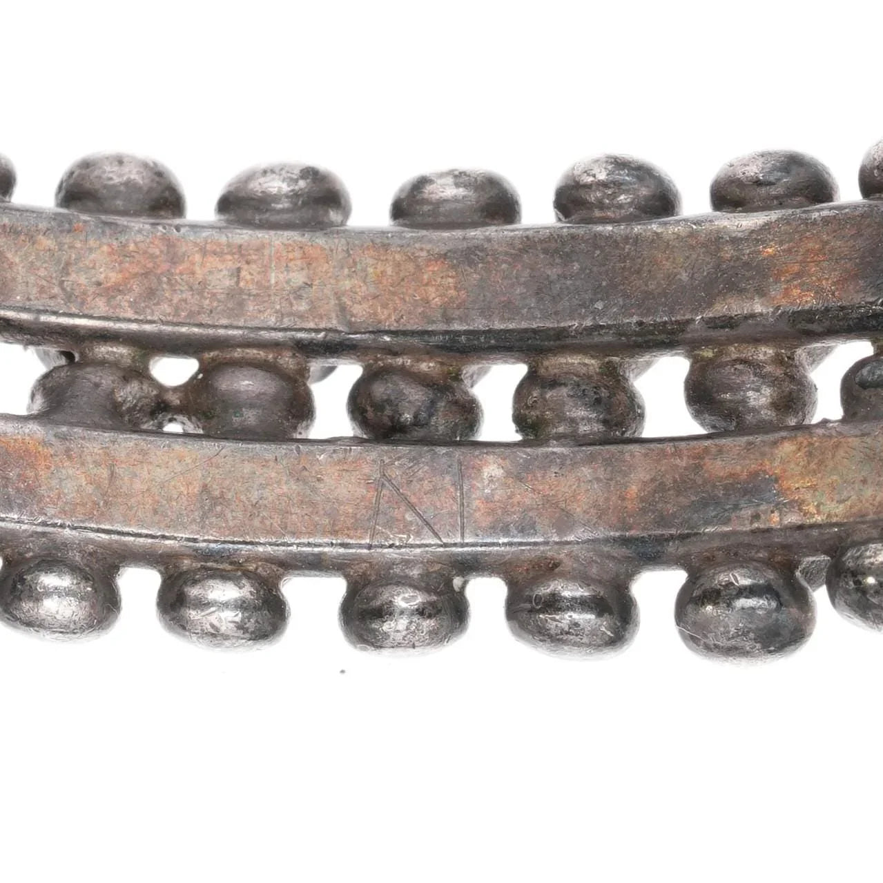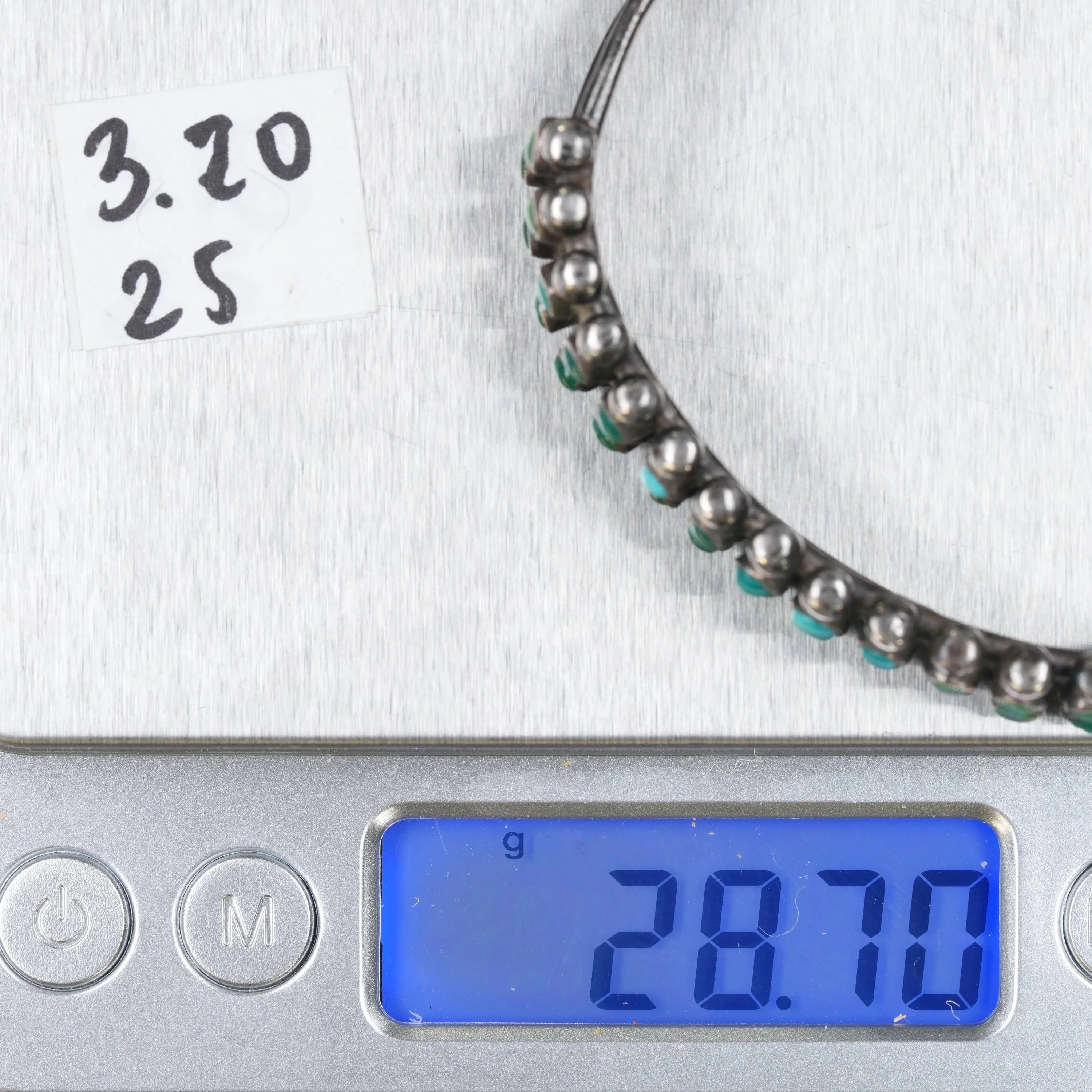6.25" c1930‘s Sturdy Zuni silver turquoise double row snake eye cuff braclet. No issues, solid sterling, weight and measurements in pictures. No apparent markings.