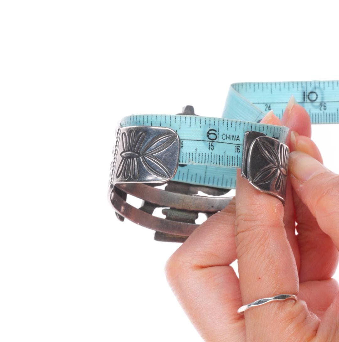 Bracelets are shown in the photos with a tape measure inside the bracelet, other photos will typically show the gap size. The size at the beginning of the title includes the gap. Almost all bracelets that don‘t have inlay work should be adjustable by at least .25", please refer to pictures for the gap size to see if it would work if slightly adjusted as the gap would change.